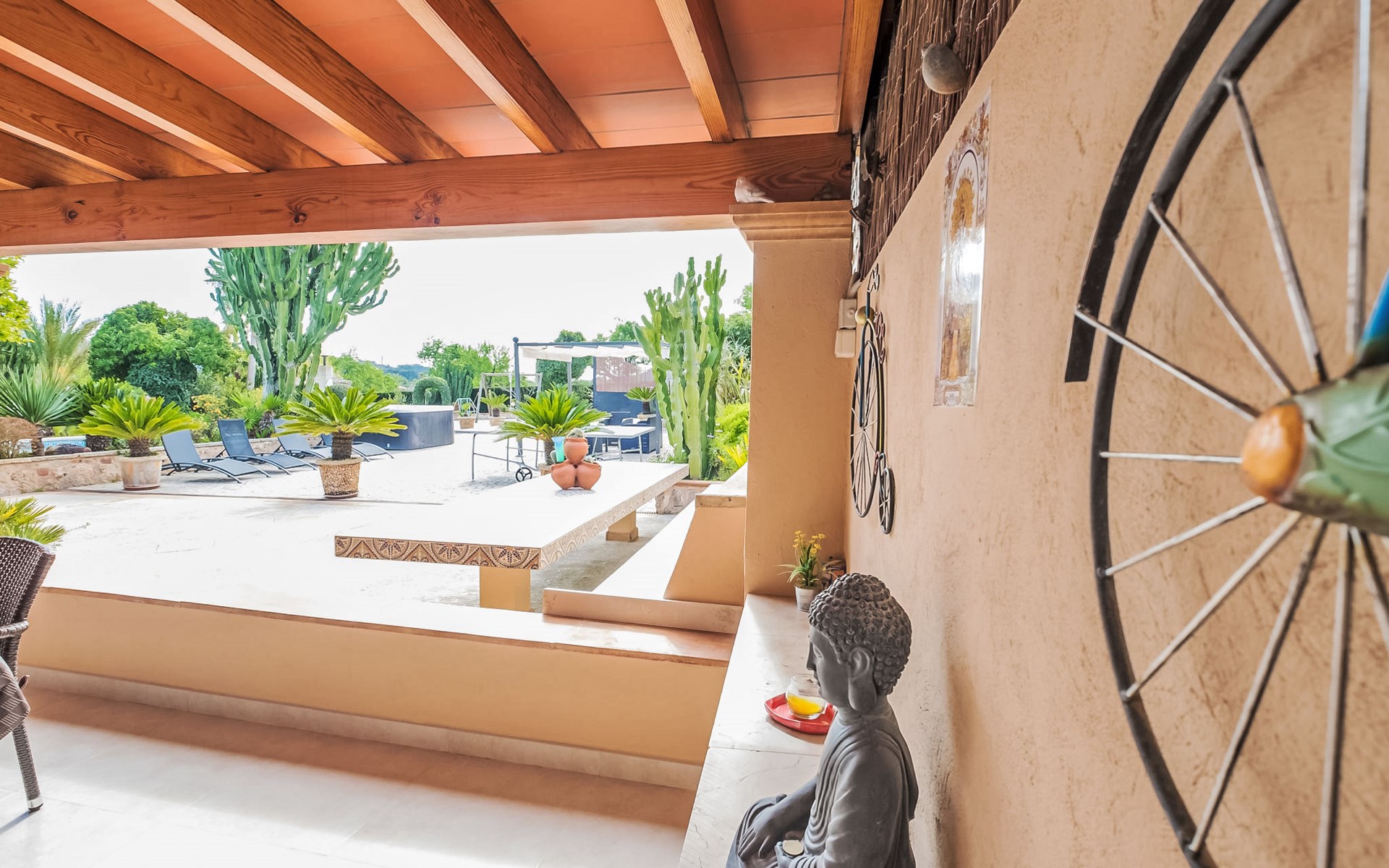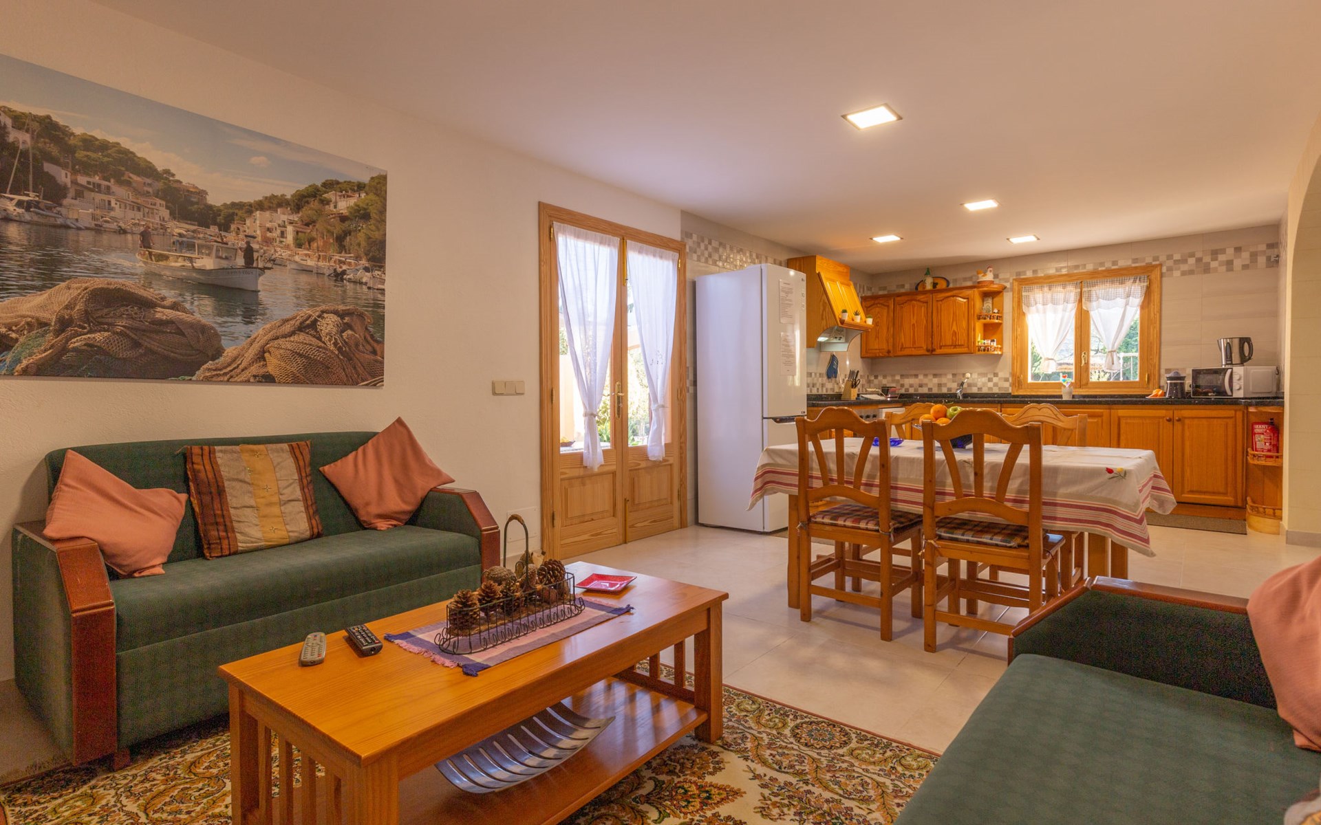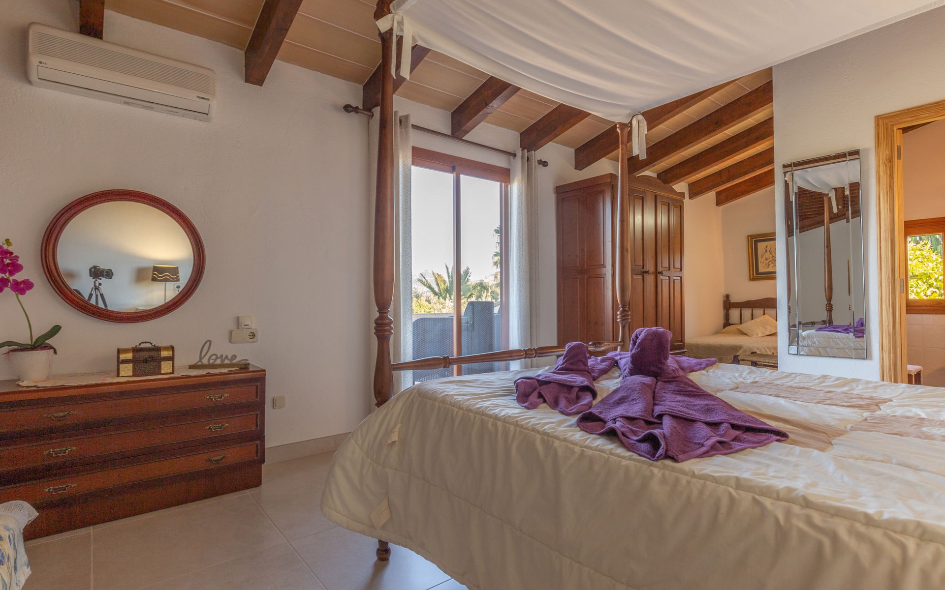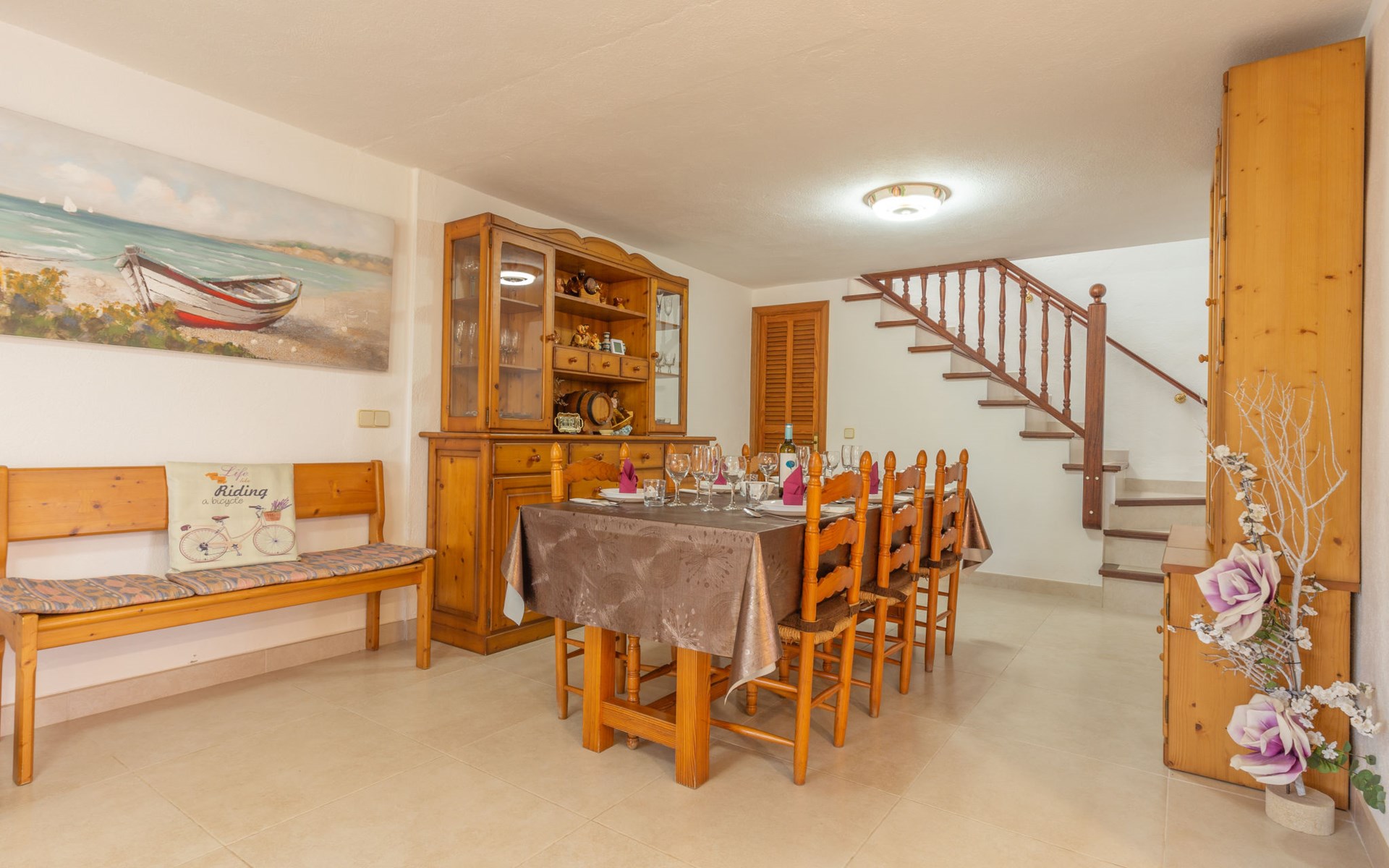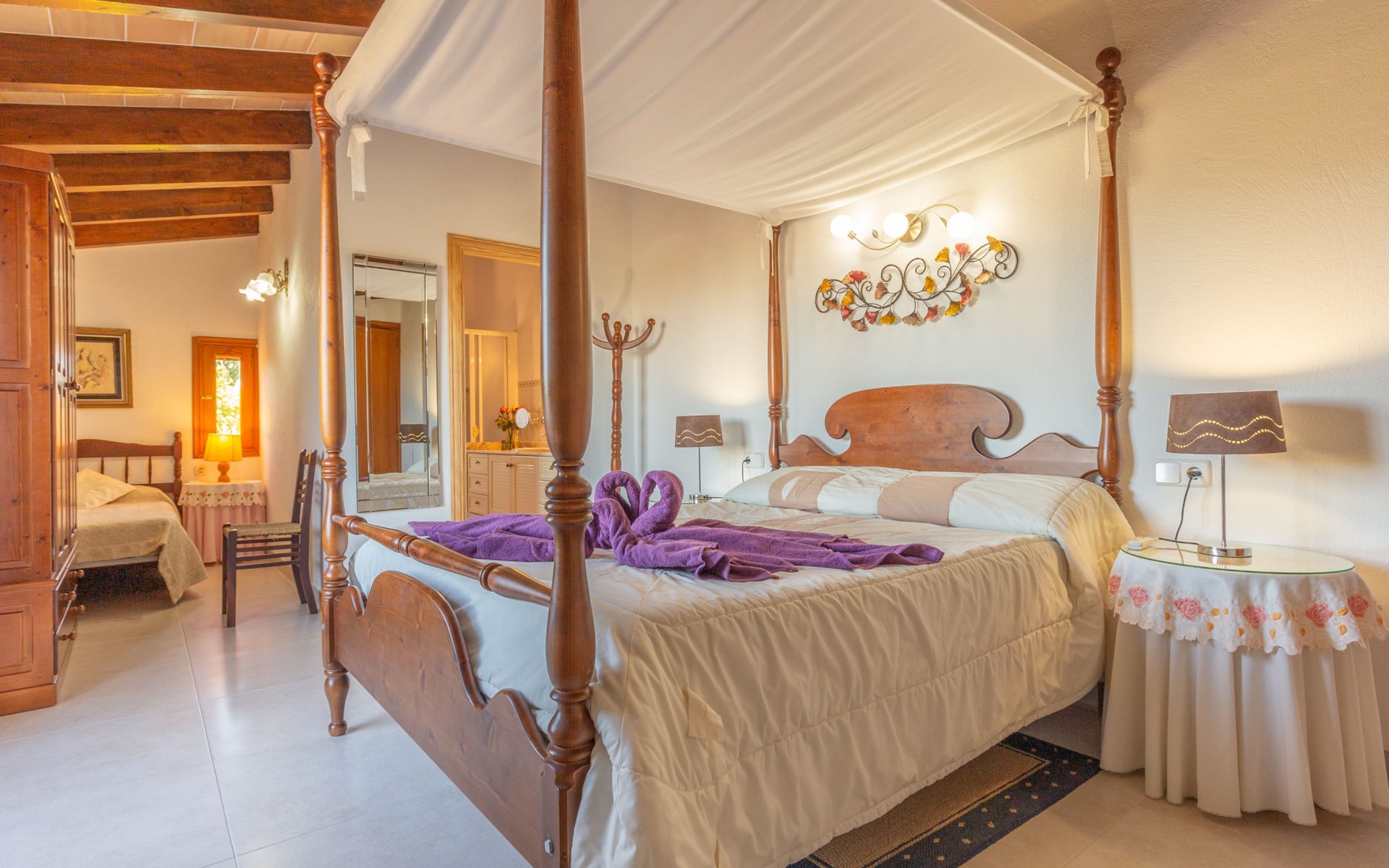 4 km van Alcúdia: Rustieke, comfortabel landgoed "Ca Na Guerrera", van 2 verdiepingen, gerenoveerd in 2018, omgeven door bomen en velden. Buiten de plaats, 4 km van het centrum van Alcudia, rustige, zonnige ligging, 7 km van zee, aan een weg. Voor alleengebruik: terrein 13.000 m2 (omheind) met gazon en planten, boomgaard (omheind), mooie tuin ter ontspanning, openluchtzwembad hoekig (9 x 4 m, seizoensgebonden beschikbaarheid: 20.Mrt. - 07.Nov.). Douche/WC bij het zwembad, buitendouche, hot tub, patio (500 m2), prieel (15 m2), tuinmeubelen, barbecue (schommel). In het huis: internetaansluiting, Internet (WiFi), air-conditioning, wasmachine. Smalle toegangsweg. Parkeerplaats bij het huis op het terrein. Winkel 6 km, levensmiddelenwinkel 6 km, restaurant 6 km, bushalte "Alcudia" 6 km, treinstation 10 km, zandstrand "Bahia de Alcudia" 7 km kiezelstrand 8 km, rotsstrand 8 km. Jachthaven 6 km, jachthaven 6 km, golfterrein (18 holes) 6 km, tennis 8 km, manege 5 km. Auto noodzakelijk. Geschikt voor families, geschikt voor senioren. Het objekt is geschikt voor 7 volwassenen groepen jongeren uitsluitend op aanvraag. Laden en lossen van de baggage is mogelijk bij het huis. Achter het huis, in een afgescheiden gedeelte met toegang rechtstreeks vanaf de tuin staan 5 pony's.