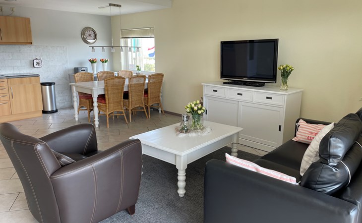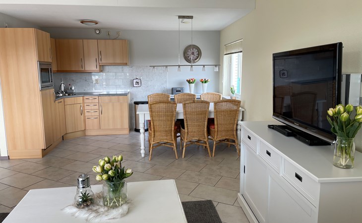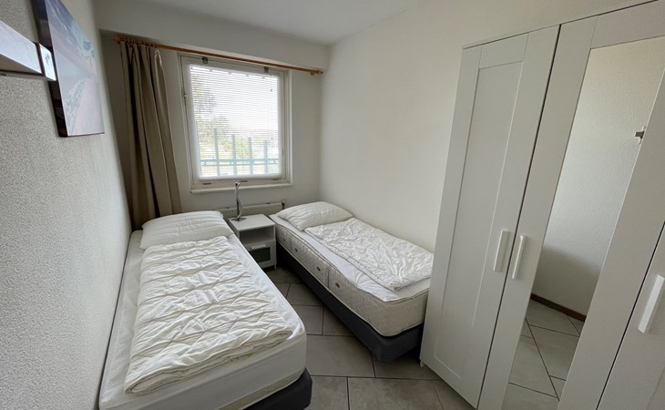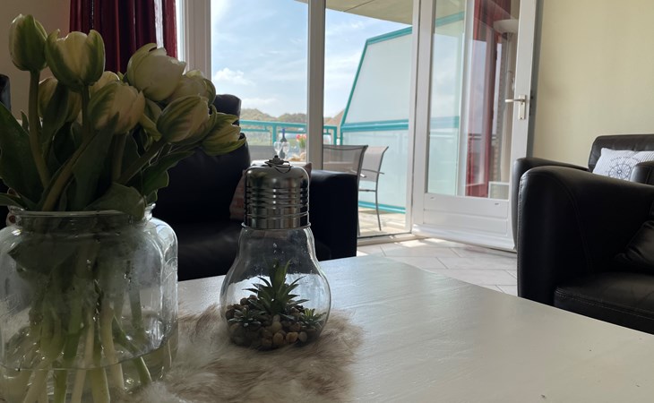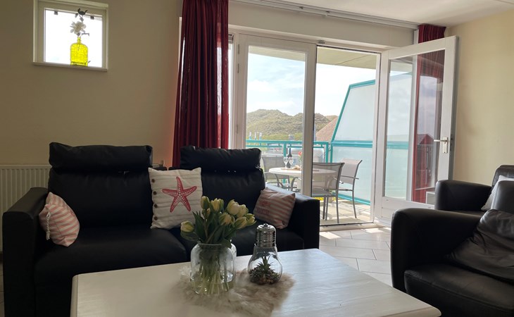 Dit gezellige appartement op de 1e verdieping is geschikt voor maximaal 4 personen. Er is een lift aanwezig in het appartementencomplex en u kunt hier gratis parkeren. Er zijn 2 slaapkamers waarvan 1 slaapkamer een tweepersoonsbed met 2 losse matrassen heeft en in de andere slaapkamer staan 2 éénpersoonsbedden. In de woonkamer staat een slaapbank. De keuken is volledig ingericht met inbouwoven, koelkast, inductie kookplaat en vaatwasser. De badkamer heeft een douche, toilet en wastafel. In dit appartement is Digitale TV en internet aanwezig. Vanaf het balkon heeft u een schitterend uitzicht op de duinen en daar kunt u in de avond nog heerlijk genieten en kijken naar de ondergaande zon. In het appartementencomplex zit een grote bowlingbaan wat ook natuurlijk altijd leuk is, vooral wanneer het weer wat minder is. Aan de achterkant van het appartementencomplex kijkt u uit over de grote midgetgolfbaan en het gezellige restaurant en terras van Bungalowpark Strandslag. Bij het restaurant kunt u ook iedere dag verse broodjes halen.
