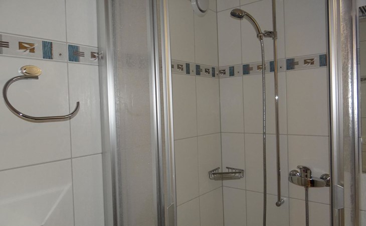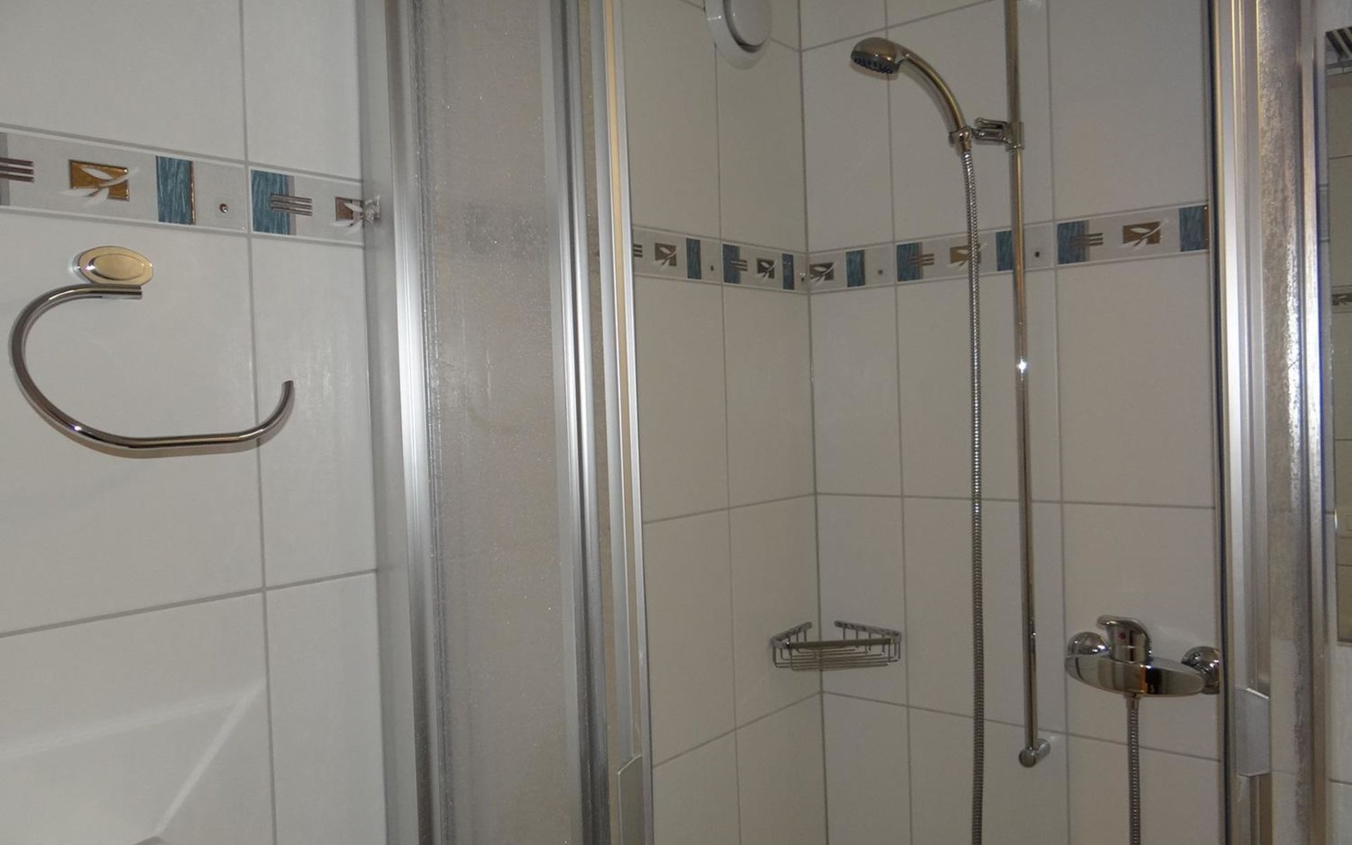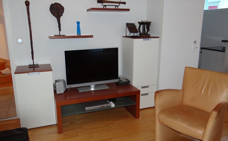 5-room-apartment on 3rd floor: living-dining room, open kitchen, 2 double rooms, 2 shower-toilets, upper floor with double room and bath-toilet, roof floor with single room.