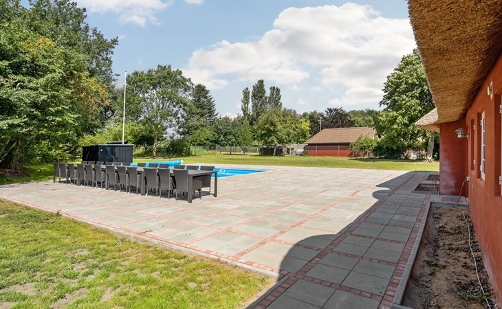Eengezinswoning, bouwjaar 1817. 27 km van zee. Voor alleengebruik: wild terrein 2.800 m2, openluchtzwembad (5 x 8 m, 40 m2, 130 - 130 cm diepte, seizoensgebonden beschikbaarheid: 01.Mei. - 31.Aug.). Terras (150 m2). In het huis: wasmachine, droger. Parkeerplaats bij het huis. Levensmiddelenwinkel 7 km. De eigenaar accepteert geen jeugdgroepen.