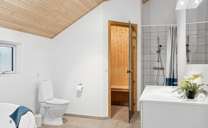 Eengezinswoning, bouwjaar 2009. 225 m van zee. Voor alleengebruik: wild terrein 1.520 m2. Barbecue, kinderspeelplaats (schommel). In het huis: sauna, wasmachine, droger. Parkeerplaats bij het huis. Levensmiddelenwinkel 4.4 km. Golfterrein 18.5 km. De eigenaar accepteert geen jeugdgroepen.