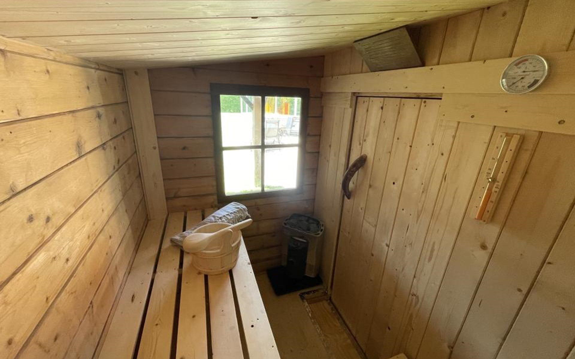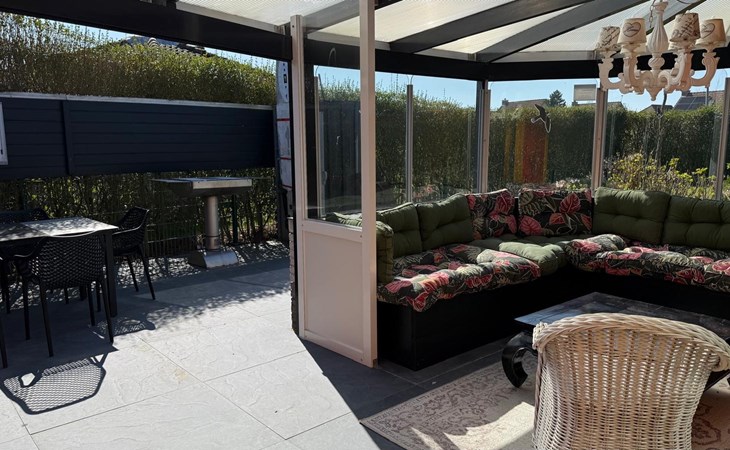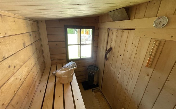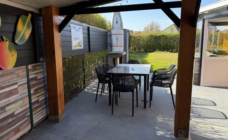 De ruime zonnige tuin beschikt over een terras met tuinmeubilair en is volledig omheind. En er is sinds kort een heerlijke sauna in het tuinhuis waar u tegen betaling gebruik van mag maken. (€ 25, per dag - € 150,- per week)
