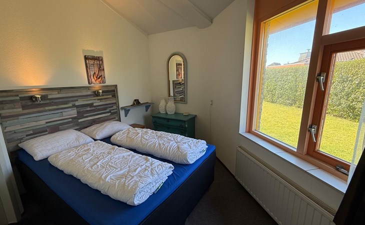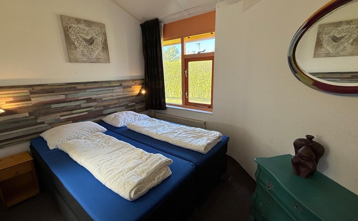 De mooie bungalow heeft een zonnige tuin met een terras en gratis eigen parkeerplaats. Deze bungalow is gelegen op een mooie plek aan de rand van het park. Hij is gelijkvloers en heeft een open keuken en woonkamer met schuifpui naar de tuin. In de woonkamer hangt een TV met schotelontvangst. Ook in de woonkamer een openhaard dat u gezellig kan opsteken in de koudere maanden. De keuken is voorzien van een vaatwasser, grill/magnetron, broodrooster, Senseo en koffiezetter, waterkoker, koelkast en gaskookplaat. De badkamer heeft een douche, wastafel en er is een apart toilet. Twee slaapkamers hebben een tweepersoons bed en er is een kamer met een stapelbed.