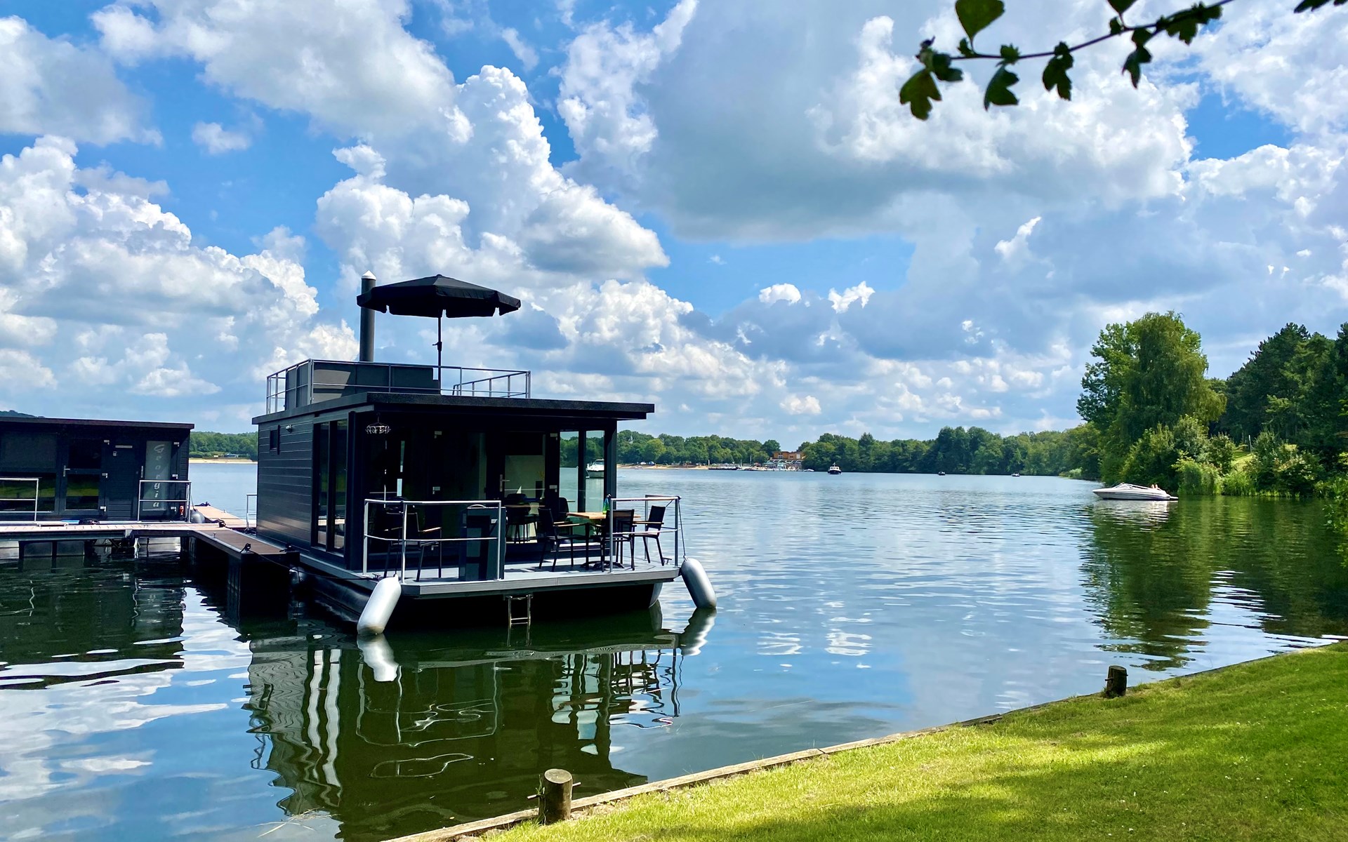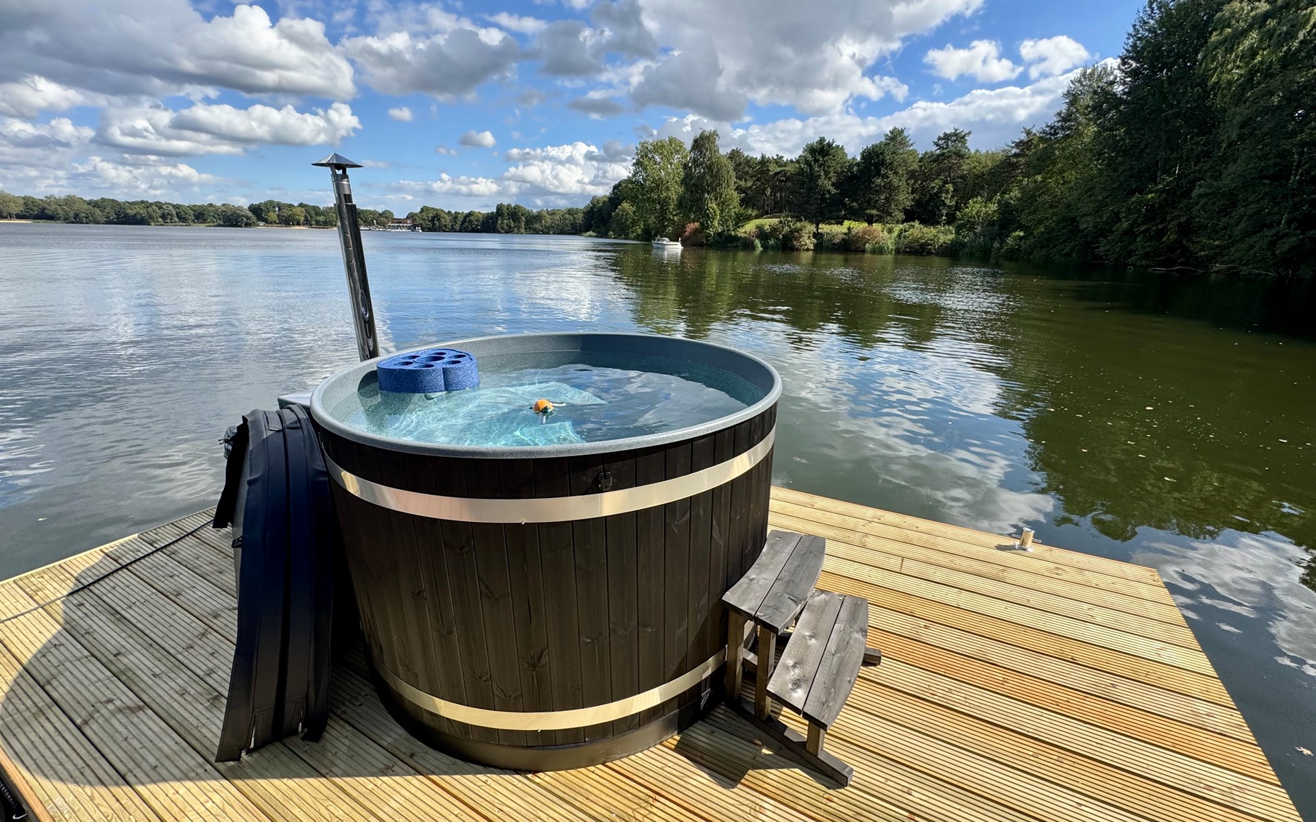 Geniet van een onvergetelijk verblijf op de Mookerplas, compleet met je eigen privé hottub op een drijvend vlot naast de houseboat. Beleef de charme van een comfortabele houseboat, prachtig gelegen aan de schilderachtige Mookerplas en omringd door een bosrijke omgeving. De hottub is dé eyecatcher: warm, sfeervol, gevuld met natuurwater en exclusief voor jullie gebruik. Na een verfrissende duik in het heldere water kun je direct ontspannen in de warme hottub – met uitzicht over het meer en de natuur om je heen.