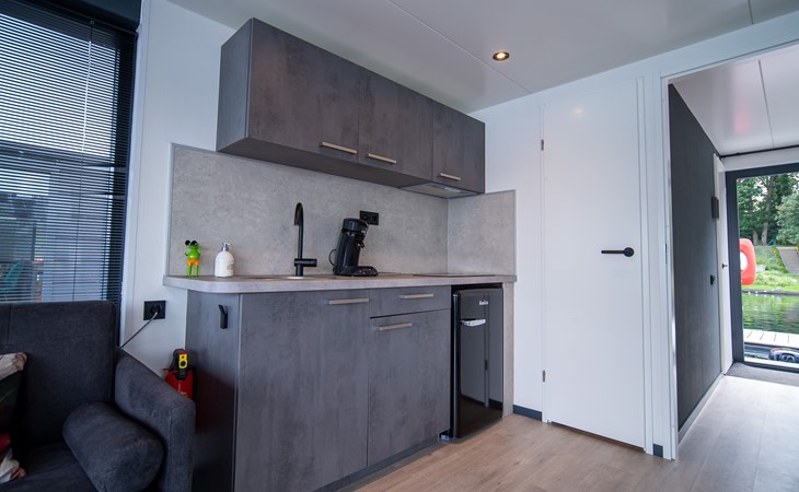 De houseboat heeft een knusse en praktische indeling, ideaal voor een zorgeloos verblijf op het water.