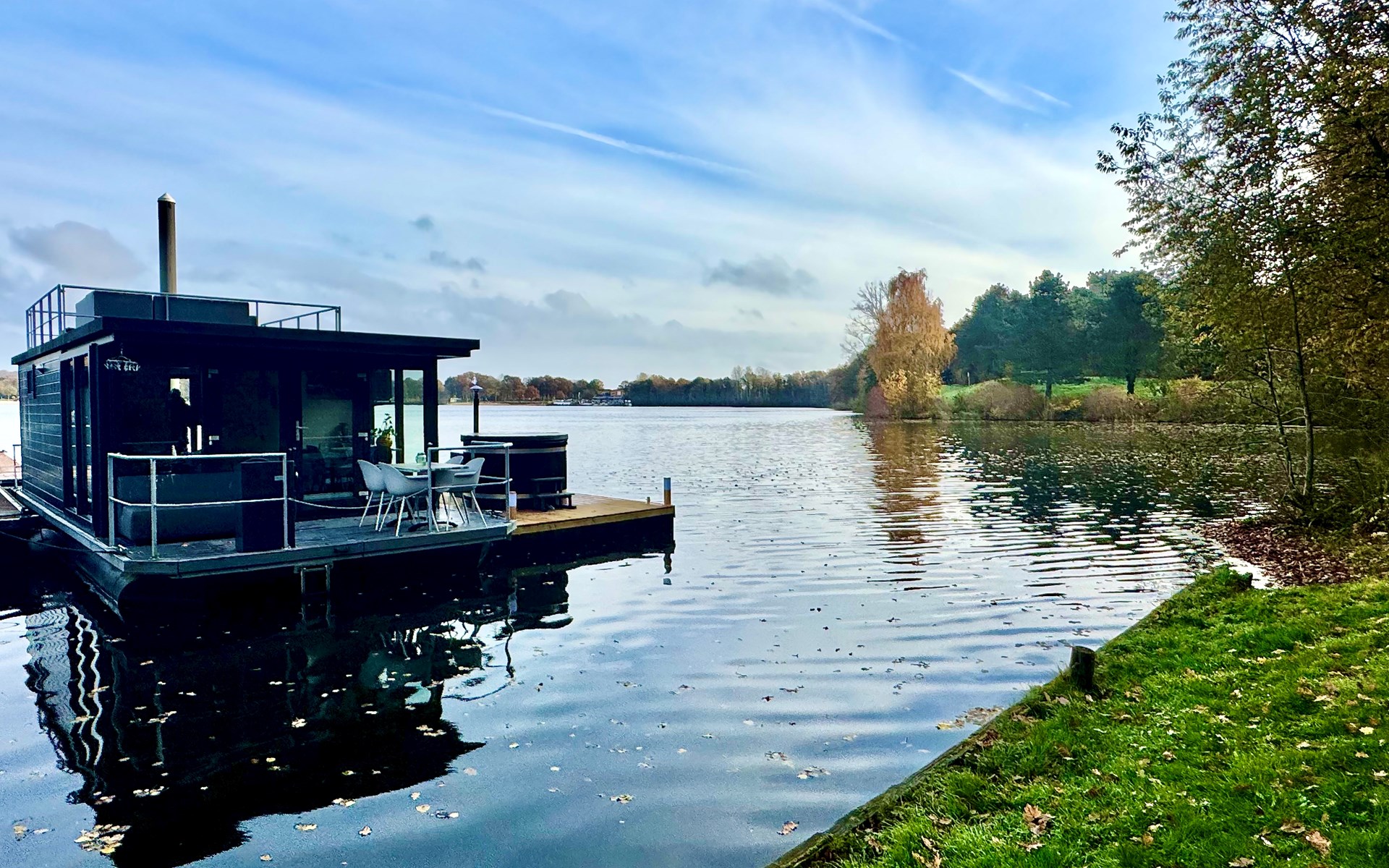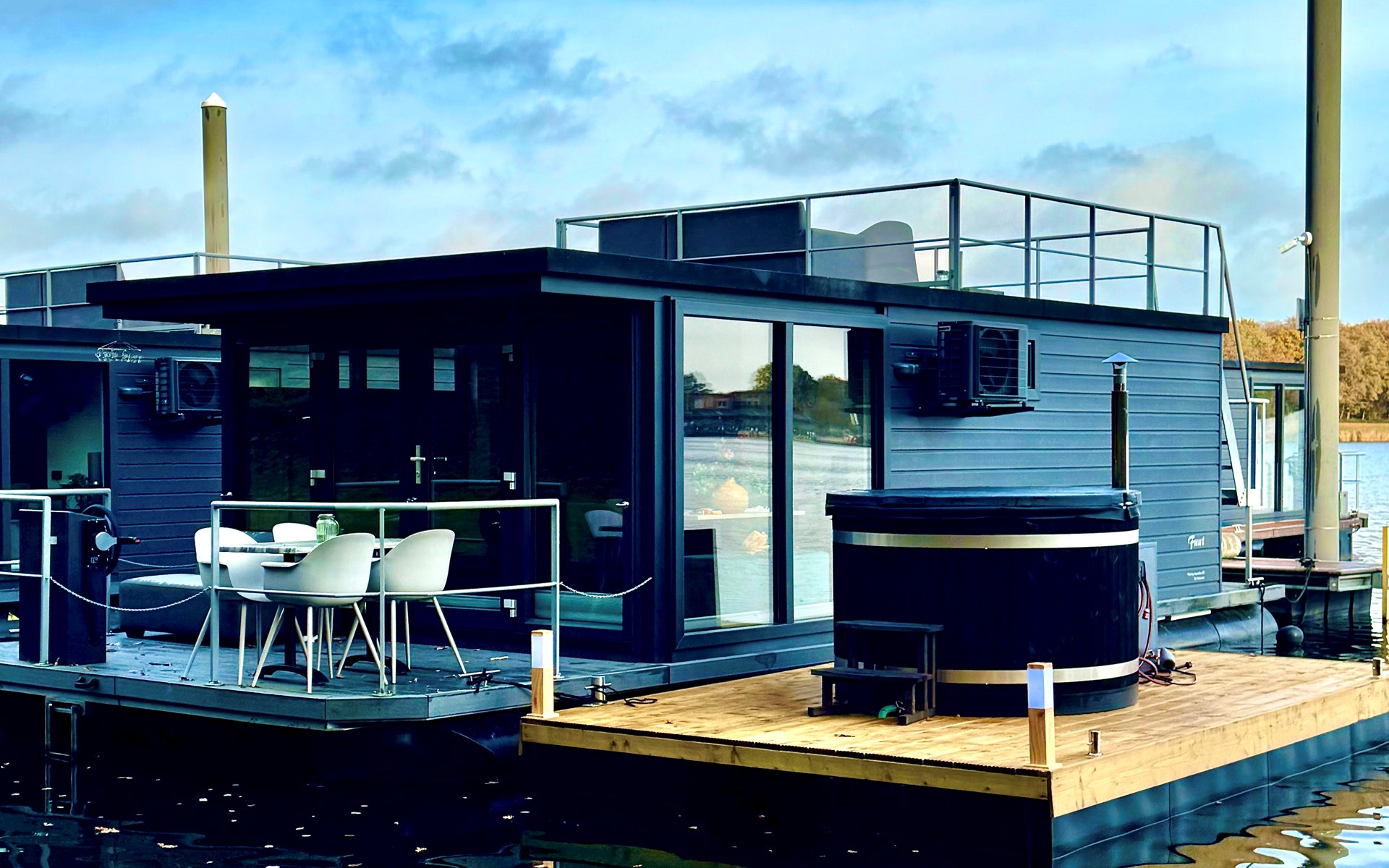 ✨ Of je nu kiest voor een verfrissende duik gevolgd door een ontspannend moment in de hottub, een rustige middag op het dakterras of een actieve dag op het water – deze unieke houseboat met eigen drijvende hottub en dakterras biedt het hele jaar door de perfecte combinatie van ontspanning, luxe en natuurbeleving.