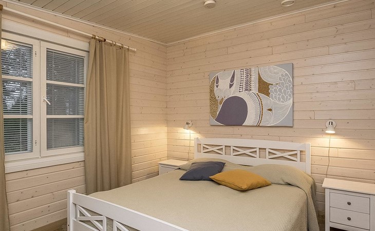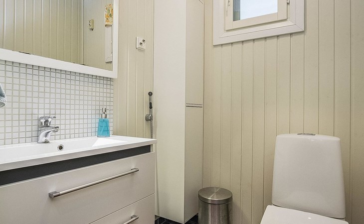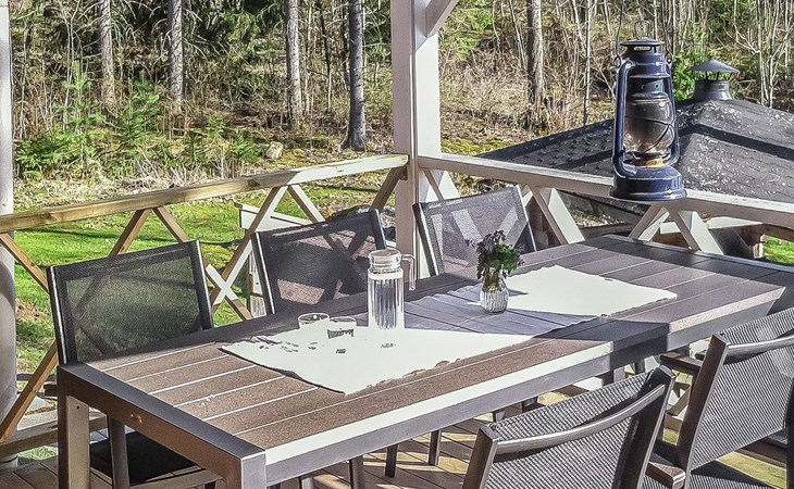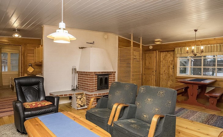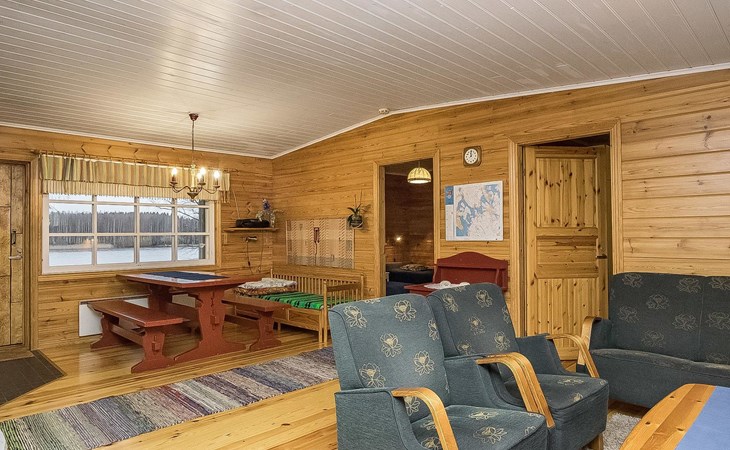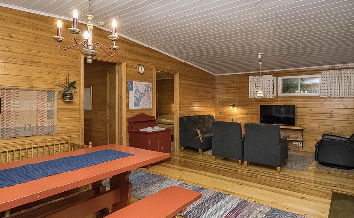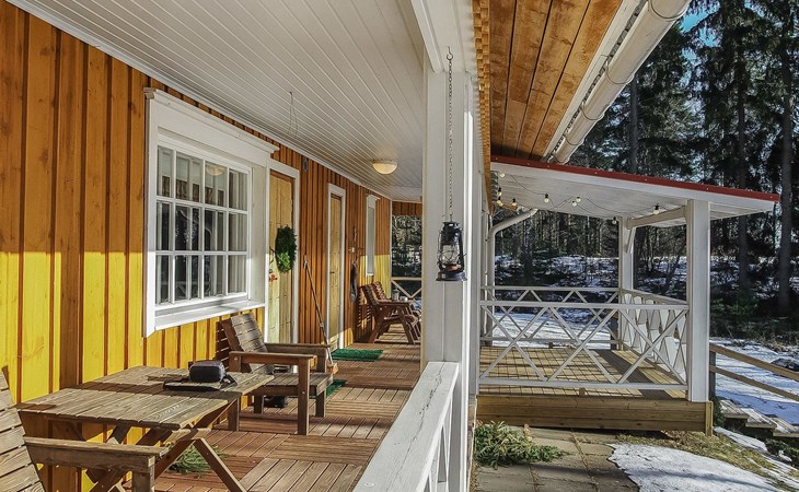 Wooden cottage 1999, fully renovated 2014, living room/kitchen 1 extra bed, 2 bedrooms with double bed, bedroom with 2 beds, dressing room, sauna (wooden heated), shower room, utility room, toilet, 20 m² terrace.