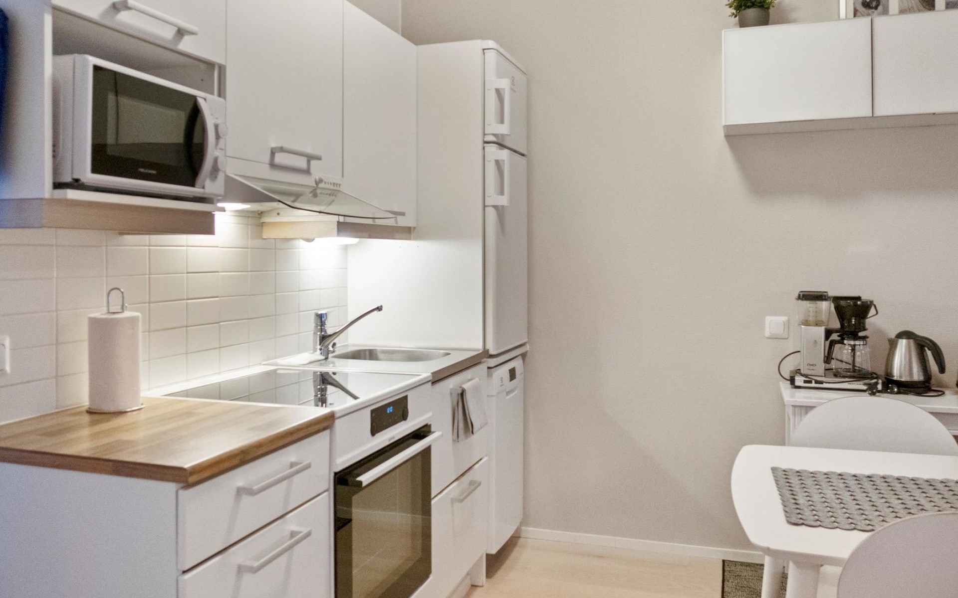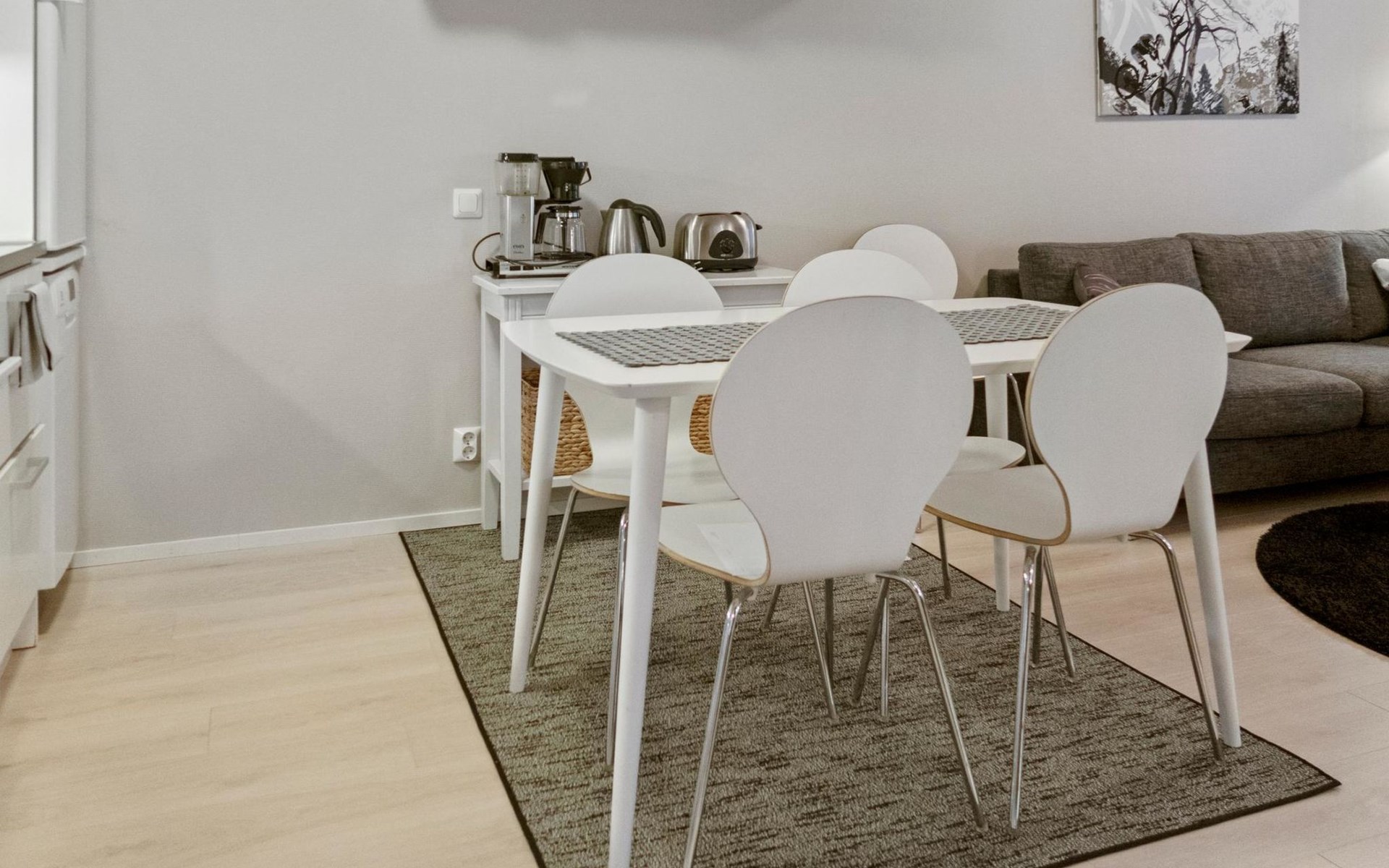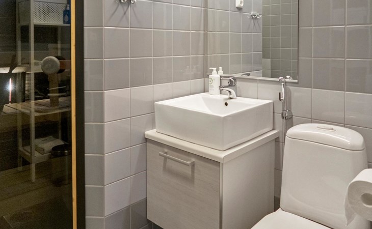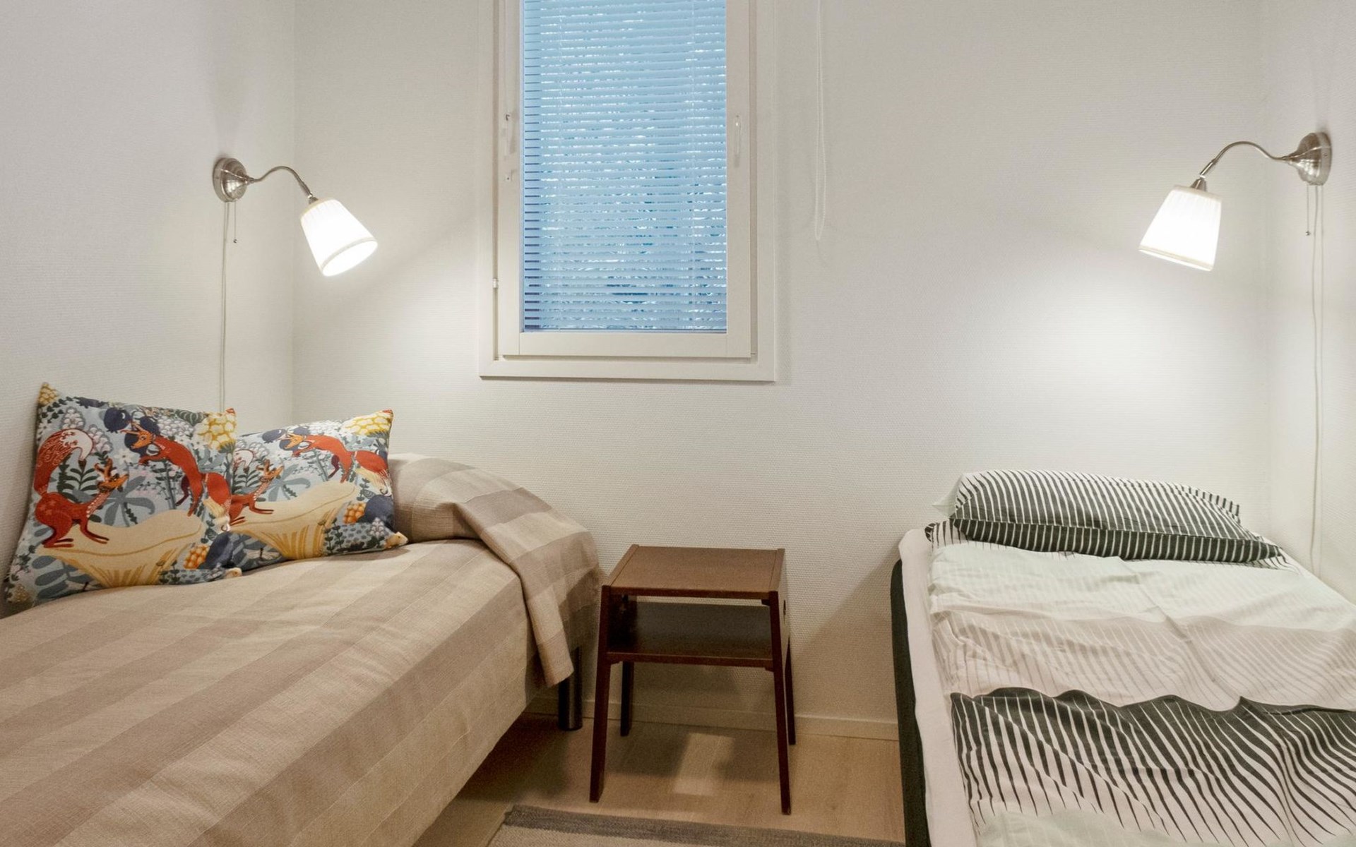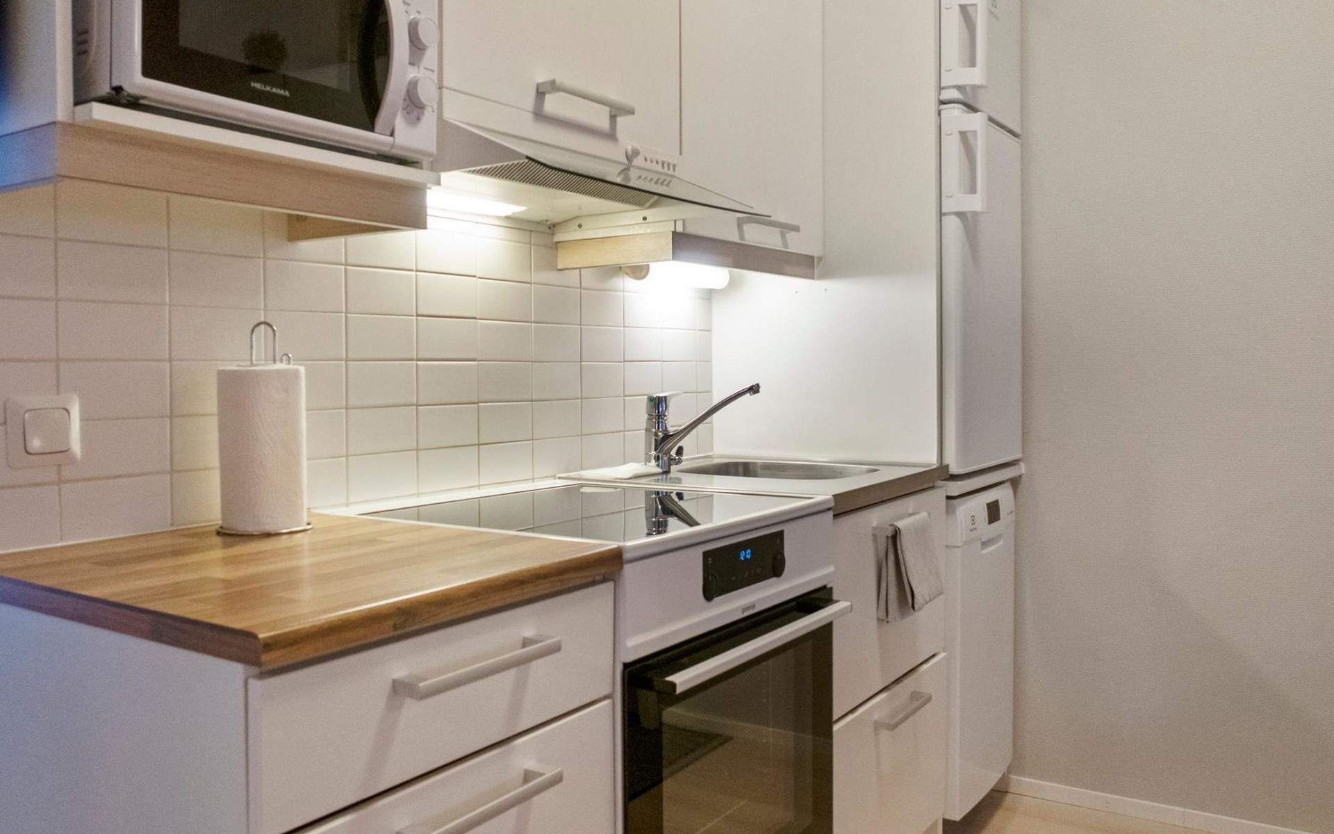 AINO apartment is 50 m² on one level. Bright living room/kitchen, windows and balcony facing the slopes of Vuokatti. Two bedrooms, one bedroom has a double bed and the other has separate beds for two. Washroom/toilet, sauna (electric stove). Balcony with furniture for 4 and a gas grill in use during the summer season.