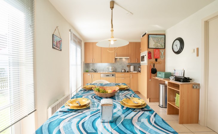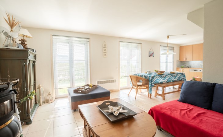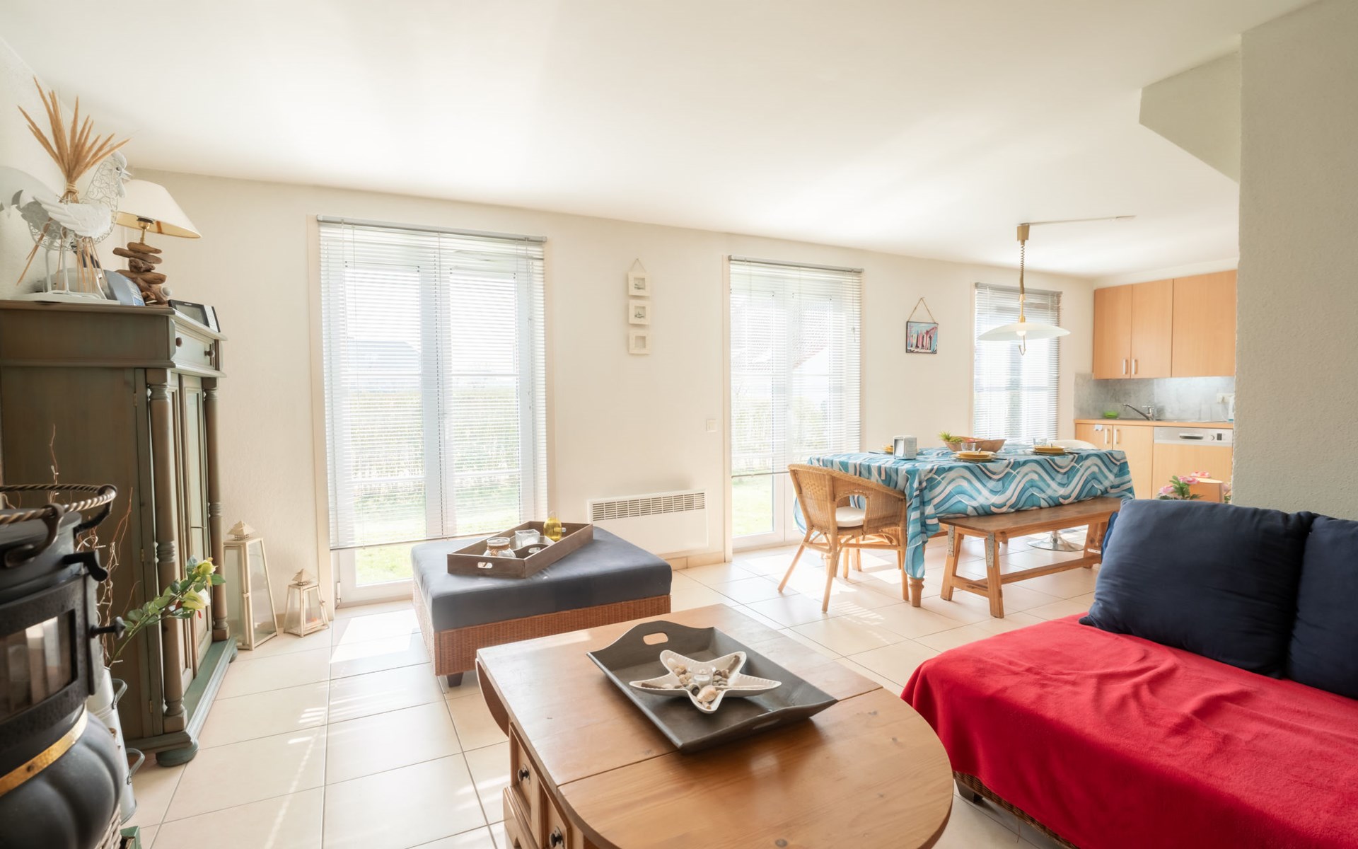 Vosseslag 3 km van De Haan aan Zee: Kindvriendelijk vakantiedorp "Sea Side Village". 3 km van het centrum van De Haan, rustige ligging, 1 km van zee, 1 km van het strand. Supermarkt 3 km, restaurant, bakkerij 400 m, café 400 m, fietsverhuur 3 km, tram "De Haan Vosseslag" 950 m, bushalte "Halte Heidelaan" 650 m, station "Oostende NMBS" 10 km, zandstrand "Strand Vosseslag" 1 km, fKK-strand 3 km. Golfterrein (18 holes) 2 km, surfschool 4 km, zeilschool 4 km, tennis 3.3 km, midgetgolf 3.3 km. Attracties in de buurt: Familiepark De Sierk 400 m, Plopsaland, De Panne 40 km, SEA LIFE Blankenberge 13 km, Fort Napoleon Oostende 7 km, Mountainbike trail 3 km. De woning bevindt zich in een voor verkeer beperkte zone. De omgeving is gevoelig voor geluidsoverlast. Gelieve geen lawaai te maken en de rust te bewaren.