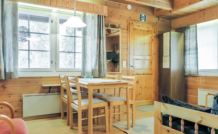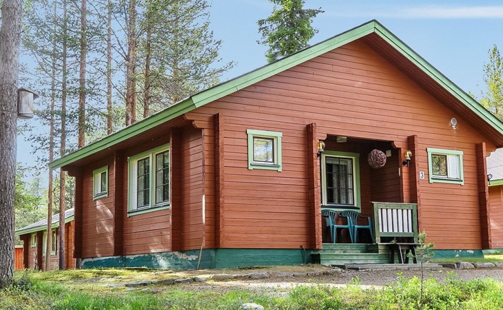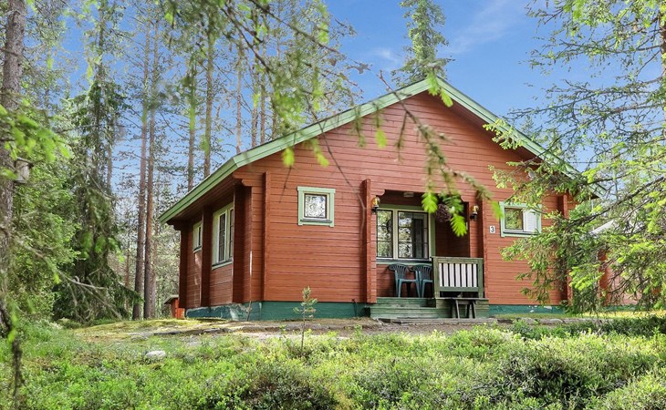 Living room/kitchen, 2 bedrooms, two beds in both, sauna with electric sauna stove, washroom/WC (shower cubicle), lobby and small covered porch.