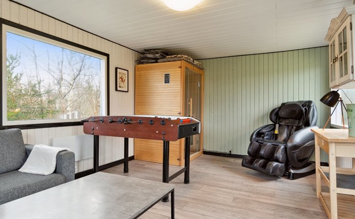 Eengezinswoning, bouwjaar 1969. 900 m van zee. Voor alleengebruik: terrein 1.682 m2, verzorgde tuin. Barbecue. In het huis: sauna, tafelvoetbal, wasmachine. Parkeerplaats bij het huis. Levensmiddelenwinkel 1.5 km. De eigenaar accepteert geen jeugdgroepen.