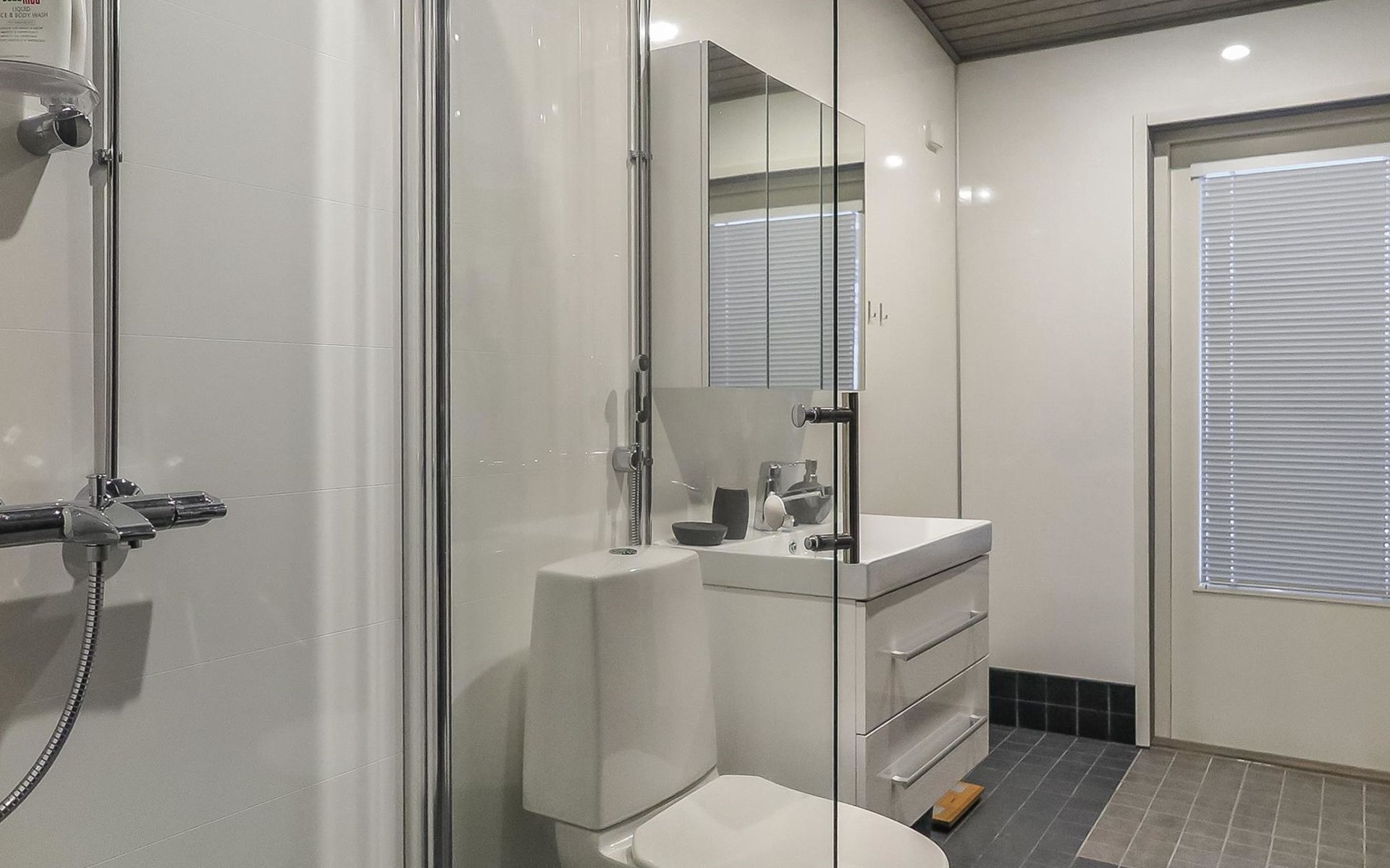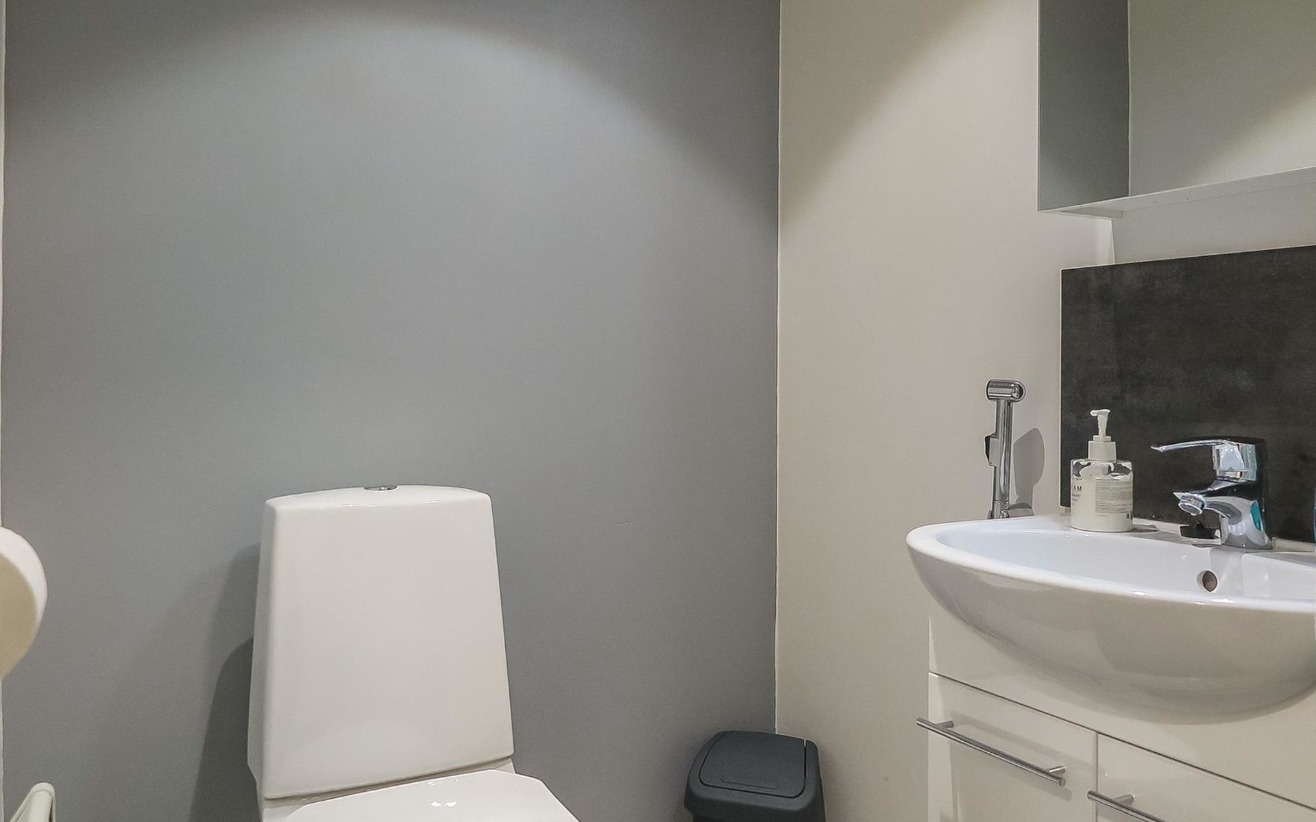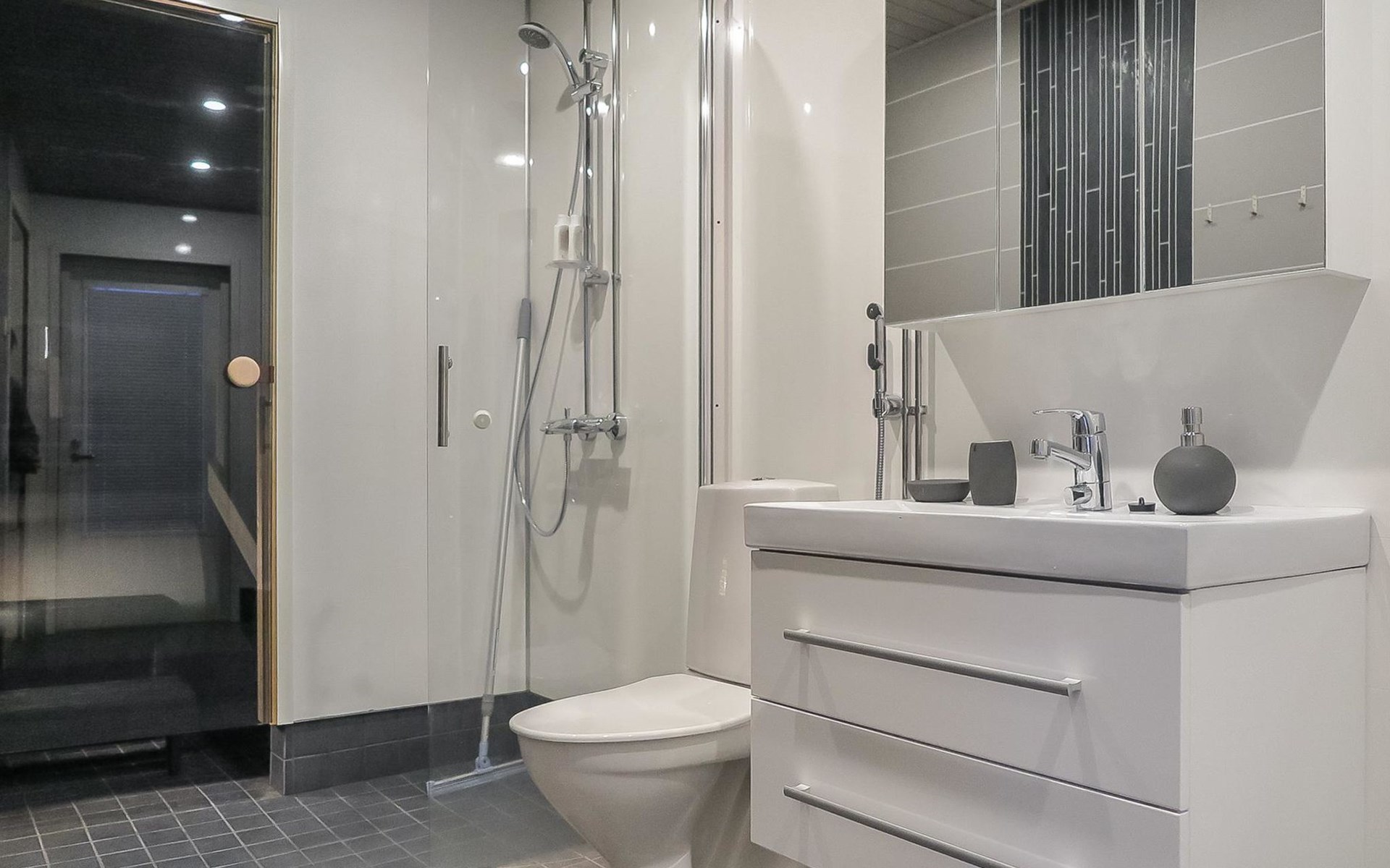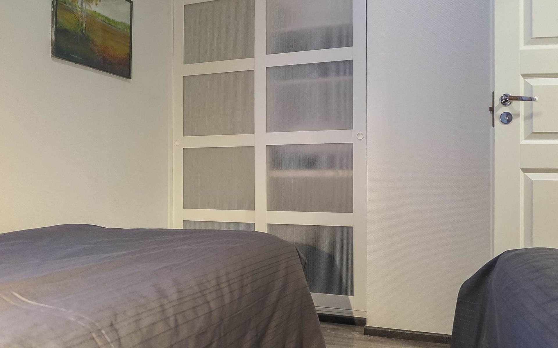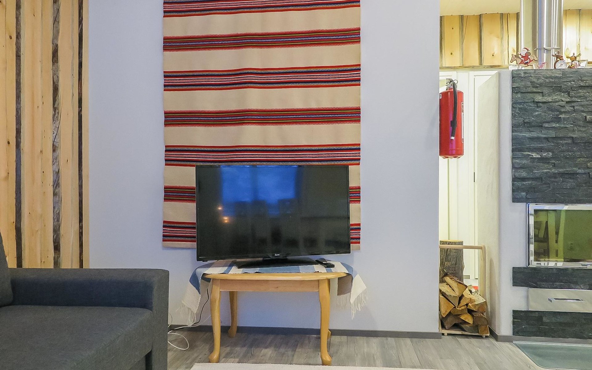 Apartment in semi-detached wooden house, built in 2019. Living room/kitchen with convertible sofa, 2 bedrooms with 2 beds, sauna, washroom/WC, separate WC, covered open veranda and storeroom.