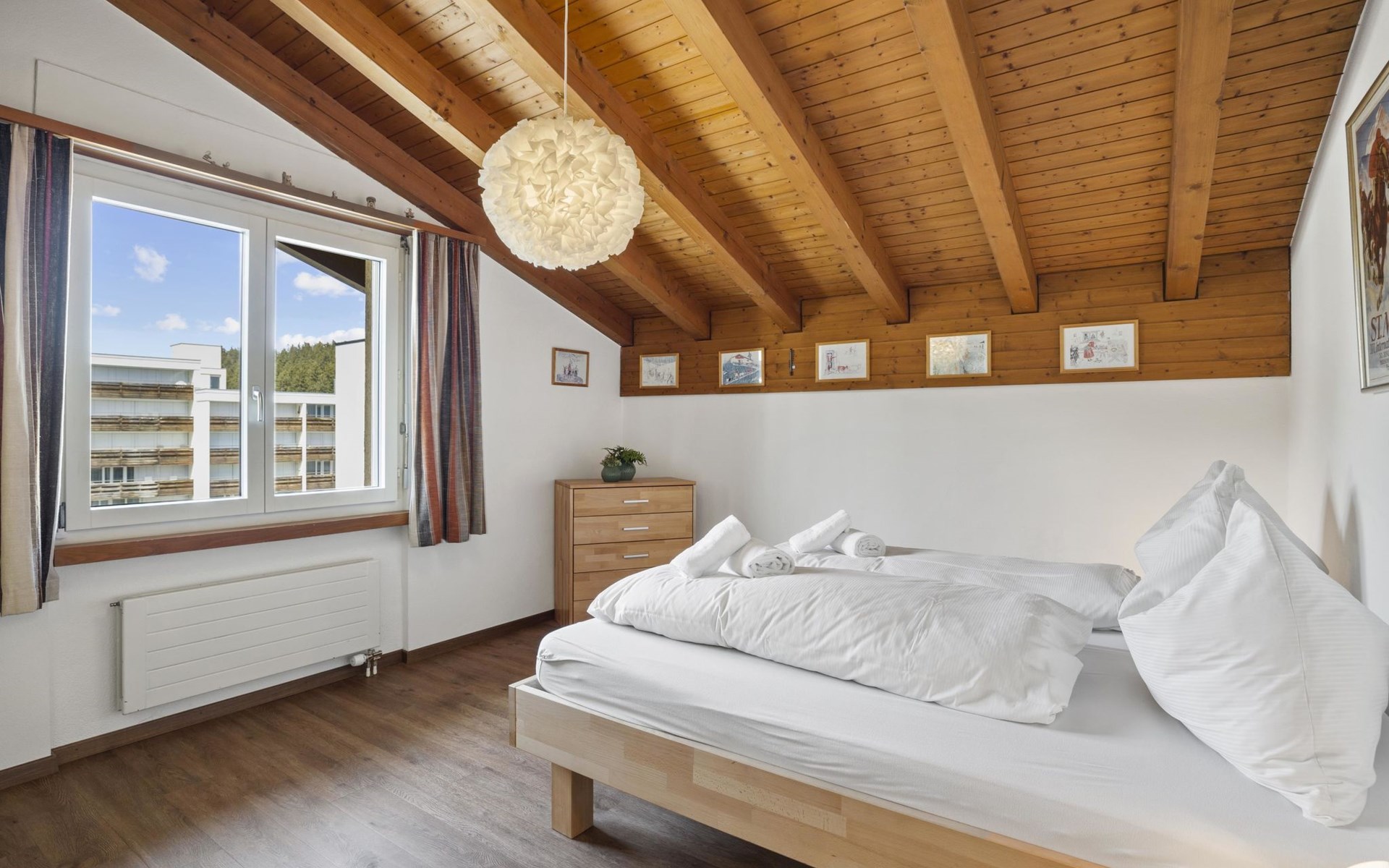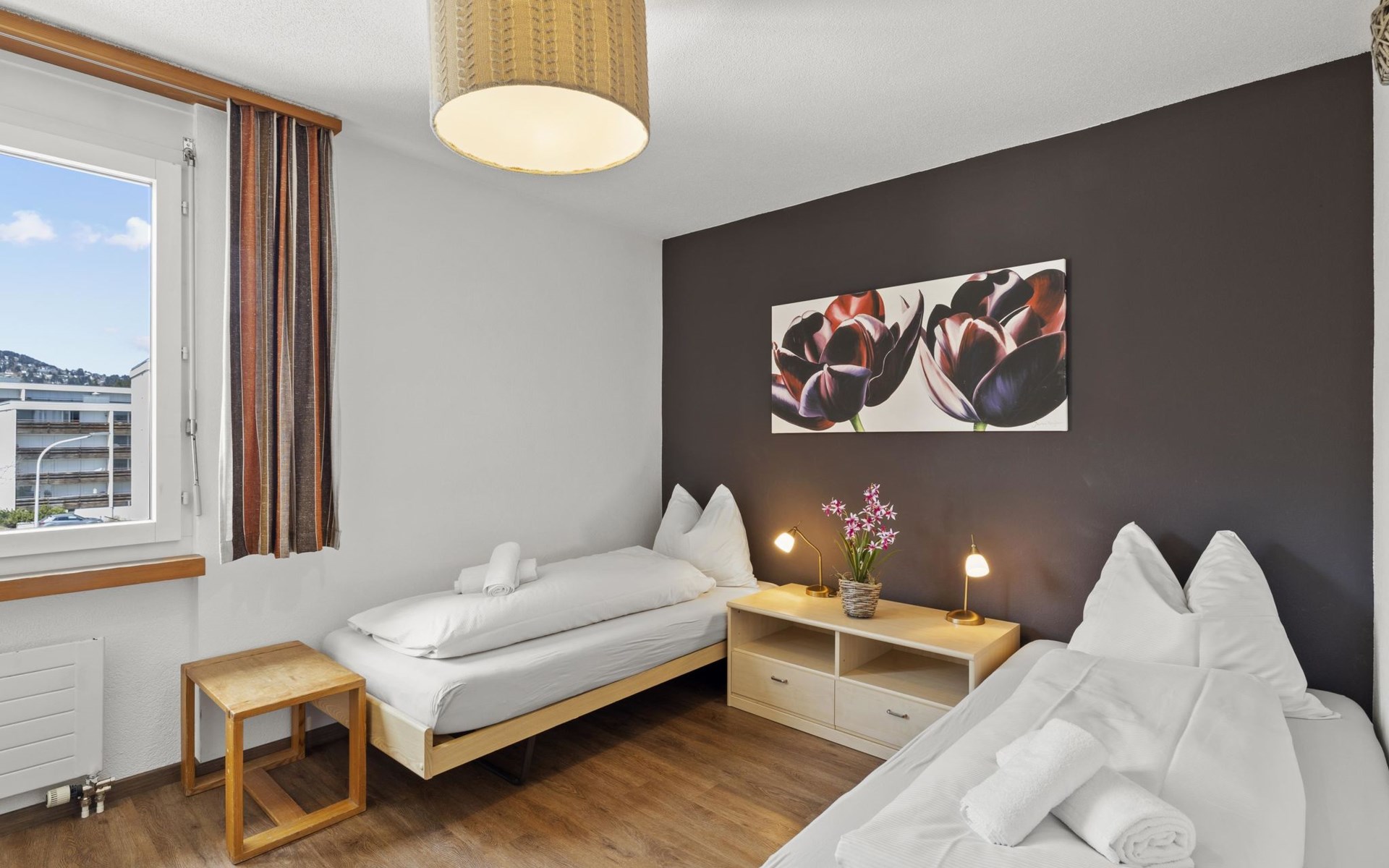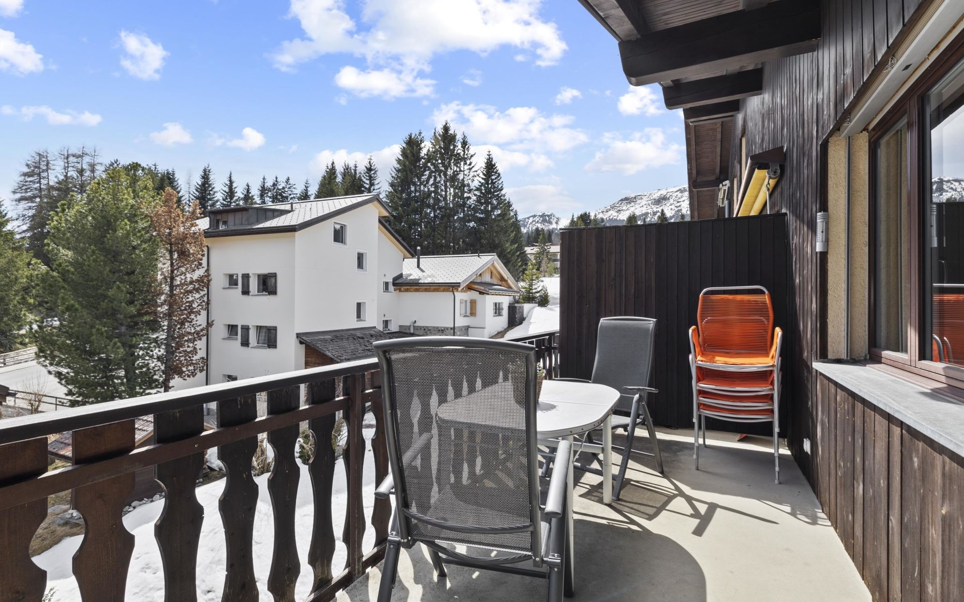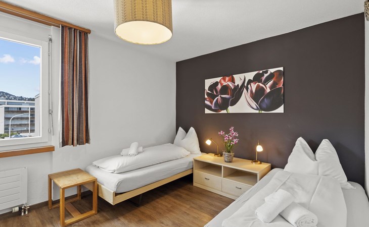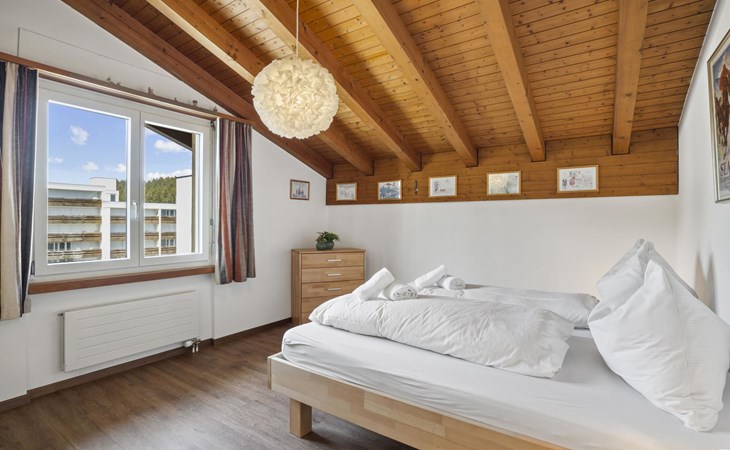 3rd floor / Lift / Wlan yes / 1 room with double bed / 1 room with two single beds / 1 room in the living area with single beds / 1 bathroom with bathtub / 1 separate WC. The holiday flat is located in the centre of Lenzerheide and is directly at the ski slope/cross-country ski run and in the immediate vicinity of the free sports bus and various shopping facilities. A good starting point for all winter/summer activities for the whole family. (The holiday flat A302 is also in the same house).