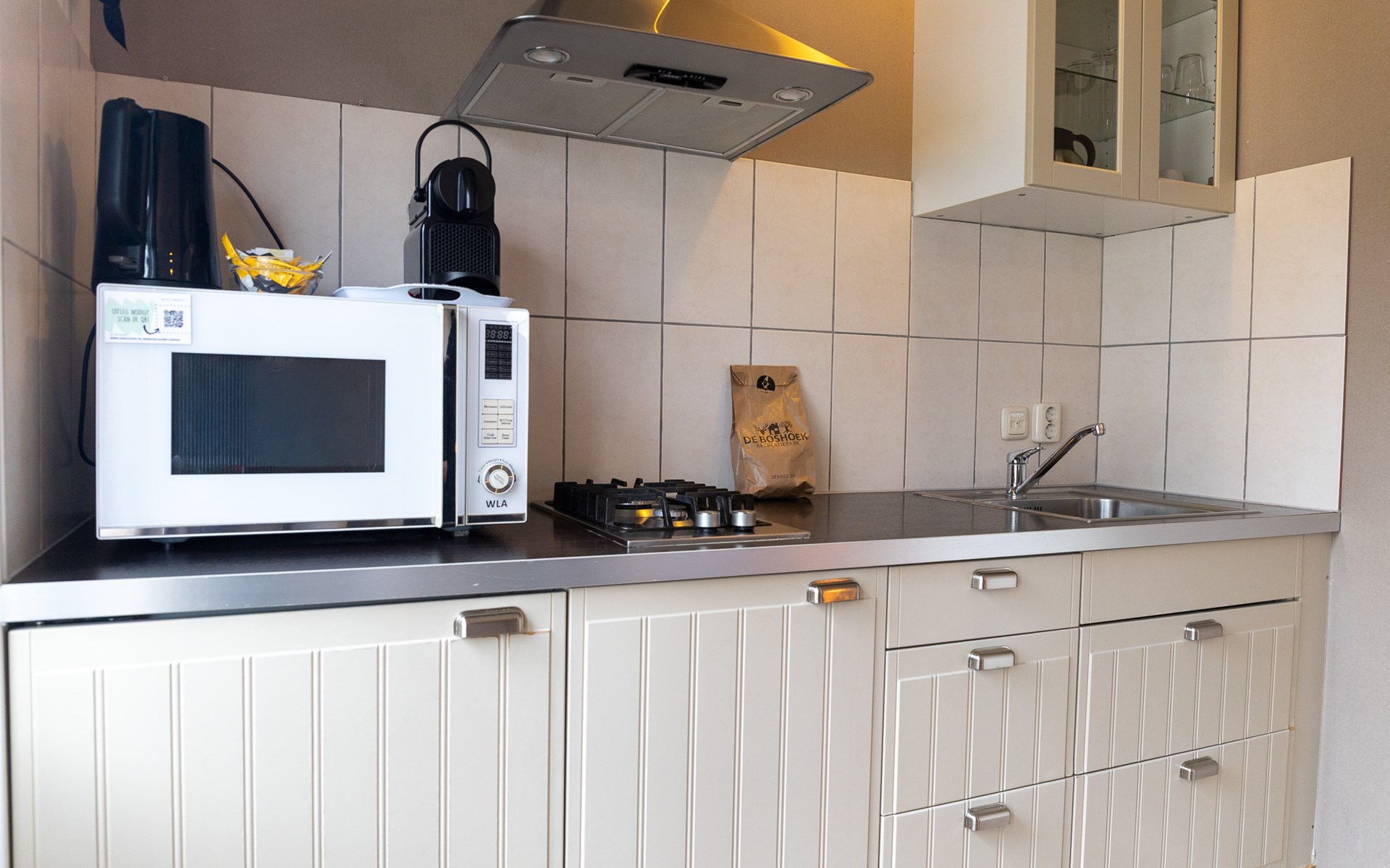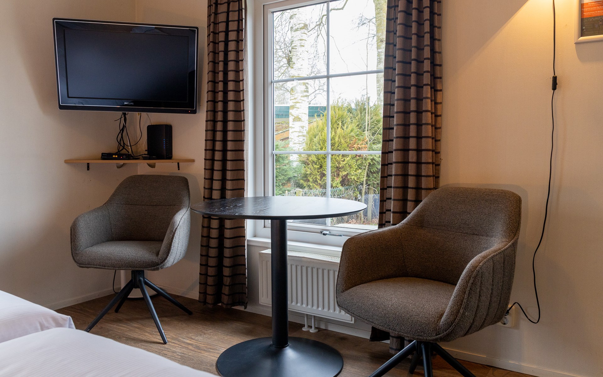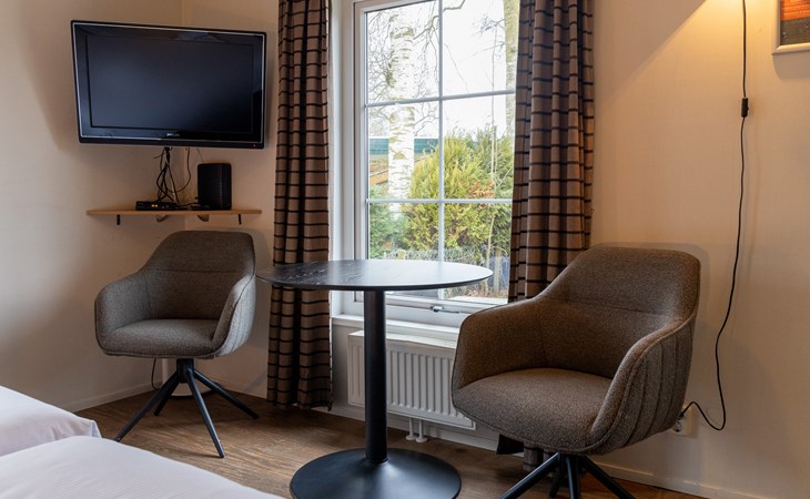 Beleef een ontspannen verblijf in een sfeervol hotelchalet voor 2 personen op 5-sterren Recreatiepark De Boshoek. Dit unieke verblijf combineert het comfort van een hotelkamer met de gezelligheid van een vakantiehuis. Je slaapt op luxe boxspringbedden en geniet van een compleet ingerichte kamer met een knusse zithoek en flatscreen-tv. De keuken, uitgerust met een Nespresso-machine, koelkast en combimagnetron, biedt alle gemakken voor een comfortabel verblijf. In de badkamer tref je een douche, wastafel en toilet. Gratis WiFi is inbegrepen.