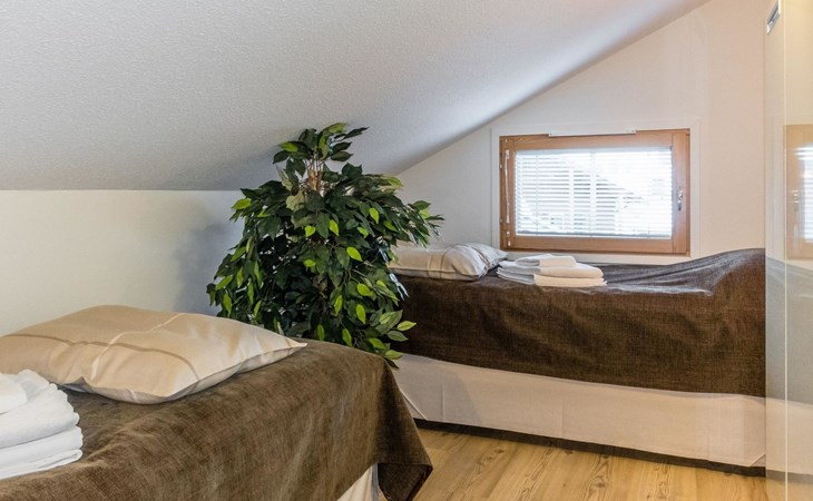 On the second floor, 4 bedrooms, with 2 beds in each, lounge and TV area, sauna, washroom and 2 separate WC.