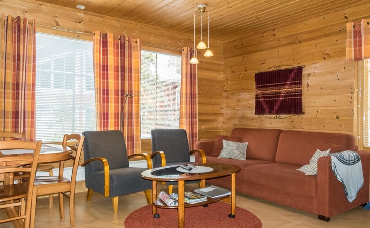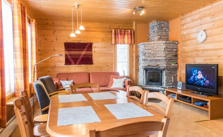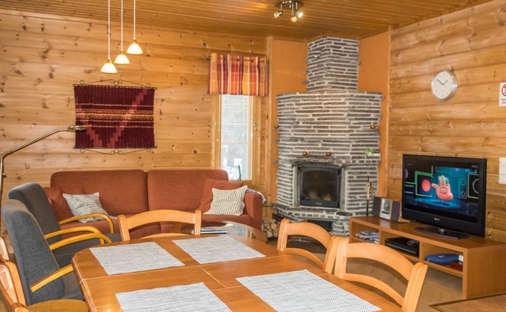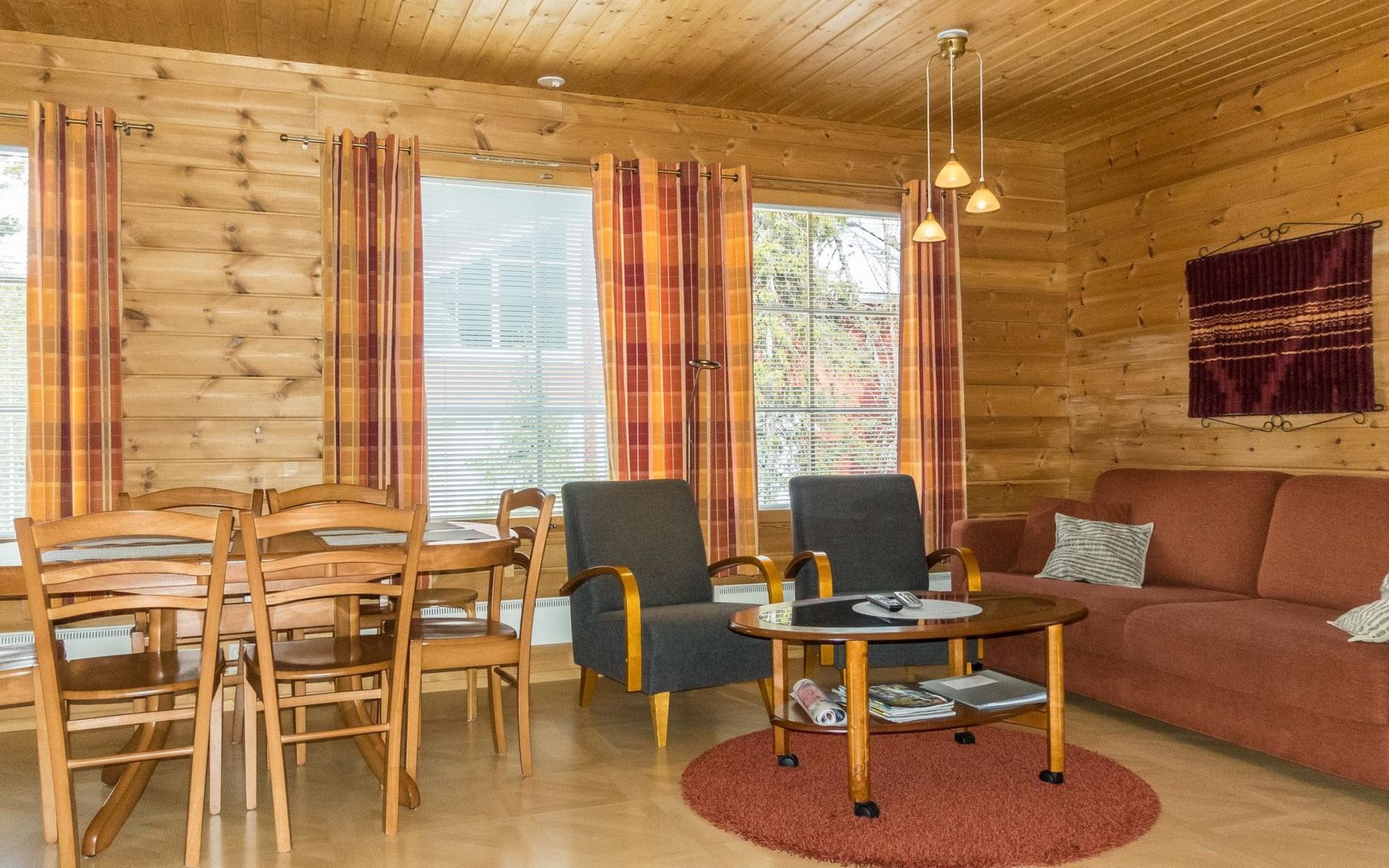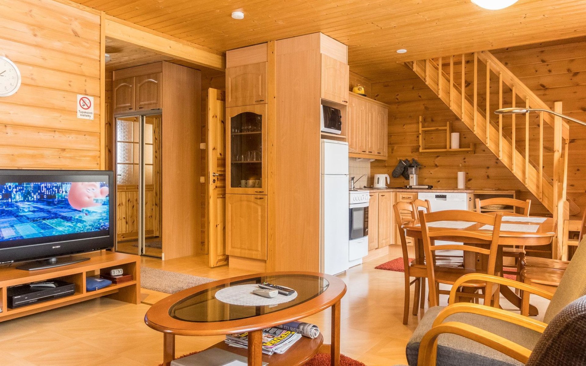 A semi-detached house, built in 2005, sauna is renovated in 2011. Ground floor: kitchen/livingroom, bedroom with 2 beds, sauna (electric stove), bathroom (2 showers), separate toilet, small open veranda. Upstairs: 2 bedrooms, both with 2 beds, bedrooms has sloping roofs, toilet also upstairs, lounge area.