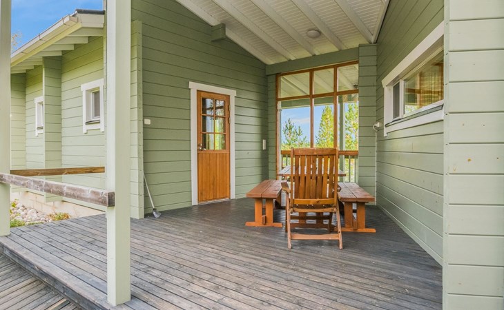A peaceful cottage area on the shores of Saimaa. In the same area, 7 villas, one of which is selected for the customer (you cannot influence the choice). The villas are similar. The neighbor distance varies depending on the villa.