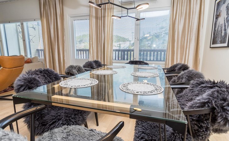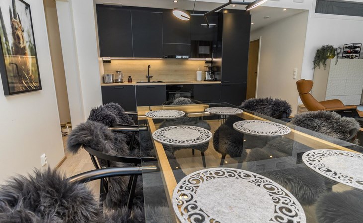 Come and enjoy the unique atmosphere and stunning landscapes of Ruka in this stylish and spacious apartment. Book your vacation now with Lomarengas and get ready for an unforgettable experience! Additional information: The same building houses a restaurant and other services. Breakfast can be purchased from various restaurants in the area, please check availability in advance. Internet speed is 20 Mbps. Pets are allowed for extra charge. Due to the large sauna, the stove must be heated approximately 1.5 hours before bathing.