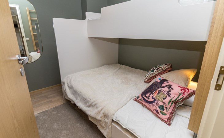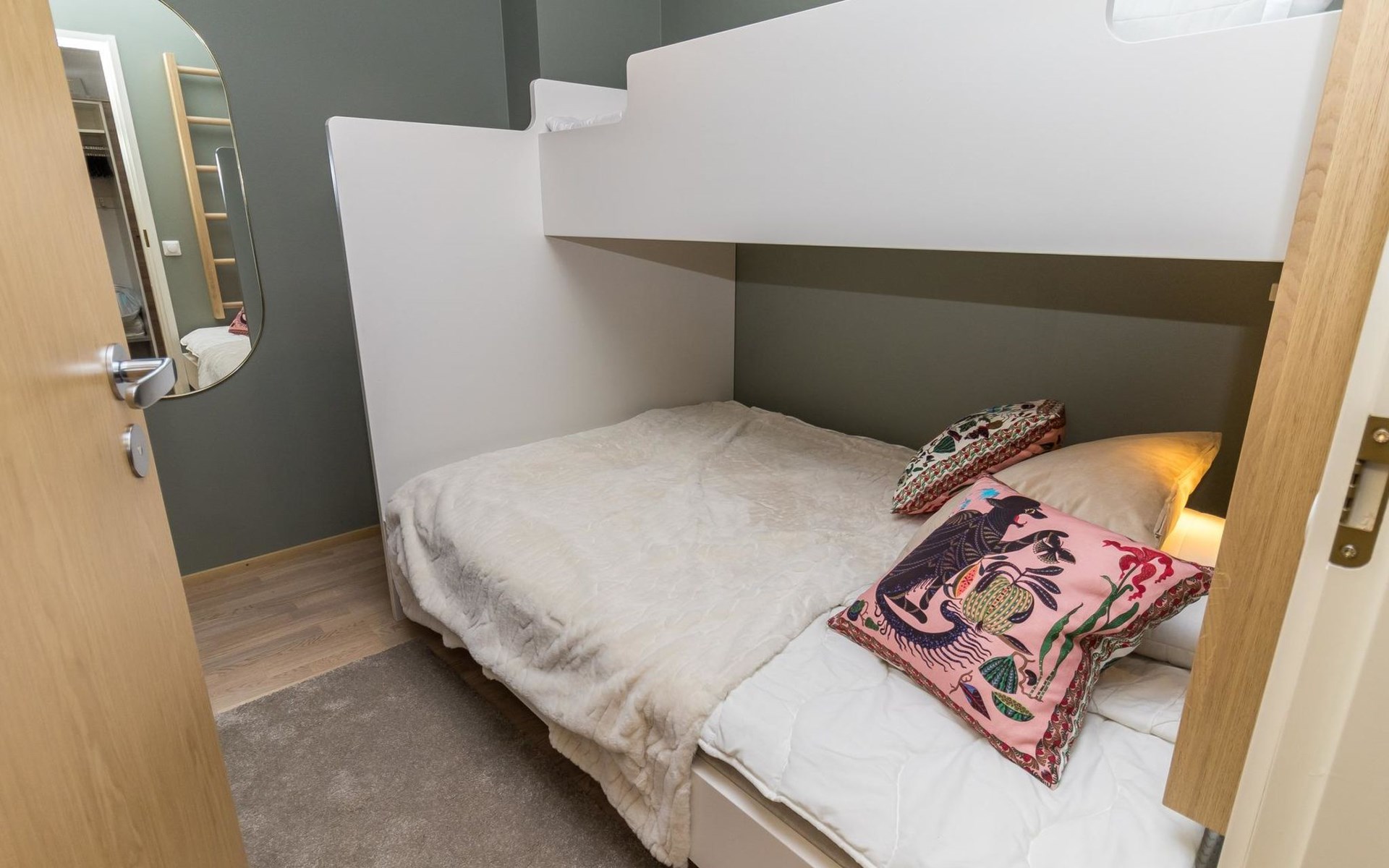 This apartment, equipped with three bedrooms, provides comfortable accommodation. Two bedrooms feature comfortable double beds, and the third bedroom has a bunk bed with a wide (140 cm) double bed on the lower bunk. This setup offers excellent sleeping arrangements, even for larger groups or families.