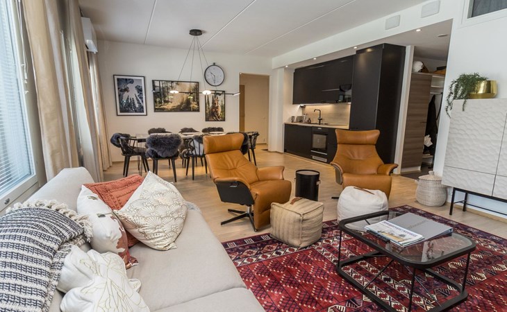 Enjoy an unforgettable vacation in the heart of Ruka in this stunning and spacious apartment, which offers first-class amenities for both relaxation and active vacationing.