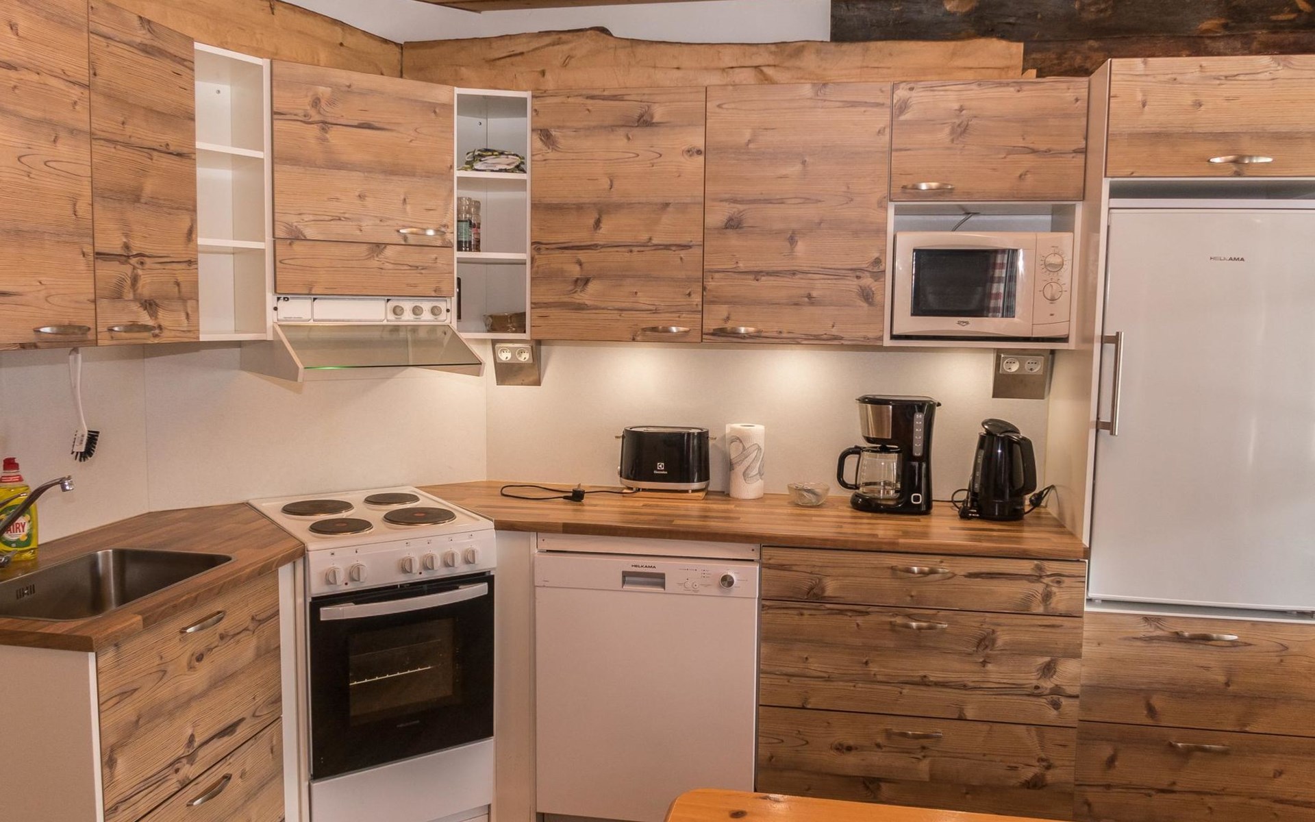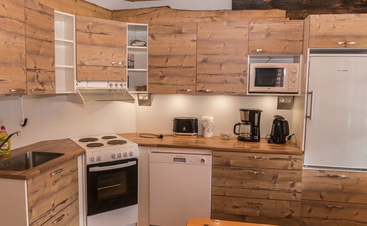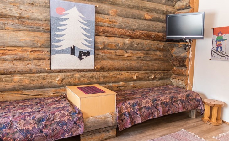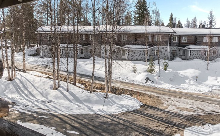 27 km to the north from Kuusamo, Ruka 2,9 km, lake Talvijärvi 500 m. Apartment on the second floor in 2-storey row house, built in 1990. Bedroom: double bed, living room: 2 beds, loft (low room height, 7 m²): 2 mattresses, living room / kitchen, electric sauna.