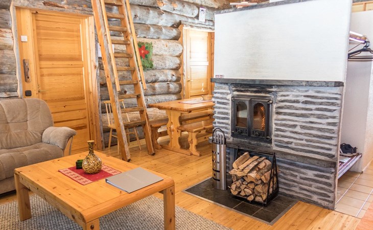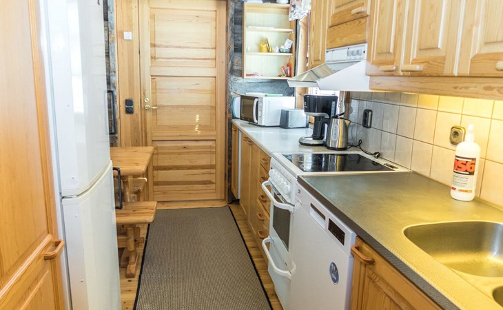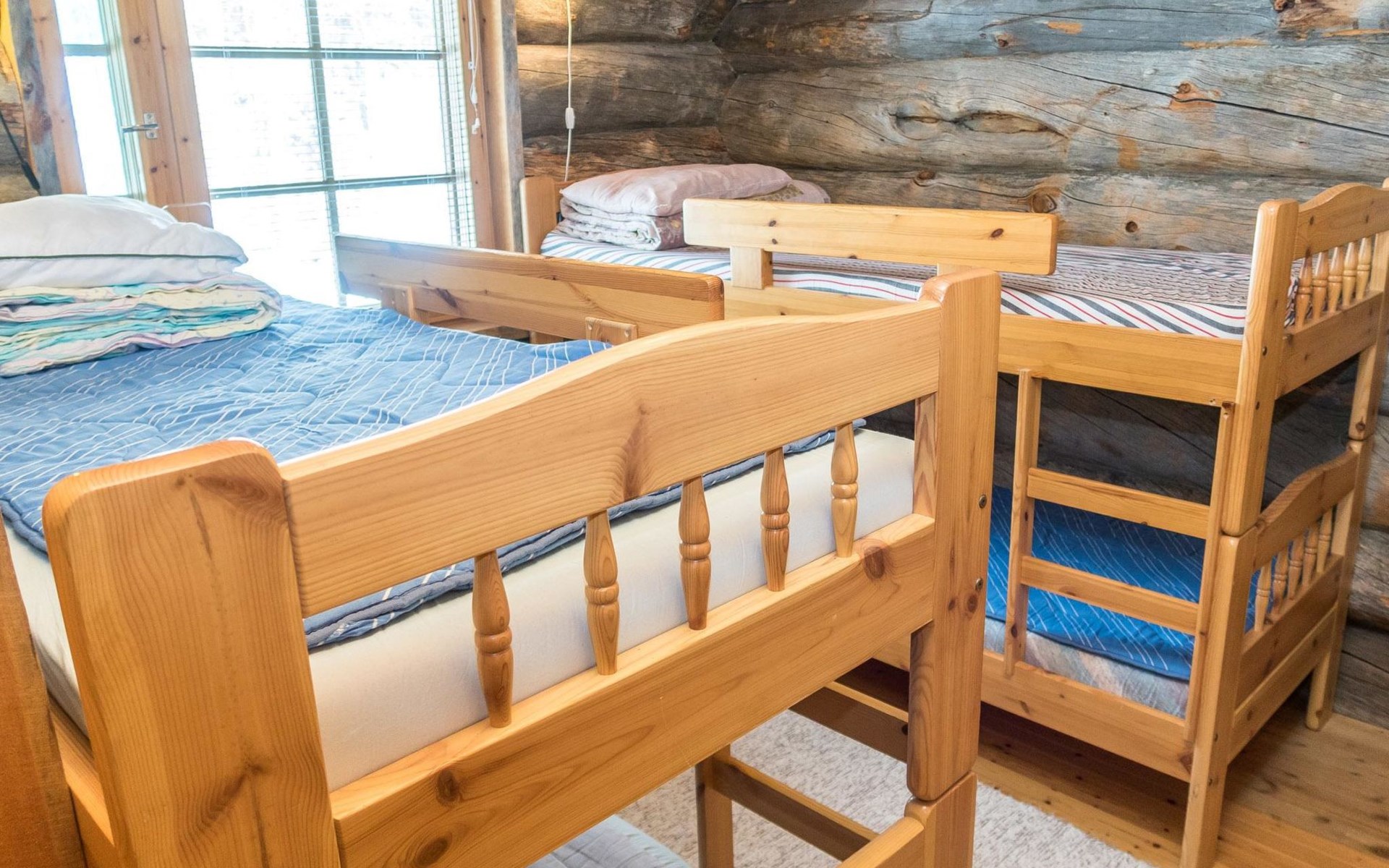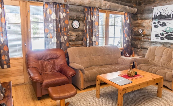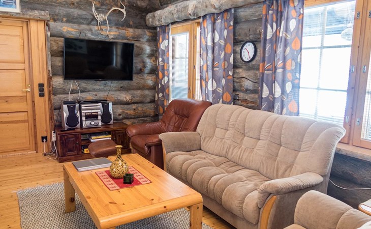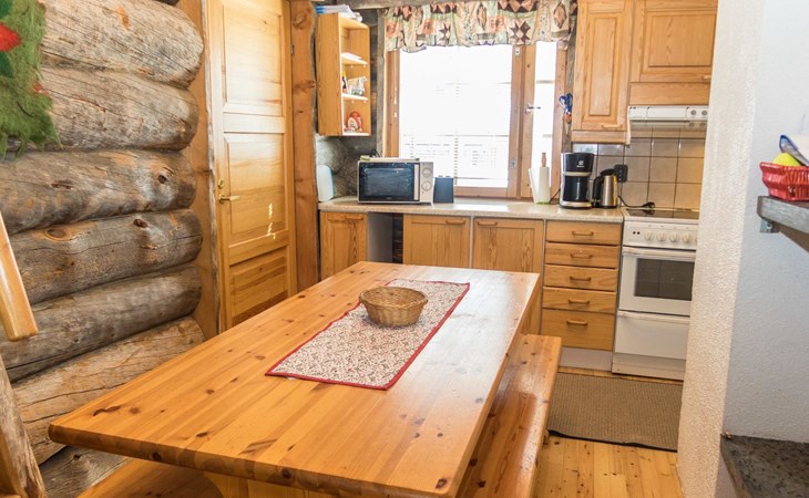 27 km to the north from Kuusamo, Ruka village (West-Ruka) 2,5 km. Apartment in a semi-detached kelo log-built house, built in 1991. Bedrooms 1-2: double bed, bedroom 3: 2 bunk beds. Two low lofts with steep stairs. These lofts are not suitable for overnight stays. Kitchen, electric sauna.
