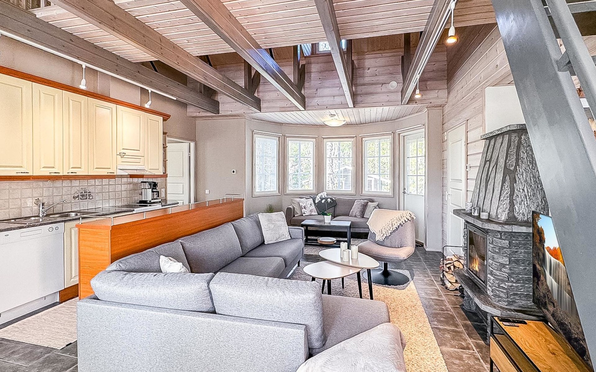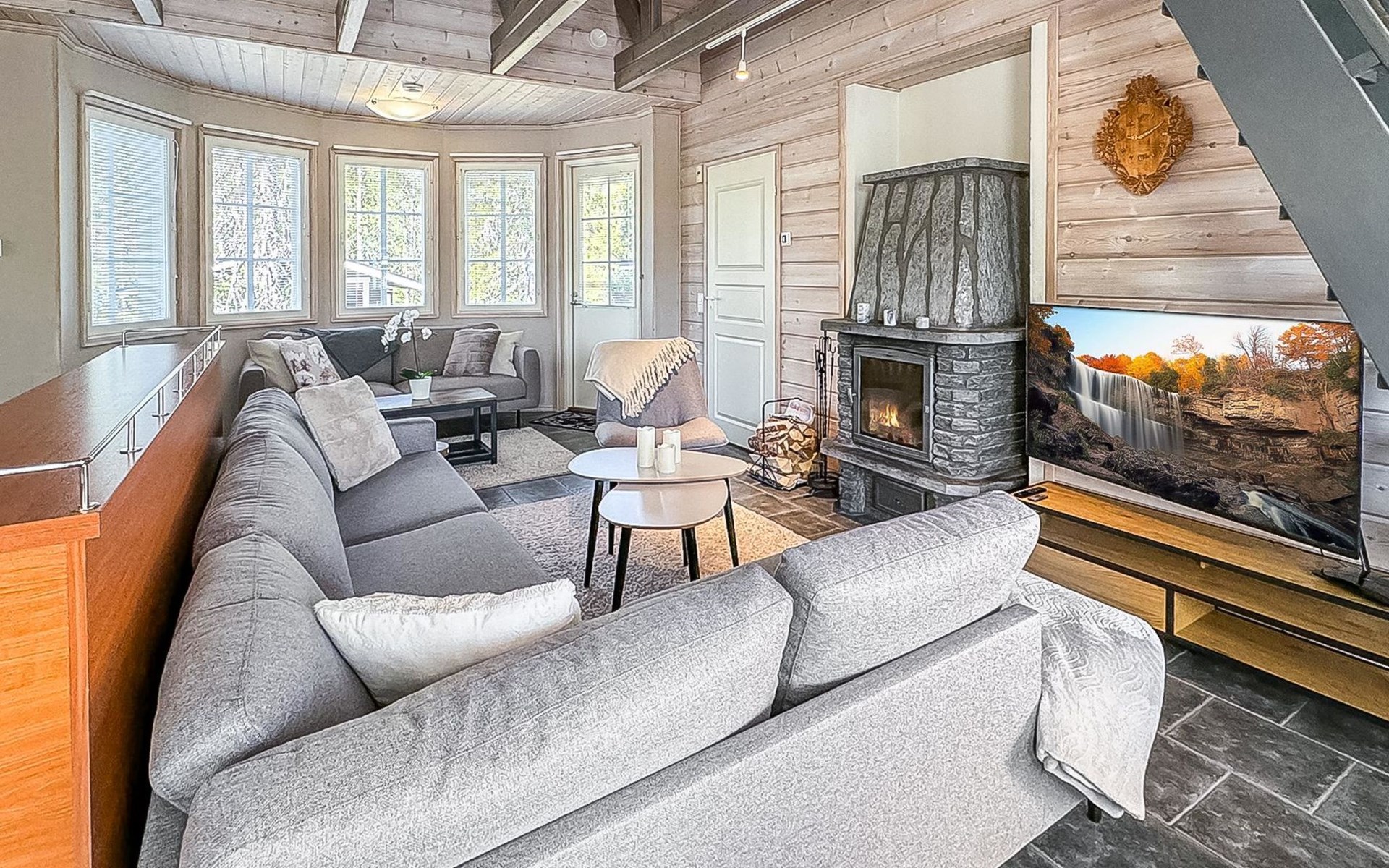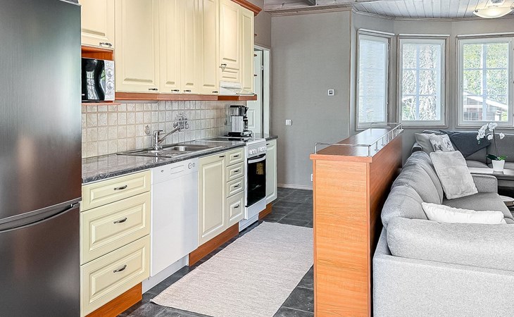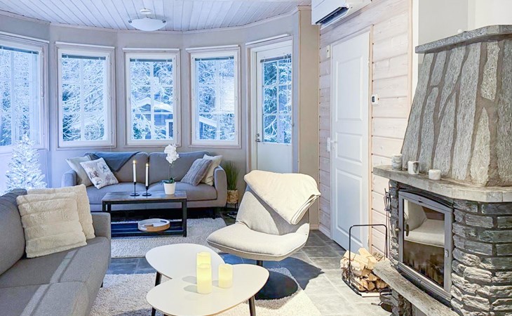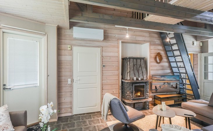 From the doorstep of the cabin, you can enjoy nature whether you are skiing, cross-country skiing, hiking, or biking. The cozy atmosphere and versatile spaces of the cabin ensure a relaxing and comfortable holiday. This charming semi-detached house in the popular Vuosseli area is the perfect choice for an active family or a group of friends. Book now with Lomarengas!