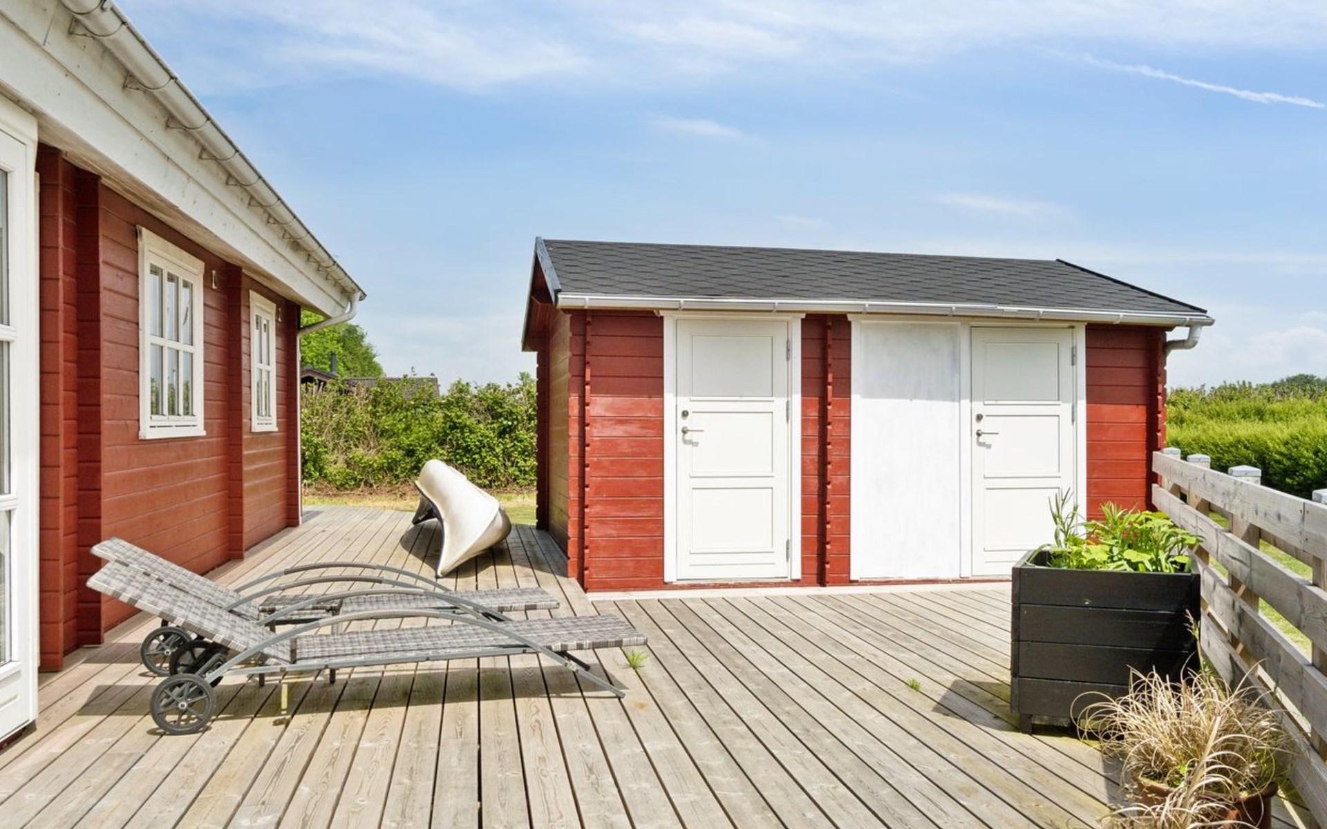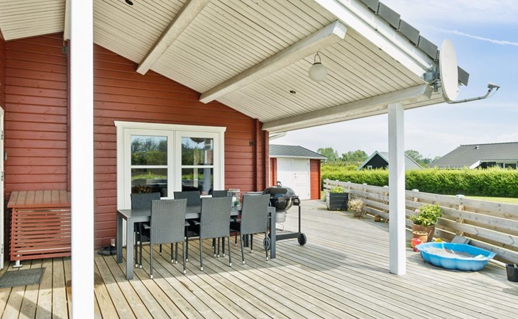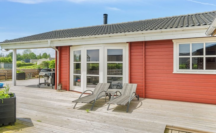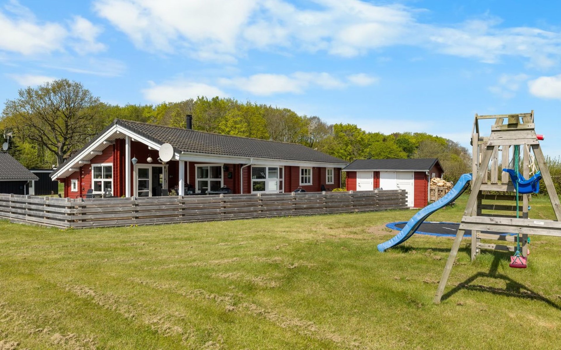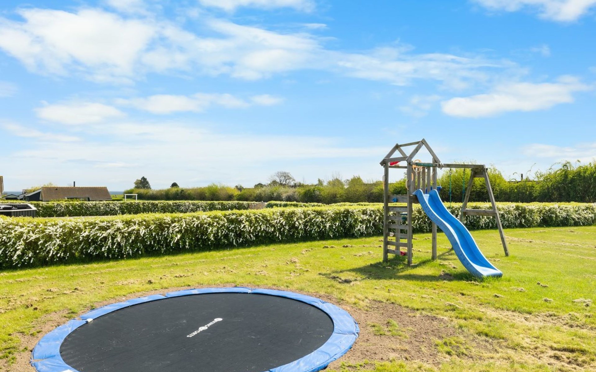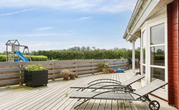 Eengezinswoning, bouwjaar 2007. 600 m van zee. Voor alleengebruik: terrein 1.180 m2, verzorgde tuin. Terras (85 m2), barbecue, kinderspeelplaats (glijbaan, schommel). In het huis: sauna, trampoline, wasmachine, droger. Parkeerplaats bij het huis. Oplaadstation. Levensmiddelenwinkel 850 m. Golfterrein 15 km. De eigenaar accepteert geen jeugdgroepen.