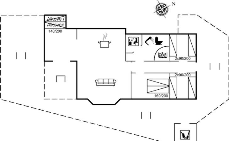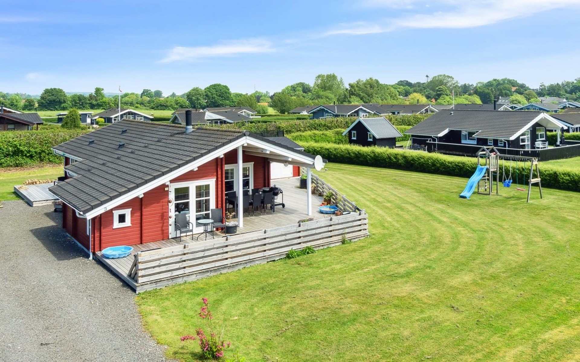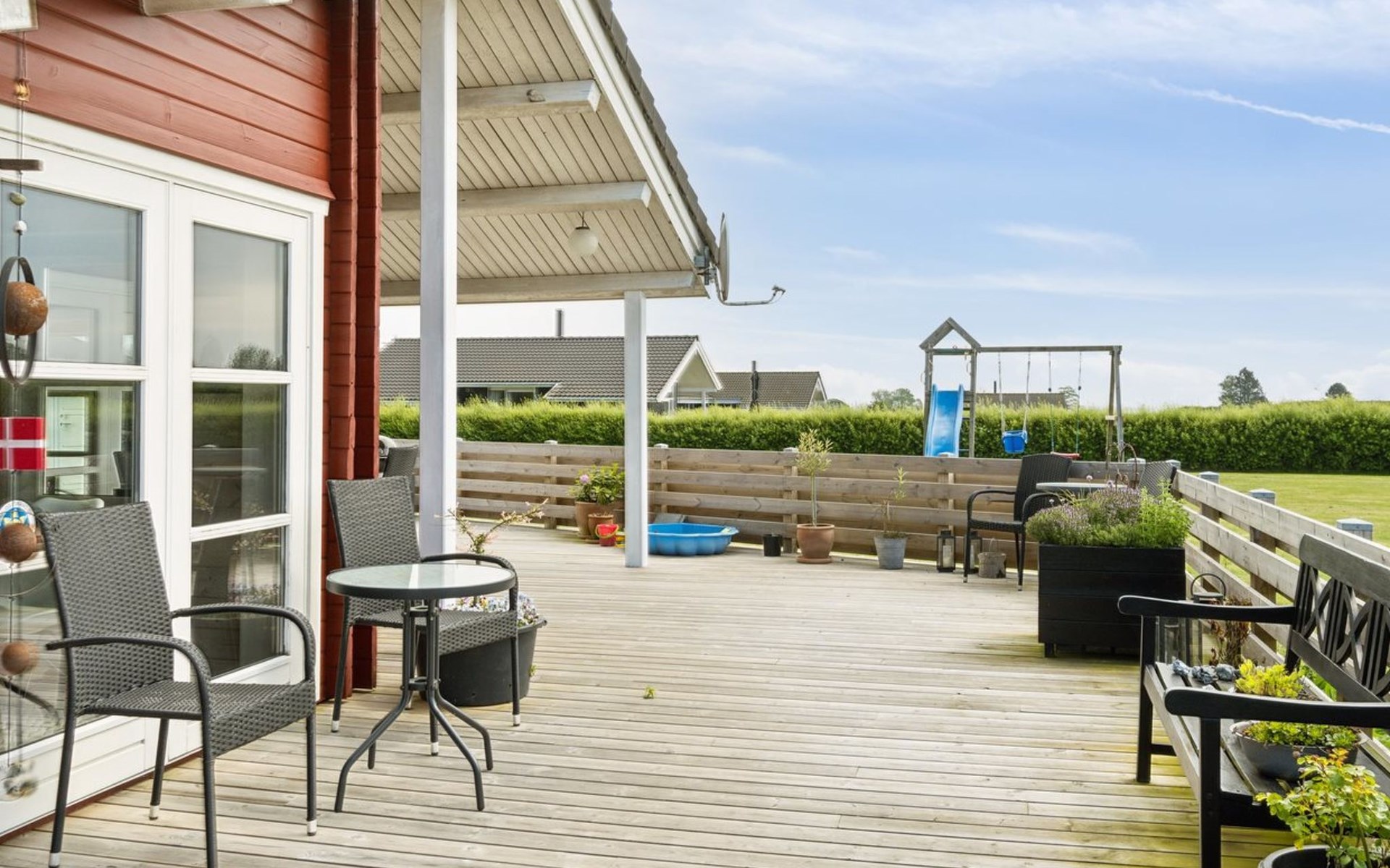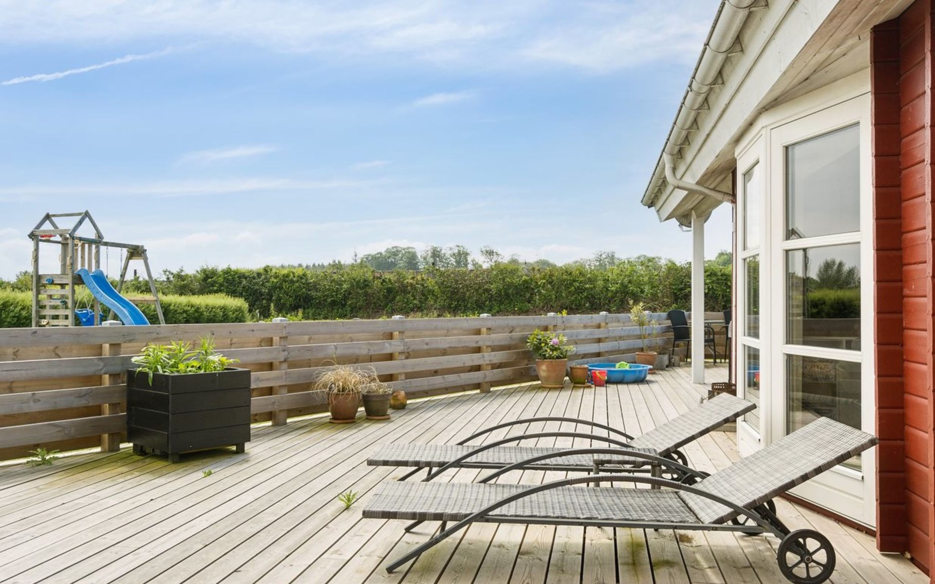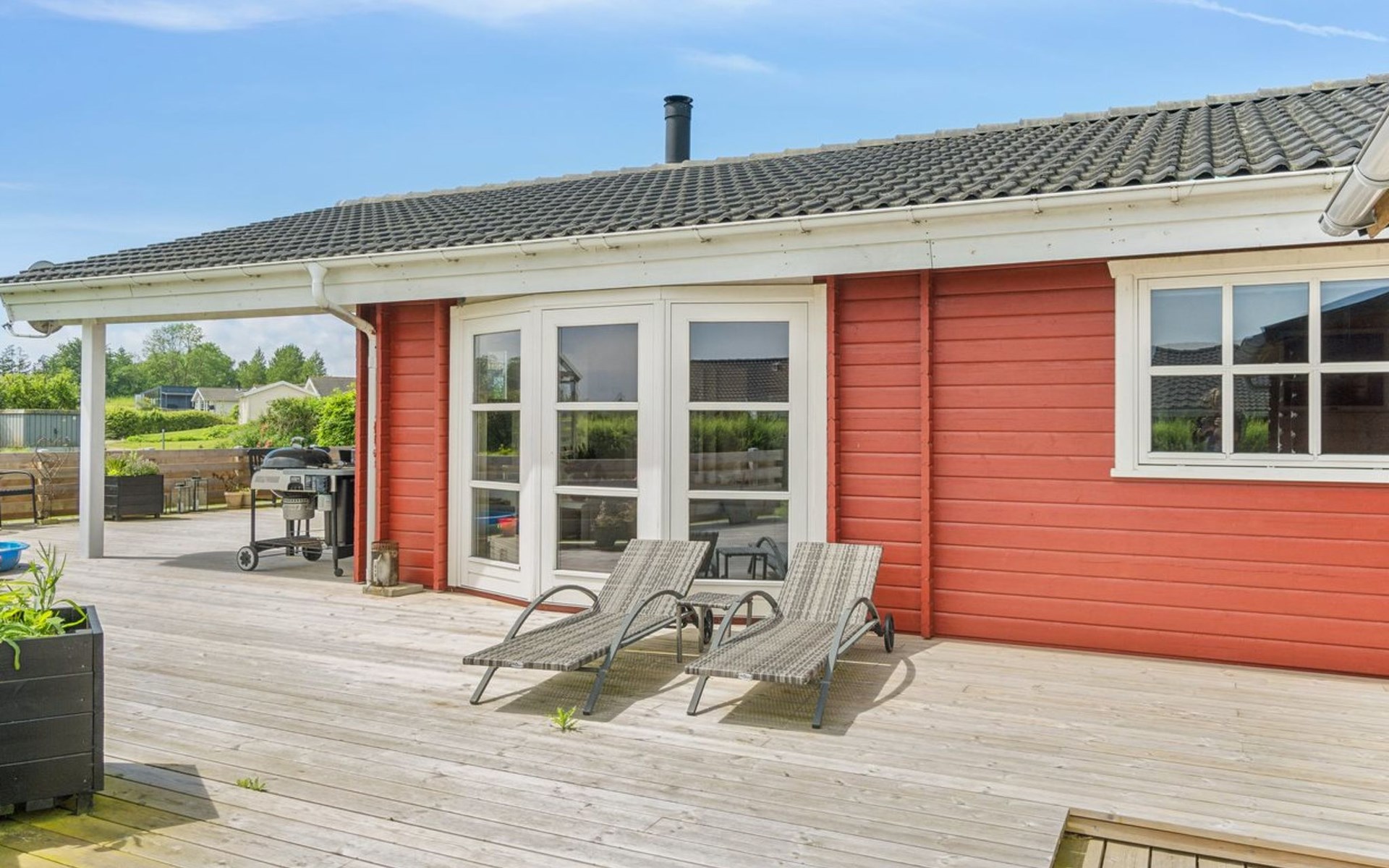 Eengezinswoning, bouwjaar 2007. 600 m van zee. Voor alleengebruik: terrein 1.180 m2, verzorgde tuin. Terras (85 m2), barbecue, kinderspeelplaats (glijbaan, schommel). In het huis: sauna, trampoline, wasmachine, droger. Parkeerplaats bij het huis. Oplaadstation. Levensmiddelenwinkel 850 m. Golfterrein 15 km. De eigenaar accepteert geen jeugdgroepen.