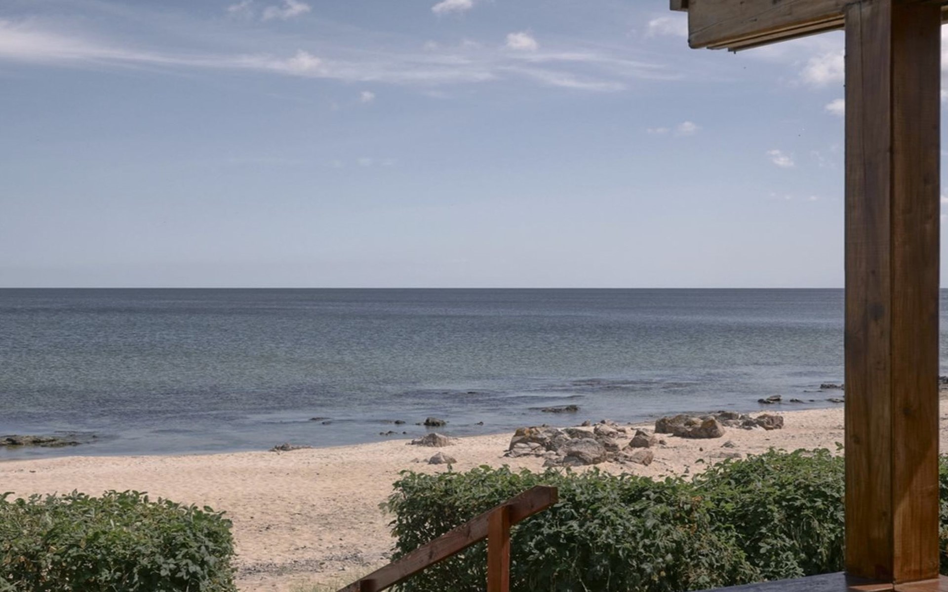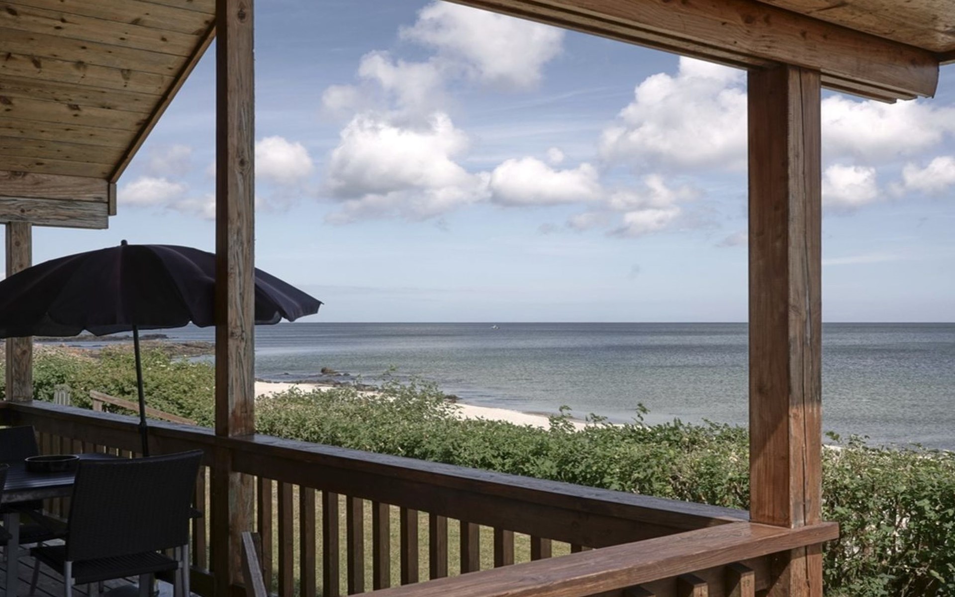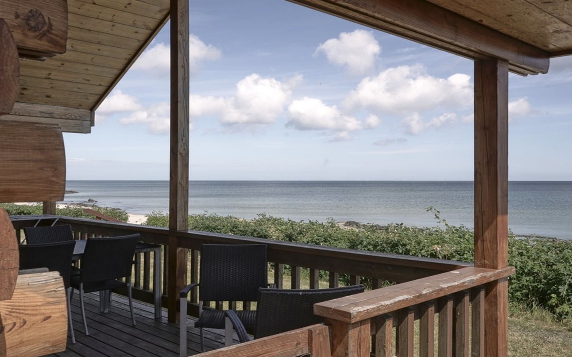 Eengezinswoning, bouwjaar 2009. 10 m van zee. Voor alleengebruik: wild terrein 200 m2. Barbecue, parkeerplaats bij het huis. Levensmiddelenwinkel 1 km. De eigenaar accepteert geen jeugdgroepen.