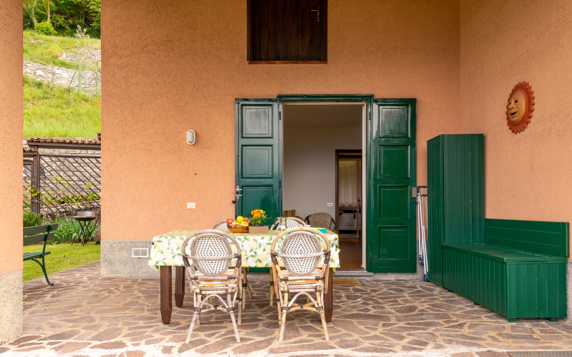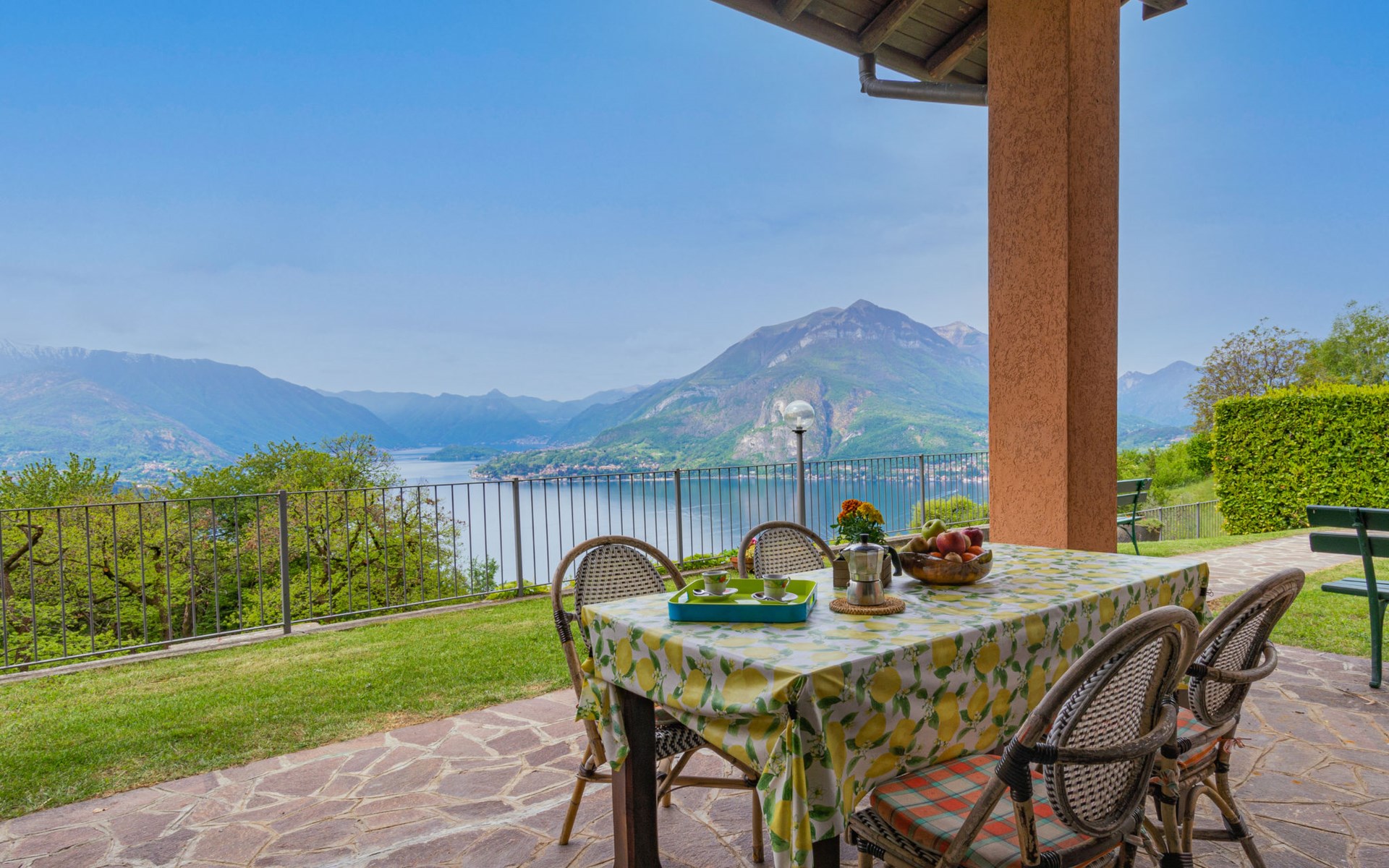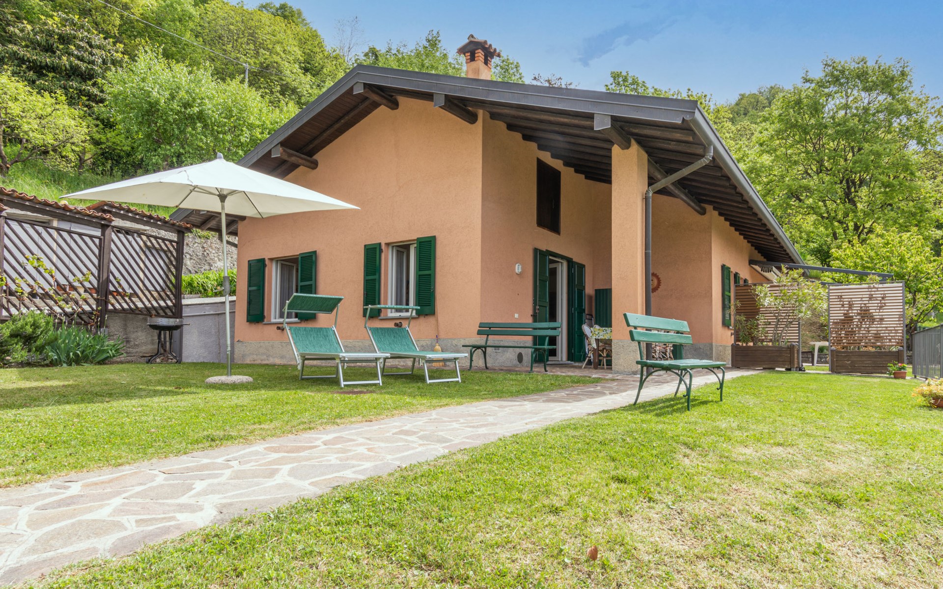 Twee onder één kap woning "Ronco", 600 m boven zeeniveau, eenzijdig aangebouwd. In de wijk Bologna, 5.2 km van het centrum van Varenna, 26 km van het centrum van Lecco, tegen een helling, 5 km van het meer, aan een doodlopende weg, te midden van groen. Voor medegebruik: terrein 10.000 m2 (omheind) met gazon en bomen, weide, boomgaard. 5 km lange rommelige, smalle toegangsweg (200 m onverharde weg). Winkel 2.7 km, supermarkt 8 km, bushalte 600 m, treinstation "Varenna" 5 km, kiezelstrand "Lido di Gittana" 5 km, grasstrand "Dervio" 13 km. Jachthaven 5 km, golfterrein (18 holes) 35 km. De eigenaar woont op hetzelfde terrein. Object referentie: IT2480.618.2 is gelegen op hetzelfde terrein.