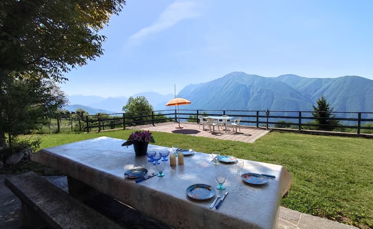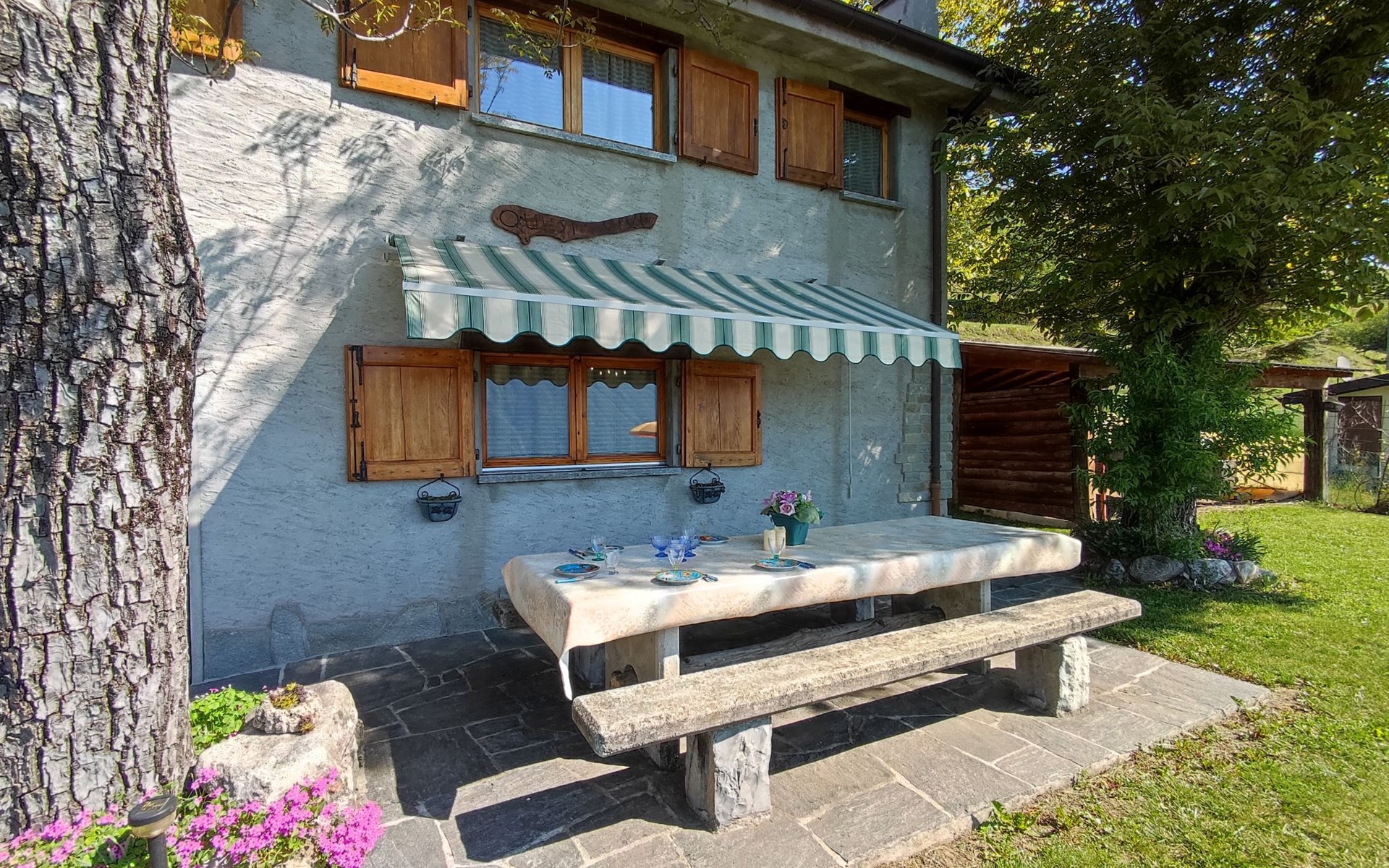 Rustieke chalet "Merlo", 900 m boven zeeniveau. Boven Corrido, in de wijk Monte di Ponte, 9 km van het centrum van Porlezza, 21 km van het centrum van Lugano, 51 km van het centrum van Como, tegen een helling, 9 km van het meer, te midden van groen. Voor alleengebruik: terrein 700 m2 (omheind) met planten en bomen, weide. 200 m lange rommelige, smalle toegangsweg tot aan het huis. Parkeerplaats op het terrein. Carport. Winkel 6 km, supermarkt 9 km, bushalte 4 km, treinstation "Lugano" 25 km, grasstrand "Porlezza" 9 km. Golfterrein (18 holes) 15 km. Bekende meren kunnen gemakkelijk worden bereikt: Lago di Piano, Lago di Como.