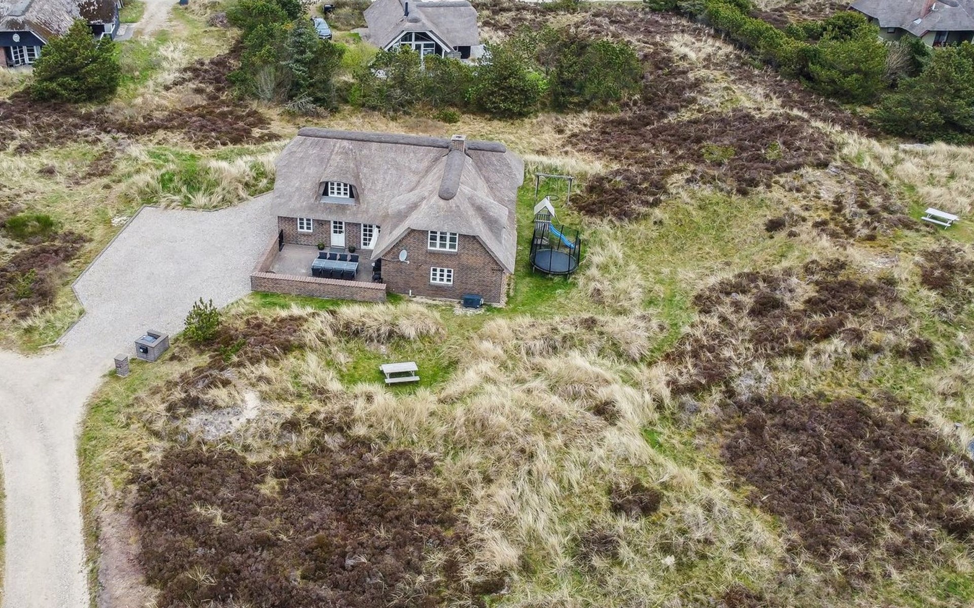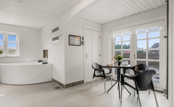 Eengezinswoning, bouwjaar 1992. 350 m van zee. Voor alleengebruik: wild terrein 2.500 m2, overdekt zwembad (3 x 6 m, 18 m2, 130 - 130 cm diepte). Terras (40 m2), barbecue, kinderspeelplaats (schommel). In het huis: sauna, tafelvoetbal, wasmachine, droger. Parkeerplaats bij het huis. Levensmiddelenwinkel 1.5 km. De eigenaar accepteert geen jeugdgroepen.