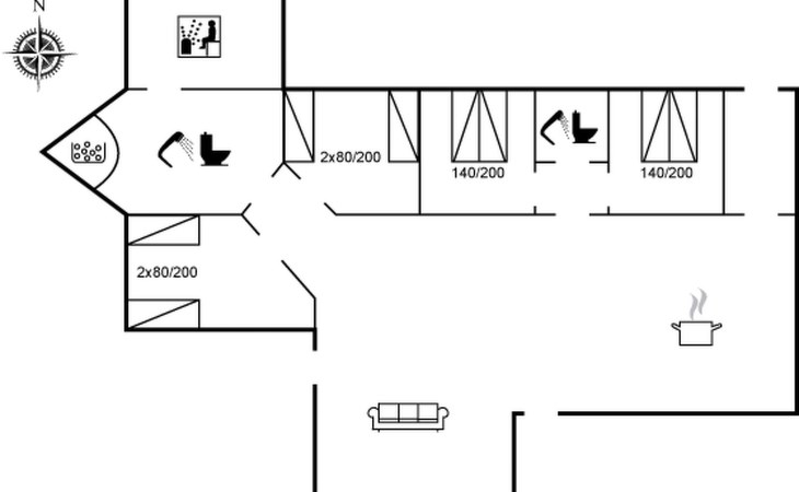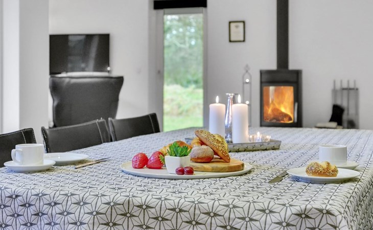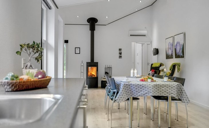 Vakantiedorp, bouwjaar 2012. 30 km van zee. Voor alleengebruik: wild terrein 850 m2. Barbecue, kinderspeelplaats (schommel). In het huis: sauna, wasmachine, droger. Parkeerplaats bij het huis. Levensmiddelenwinkel 2.1 km. Golfterrein 25 km. De eigenaar accepteert geen jeugdgroepen.