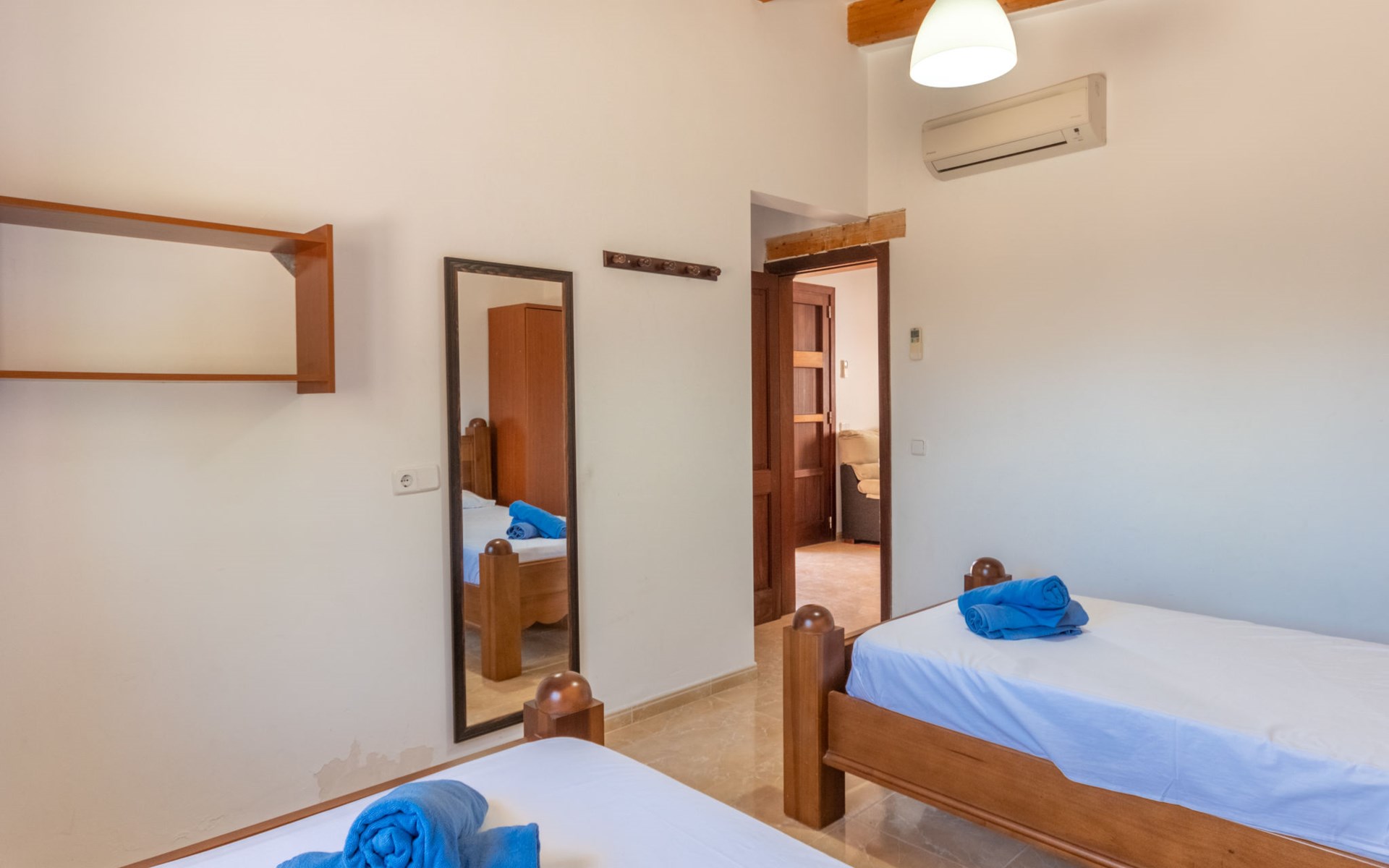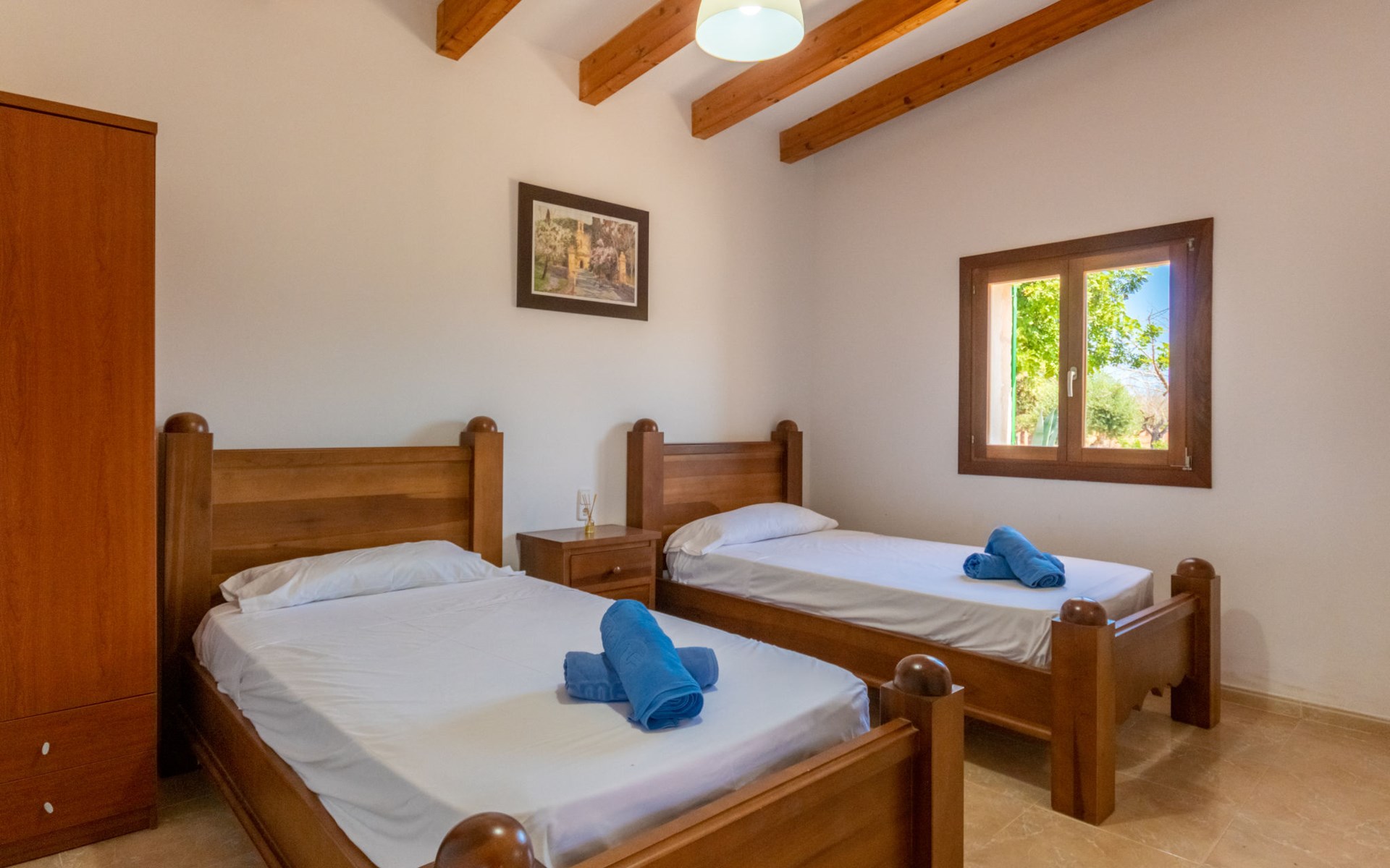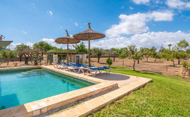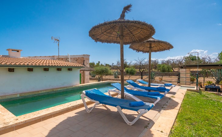 Rustieke, eenvoudig landgoed "Son Ulari Petit", omgeven door bomen en velden. 4 km van het centrum van Ca'n Picafort, 8 km van het centrum van Santa Margalida, 15 km van het centrum van Alcudia, 4 km van zee, te midden van groen. Voor alleengebruik: wild terrein 1.500 m2 (omheind) met bomen, boomgaard, ligweide, openluchtzwembad (verhoogd) hoekig (7 x 2 m, seizoensgebonden beschikbaarheid: 01.Jan. - 31.Dec.). Buitendouche, patio, barbecue. In het huis: internetaansluiting, Internet (WiFi), air-conditioning. Parkeerplaats op het terrein. Winkel 4 km, bushalte 3 km, zandstrand "Ca'n Picafort" 4 km. Auto noodzakelijk. Geschikt voor families, geschikt voor senioren baby uitrusting op aanvraag (incl.). Het objekt is geschikt voor 4 volwassenen. De eigenaar accepteert geen jeugdgroepen. Laden en lossen van de baggage is mogelijk bij het huis. Vliegveld 55 km van het huis.