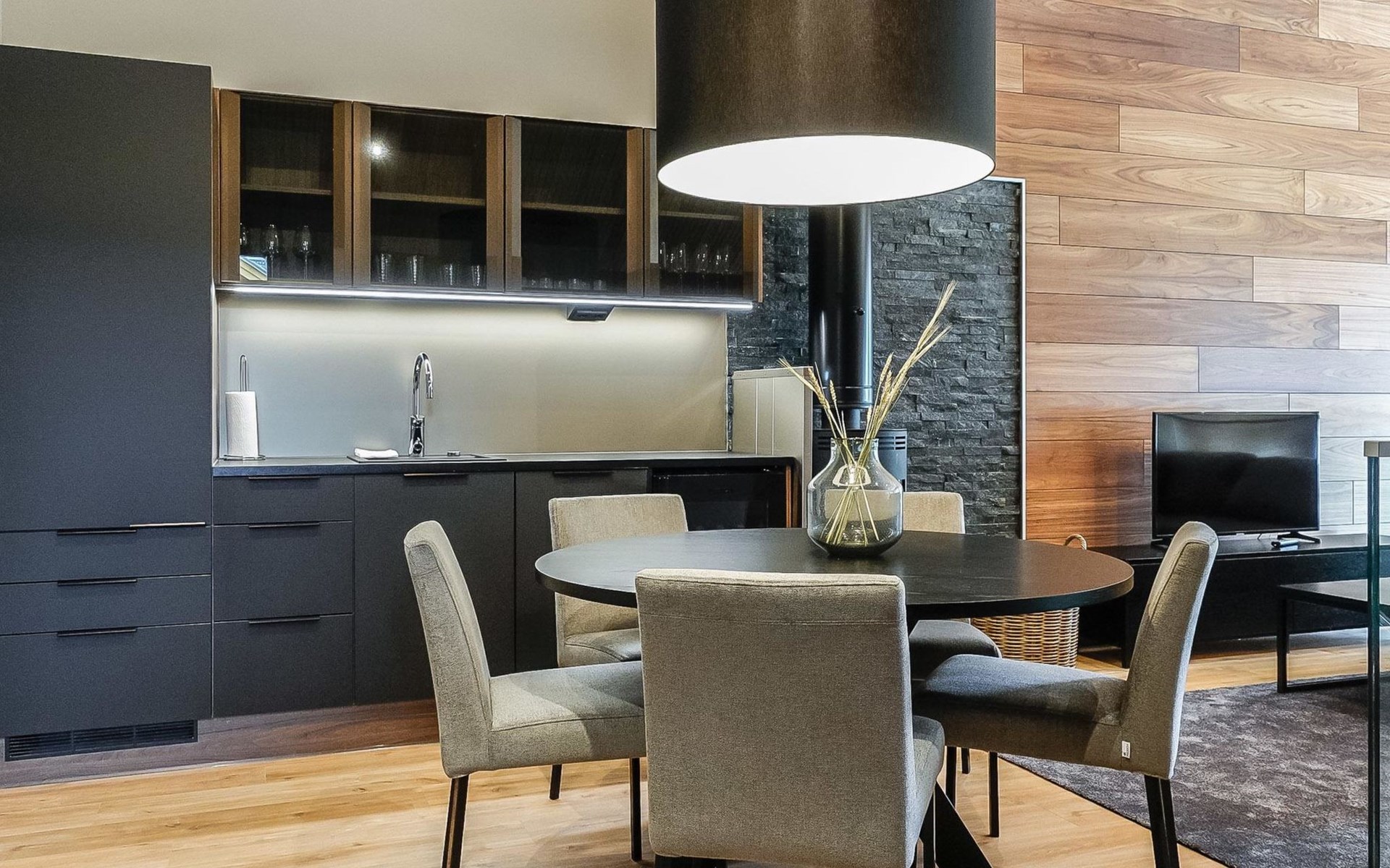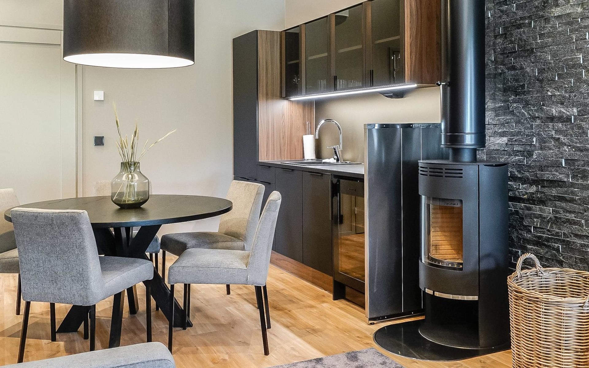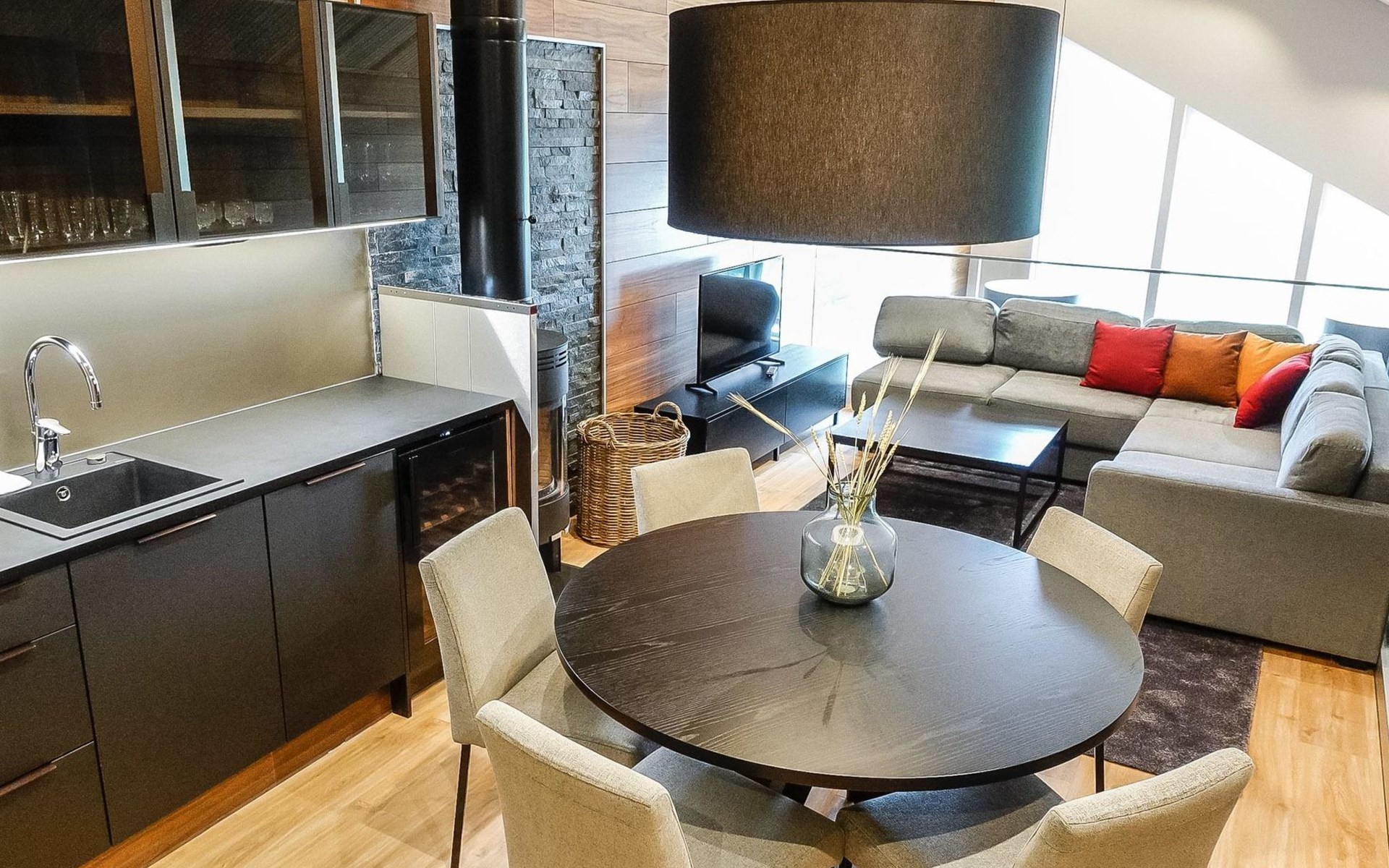 Apartment on fourth floor in Alpine-style stone house. There is an elevator in the house. The house is built in 2020.