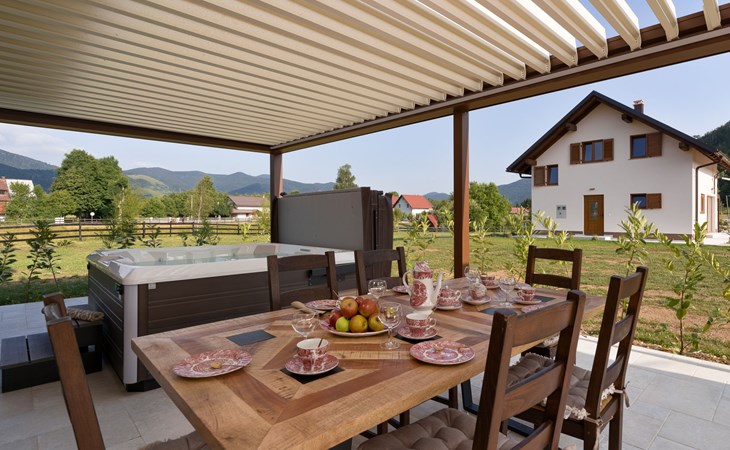 Lič 4 km van Fužine: Eengezinswoning "Mountain House Volta 1", van 2 verdiepingen, bouwjaar 2024. 800 m van het centrum van Lič, rustige, zonnige ligging, 27 km van zee, 4 km van het meer, te midden van groen. Voor medegebruik: terrein 3.000 m2 met gazon en planten. Voor alleengebruik: hot tub. In het huis: internetaansluiting, sauna, centrale verwarming. Toegangsweg tot aan het huis (500 m onverharde weg). Parkeerplaats (voor 2 auto's) bij het huis op het terrein. Winkel 700 m, restaurant 4.2 km, bushalte 4 km, treinstation 4 km, kiezelstrand 27 km, betonnen strand 27 km. Wandelroutes 500 m vanaf het huis, fietspad 550 m, ijsbaan 17 km. Attracties in de buurt: Cave Vrelo 6 km. Bekende meren kunnen gemakkelijk worden bereikt: Bajer 3 km. Vergelijkbare accommodaties kunnen worden geboekt. Object referentie: HR2938.304.1 is gelegen op hetzelfde terrein.