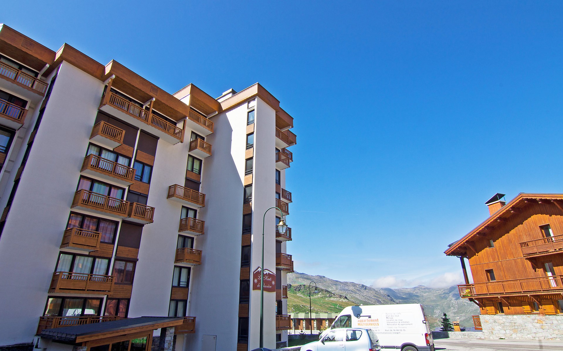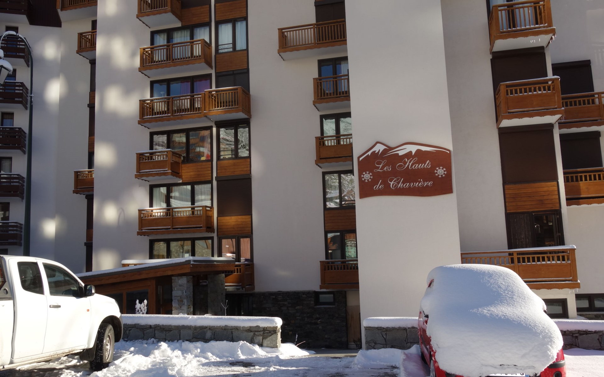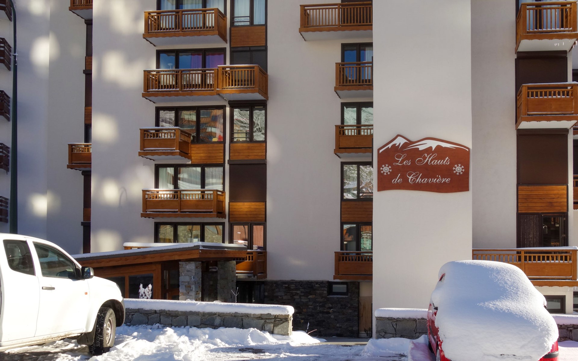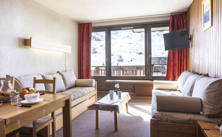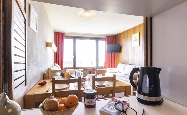 Residentie "Les Hauts de Chavière". Boven Val Thorens, in de wijk Peclet, rustige, zonnige ligging, 100 m van het skigebied, op het zuiden. In het complex: lift, berging voor ski's, centrale verwarming. In de winter sneeuwkettingen aanbevolen. Openbare parkeergarage op 300 m, extra. Winkel, levensmiddelenwinkel, supermarkt 100 m, winkelcentrum 500 m, restaurant 100 m, bar 200 m, bakkerij 650 m, voetgangersgebied 500 m, centrum te voet bereikbaar in 5 minuten, bushalte 800 m. Sportcentrum 650 m, kabelbaan, stoeltjeslift, kabelbaan op, skipisten, skiverhuur 50 m, skibushalte 60 m, skischool 150 m, kinderoppasdienst, ijsbaan 50 m.