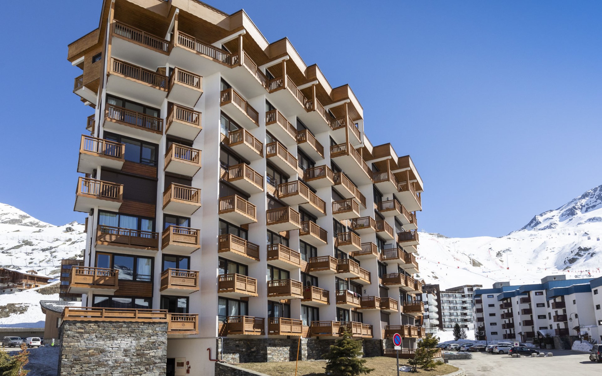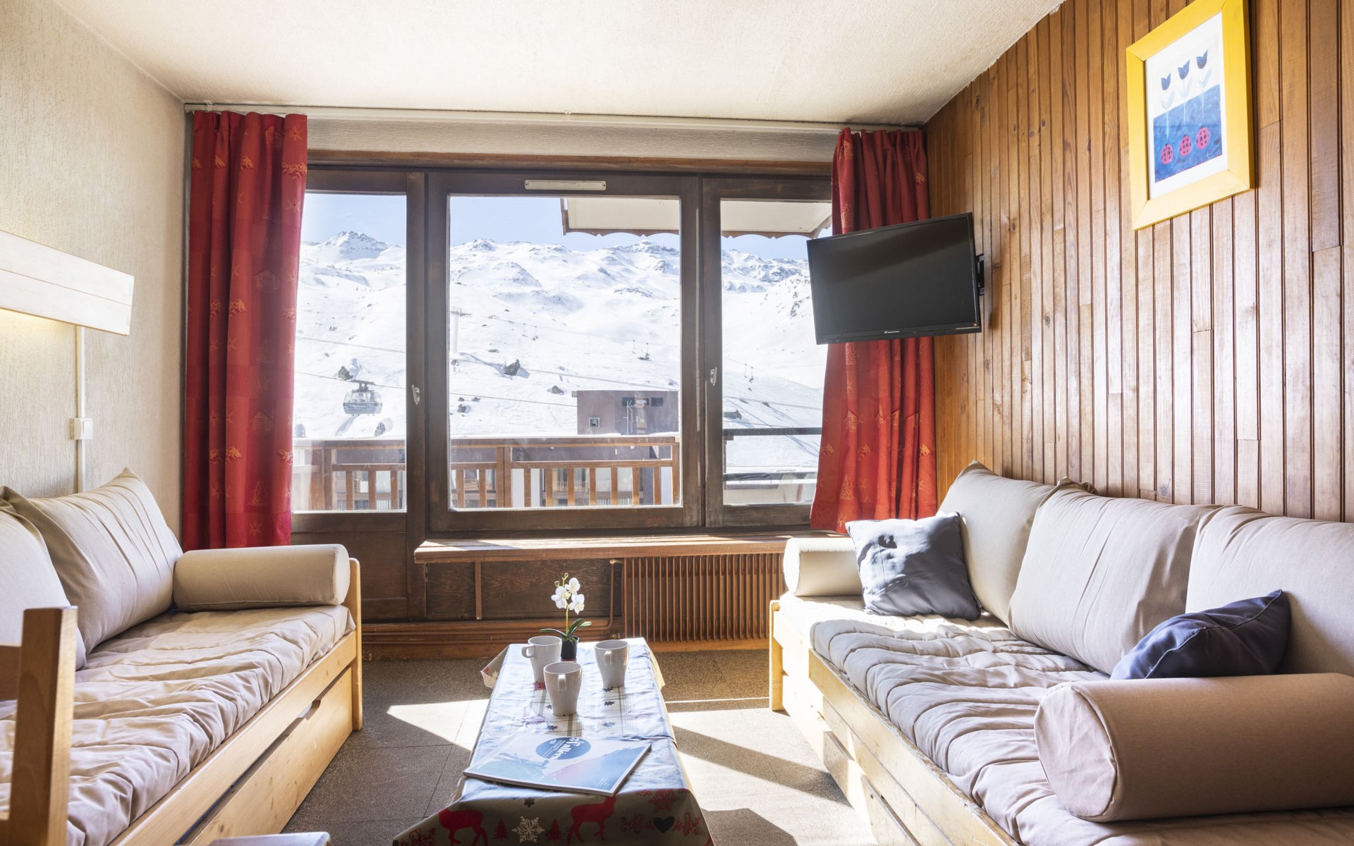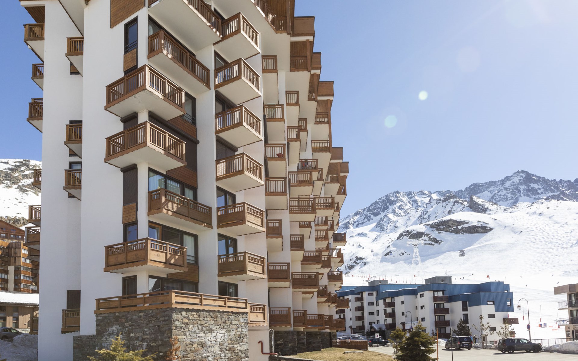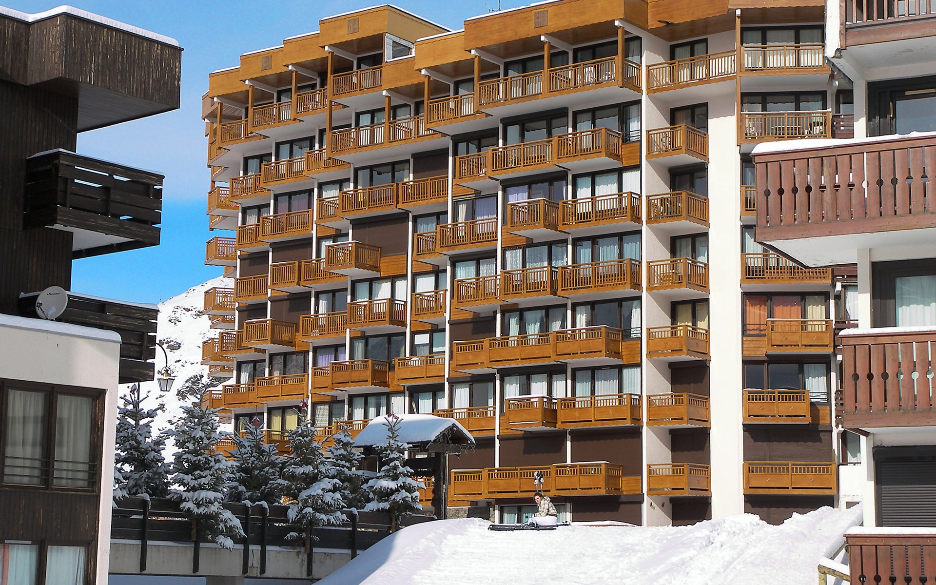 Residentie "Les Hauts de Chavière". Boven Val Thorens, in de wijk Peclet, rustige, zonnige ligging, 100 m van het skigebied, op het zuiden. In het complex: lift, berging voor ski's, centrale verwarming. In de winter sneeuwkettingen aanbevolen. Openbare parkeergarage op 300 m, extra. Winkel, levensmiddelenwinkel, supermarkt 100 m, winkelcentrum 500 m, restaurant 100 m, bar 200 m, bakkerij 650 m, voetgangersgebied 500 m, centrum te voet bereikbaar in 5 minuten, bushalte 800 m. Sportcentrum 650 m, kabelbaan, stoeltjeslift, kabelbaan op, skipisten, skiverhuur 50 m, skibushalte 60 m, skischool 150 m, kinderoppasdienst, ijsbaan 50 m.