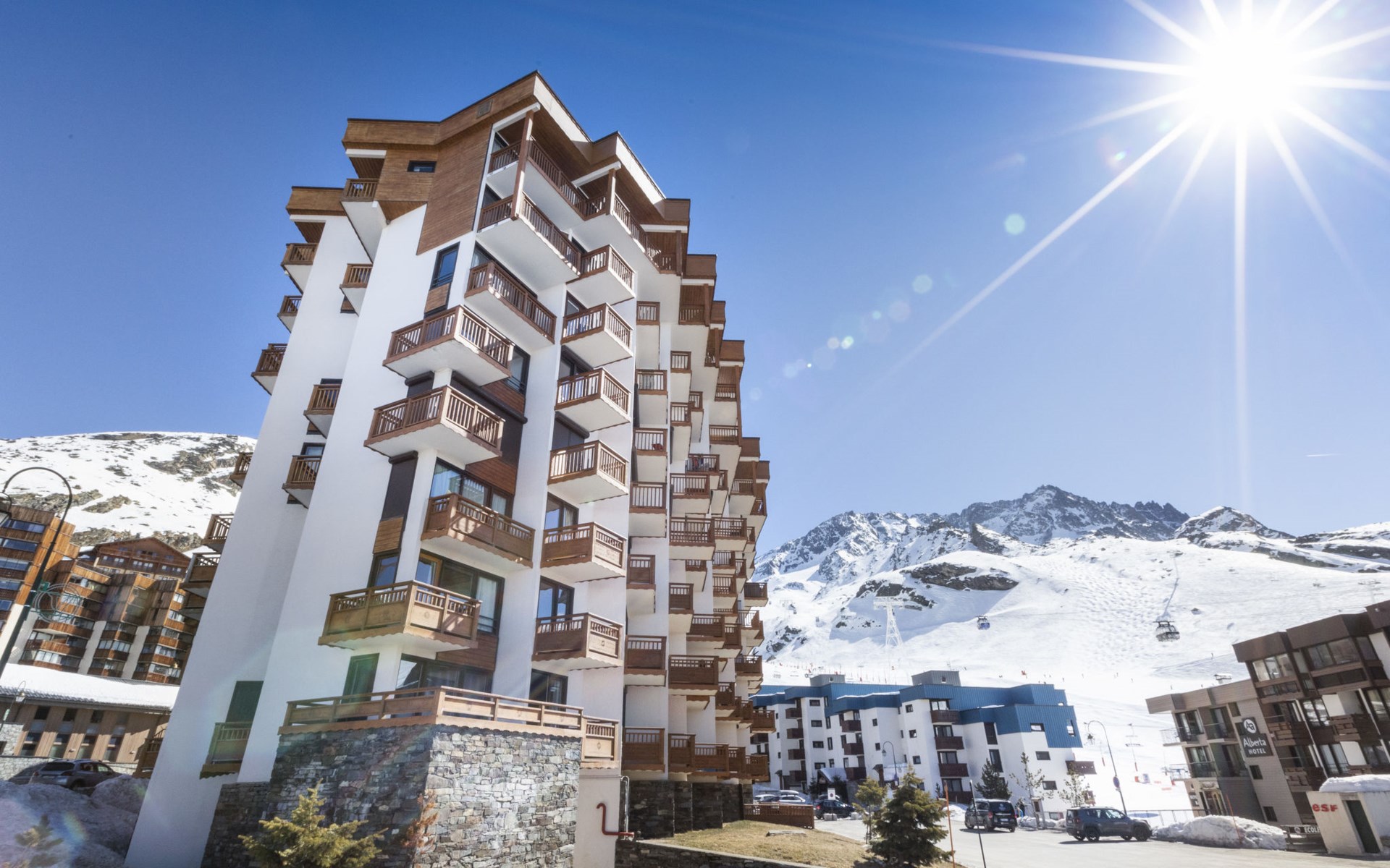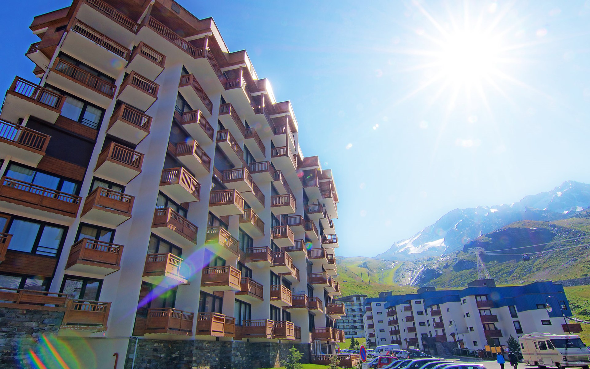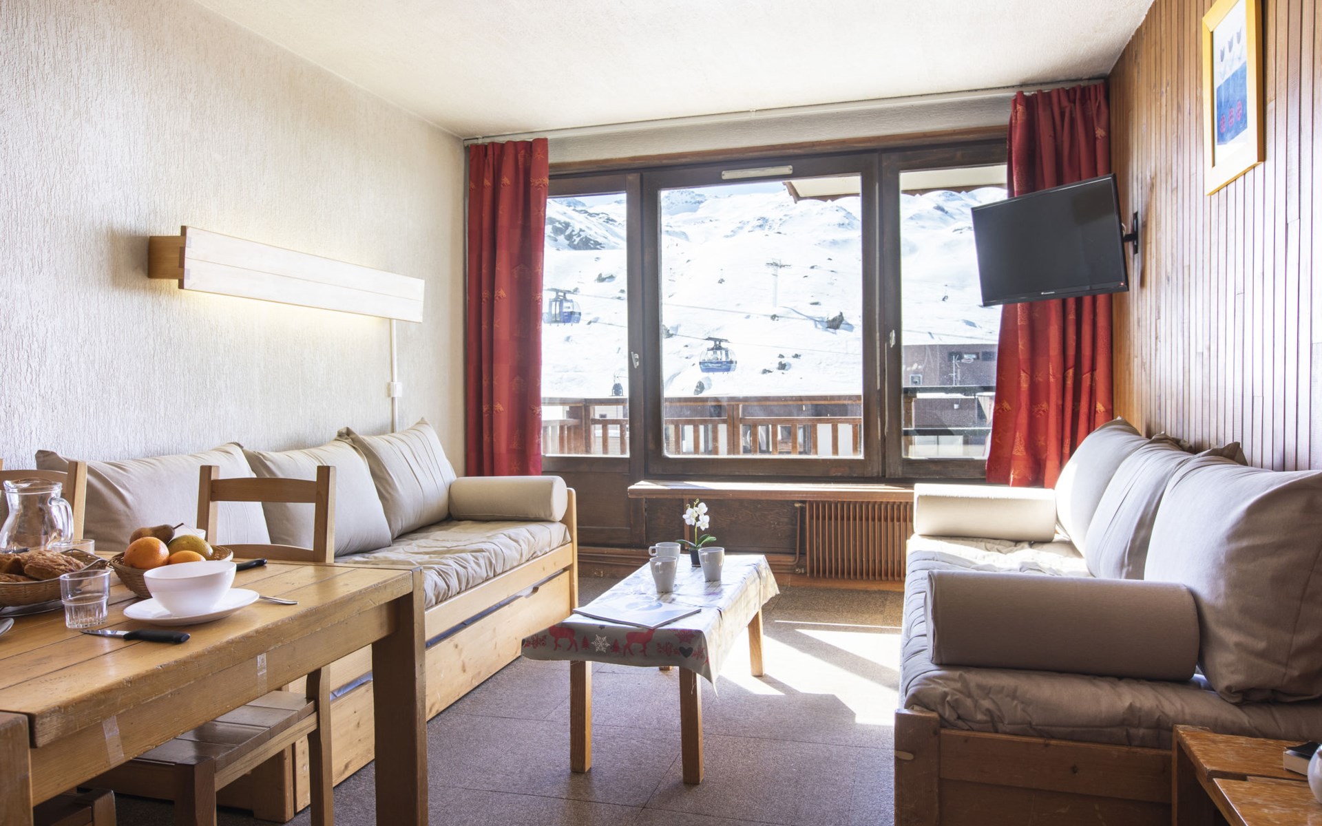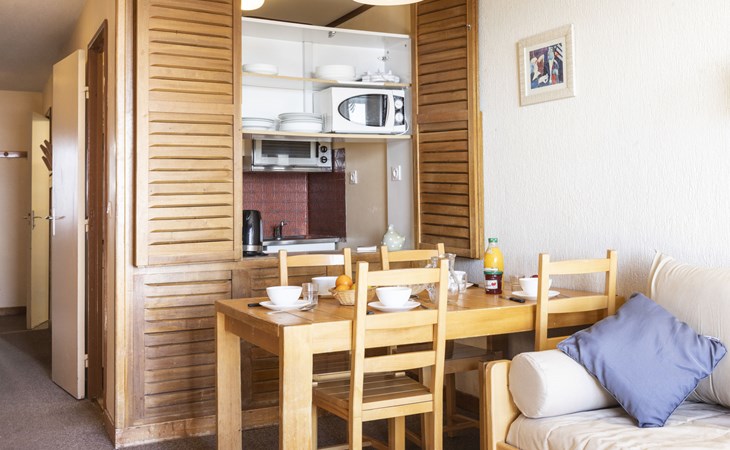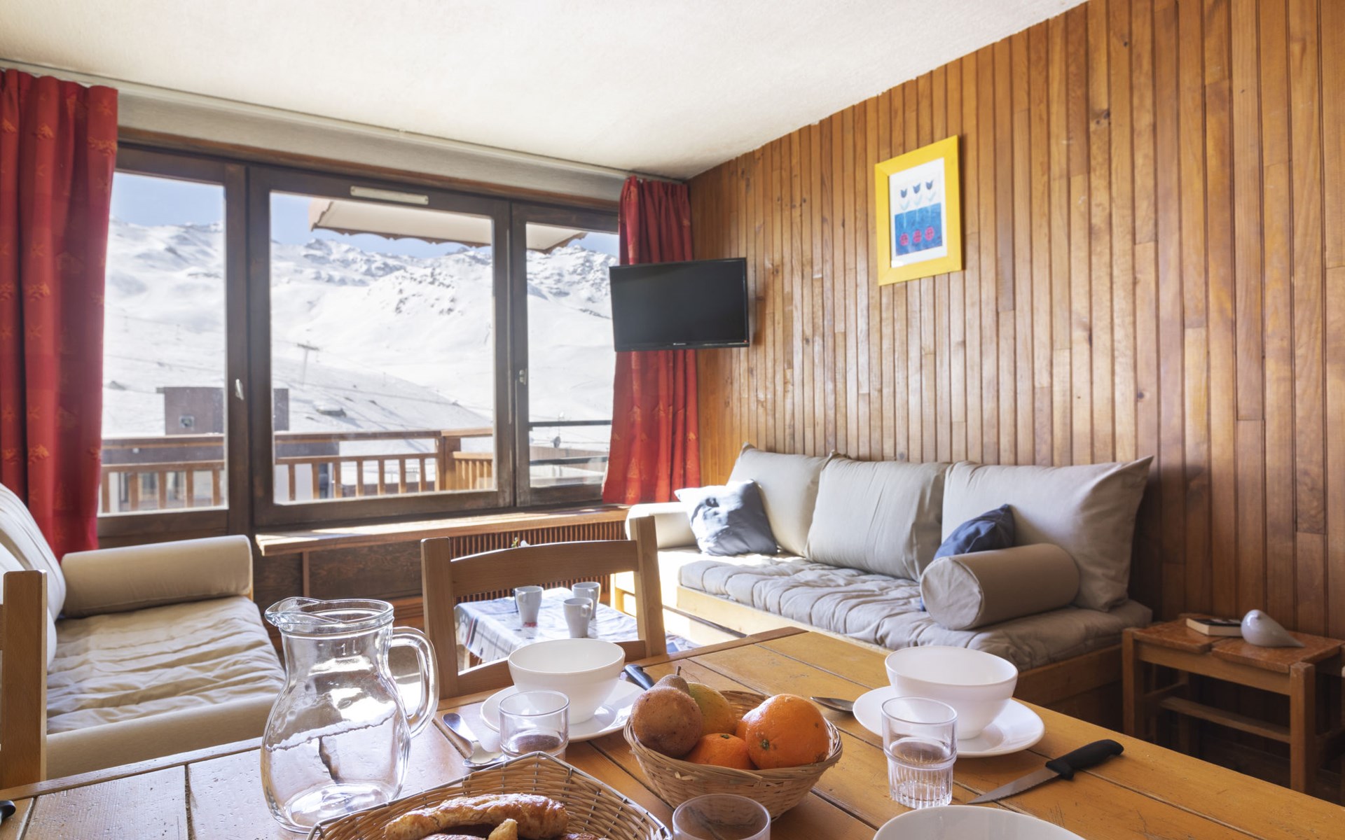 Residentie "Les Hauts de Chavière". Boven Val Thorens, in de wijk Peclet, rustige, zonnige ligging, 100 m van het skigebied, op het zuiden. In het complex: lift, berging voor ski's, centrale verwarming. In de winter sneeuwkettingen aanbevolen. Openbare parkeergarage op 300 m, extra. Winkel, levensmiddelenwinkel, supermarkt 100 m, winkelcentrum 500 m, restaurant 100 m, bar 200 m, bakkerij 650 m, voetgangersgebied 500 m, centrum te voet bereikbaar in 5 minuten, bushalte 800 m. Sportcentrum 650 m, kabelbaan, stoeltjeslift, kabelbaan op, skipisten, skiverhuur 50 m, skibushalte 60 m, skischool 150 m, kinderoppasdienst, ijsbaan 50 m.