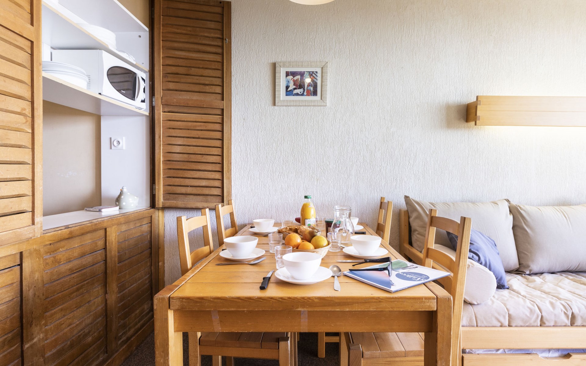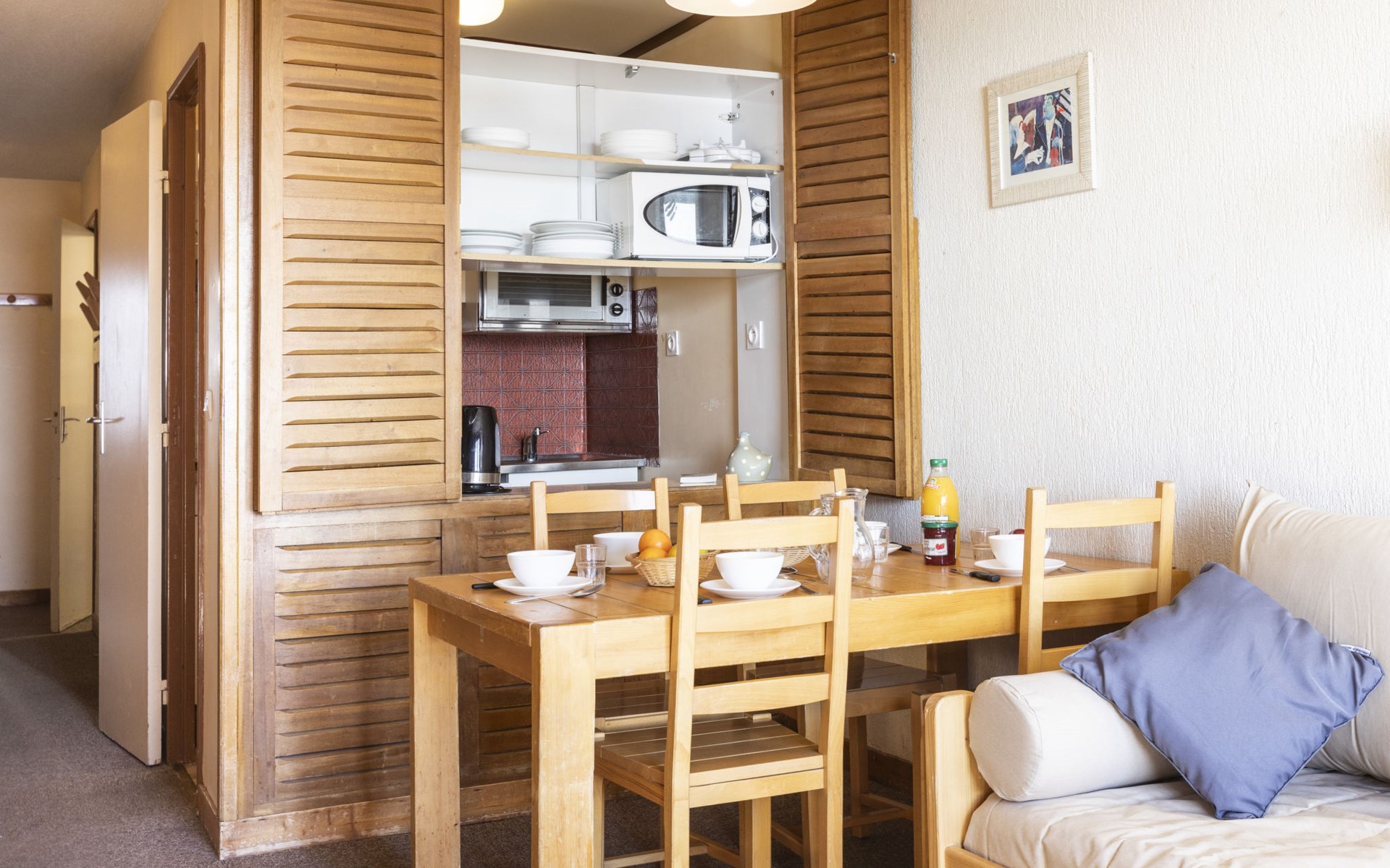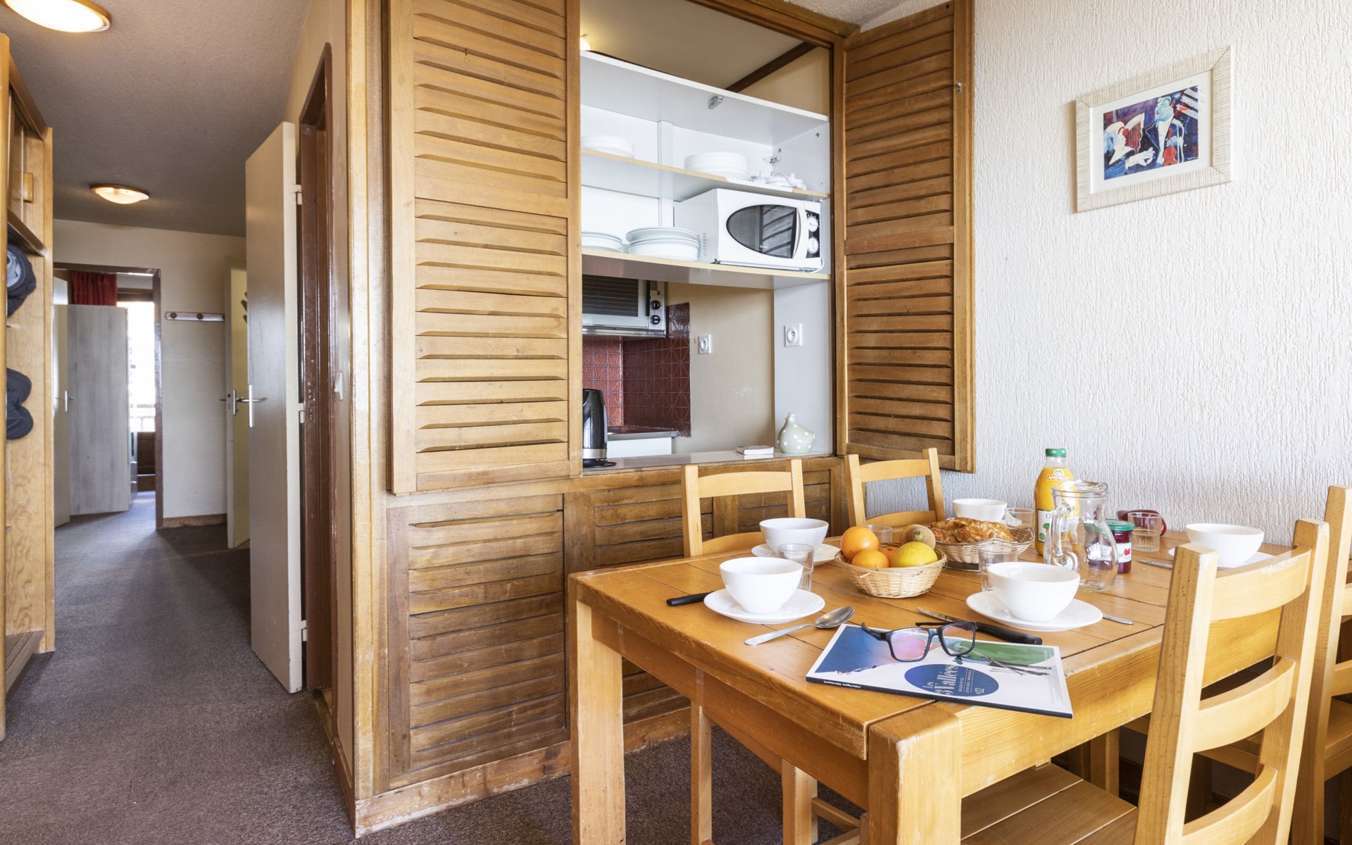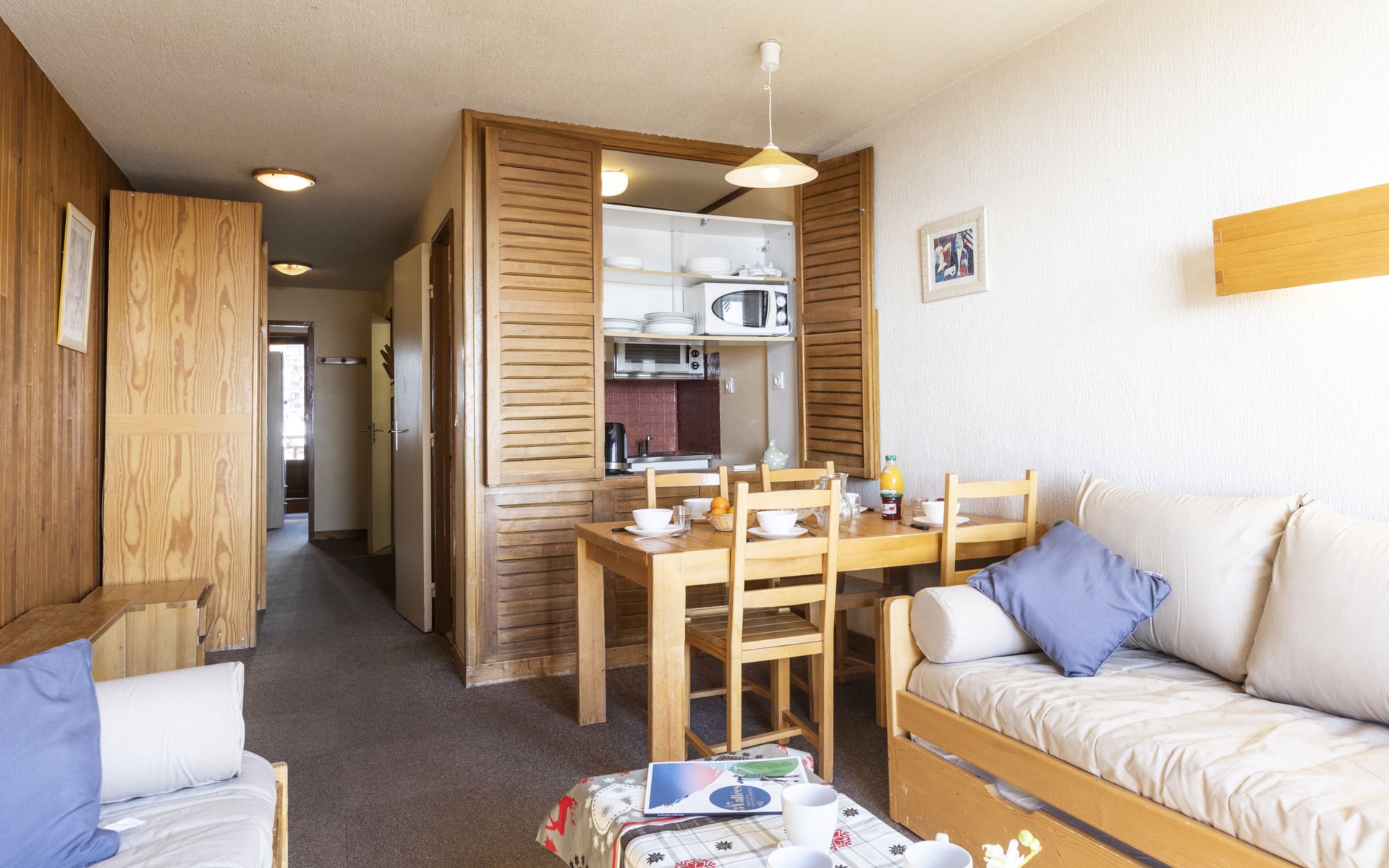 Residentie "Les Hauts de Chavière". Boven Val Thorens, in de wijk Peclet, rustige, zonnige ligging, 100 m van het skigebied, op het zuiden. In het complex: lift, berging voor ski's, centrale verwarming. In de winter sneeuwkettingen aanbevolen. Openbare parkeergarage op 300 m, extra. Winkel, levensmiddelenwinkel, supermarkt 100 m, winkelcentrum 500 m, restaurant 100 m, bar 200 m, bakkerij 650 m, voetgangersgebied 500 m, centrum te voet bereikbaar in 5 minuten, bushalte 800 m. Sportcentrum 650 m, kabelbaan, stoeltjeslift, kabelbaan op, skipisten, skiverhuur 50 m, skibushalte 60 m, skischool 150 m, kinderoppasdienst, ijsbaan 50 m.