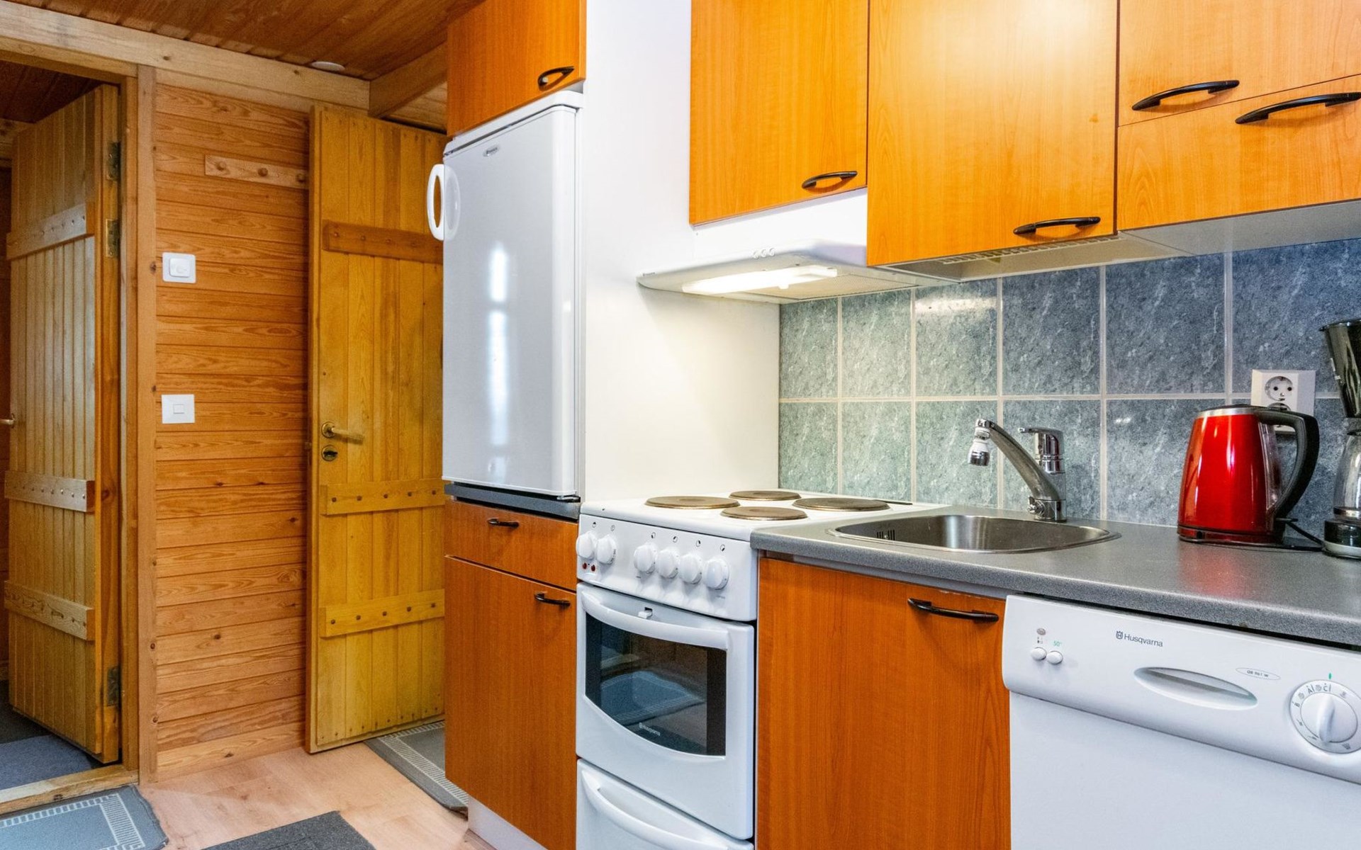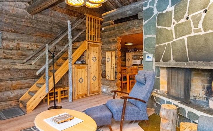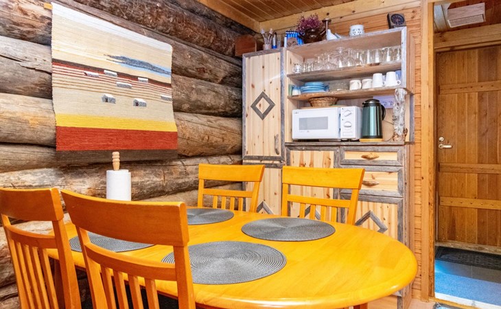 The cottage also has a well-equipped kitchen, and the dining area is located opposite the kitchenette.