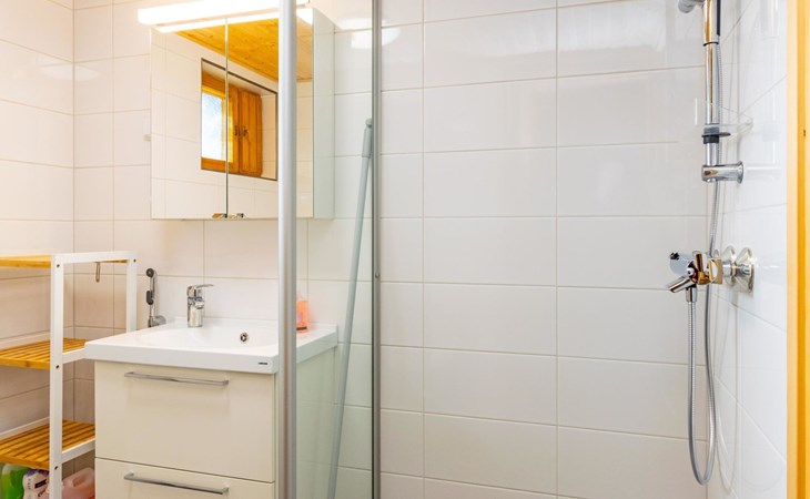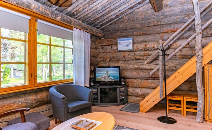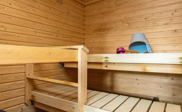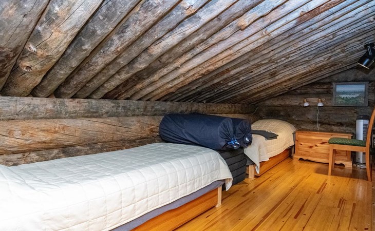 There is a double sofa bed on the entrance floor. The low loft (maximum height 170 cm) has double bed (140 cm), one trunk bed and superlon mattresses for a refreshing night's sleep.