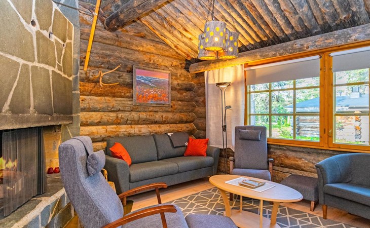 In the open-air living room you can enjoy the warmth of the fireplace.