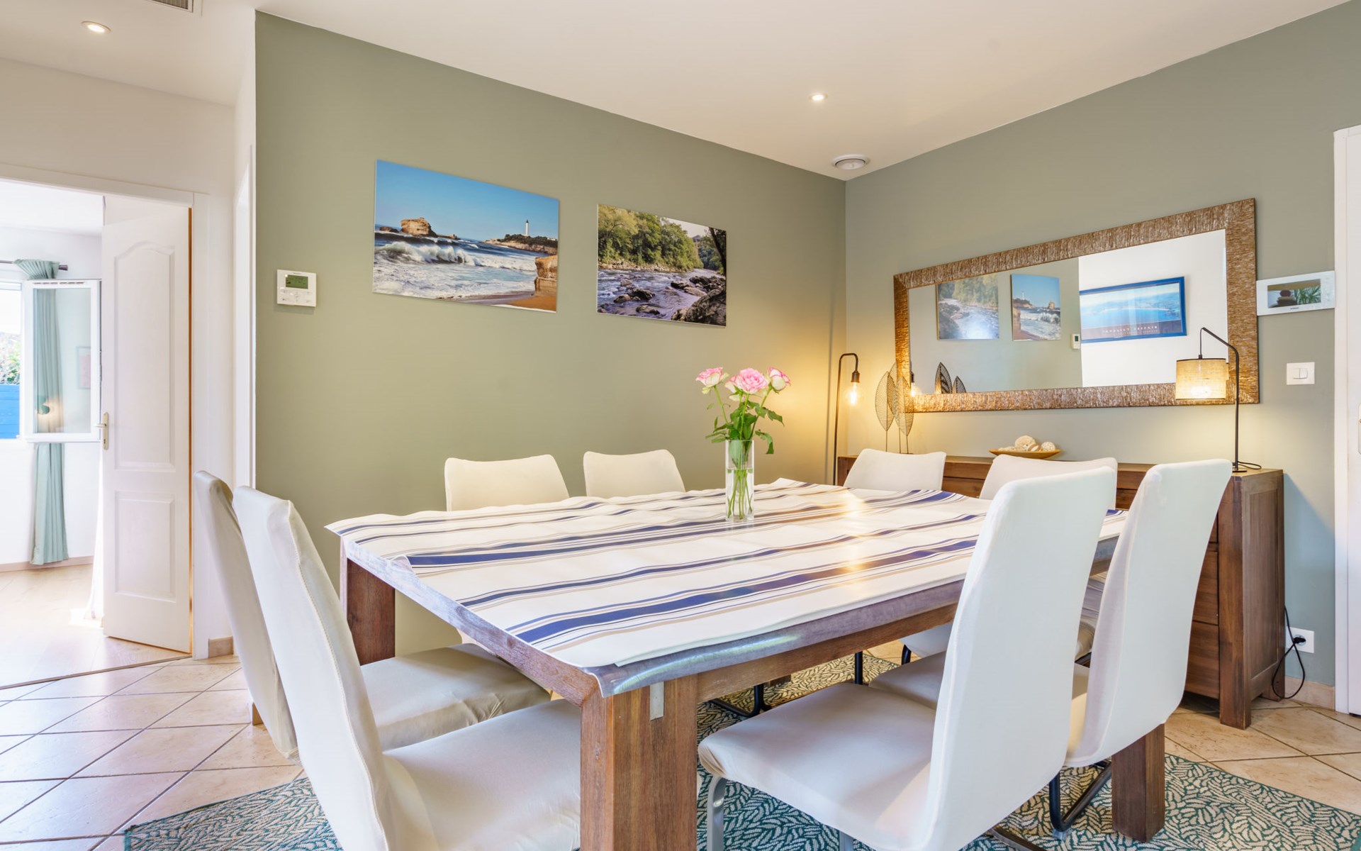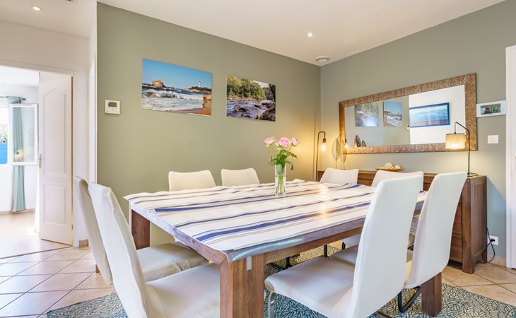 Eengezinswoning "Lore Landa". In de wijk Lore Landa, in een woonwijk, 6.2 km van zee, 6.2 km van het strand. Voor alleengebruik: verzorgde tuin 1.000 m2 (omheind), openluchtzwembad hoekig (8 x 4 m, 140 cm diepte, seizoensgebonden beschikbaarheid: 01.Jul. - 31.Aug.) met trap en oprolbaar afdekscherm. Glijbaan, tafeltennis, onderhoud zwembad door de eigenaar/tuinman. Winkel 2.5 km, levensmiddelenwinkel 2.5 km, supermarkt 3.3 km, winkelcentrum 4.8 km, restaurant 2.5 km, bar 2.5 km, bakkerij 2.5 km, café 2.5 km, fietsverhuur 4.2 km, bushalte "Lore Landa" 500 m, zandstrand "Uhabia" 6.2 km. Golfterrein (9 holes) 5.2 km, surfschool 6.2 km, tennis 5.7 km, tennishal 5.7 km, manege 4.8 km. Attracties in de buurt: Moulin de Bassilour 2.7 km, Bida'Parc 6.2 km, Cité de l'Ocean 6.8 km, Port de Guéthary 7.3 km, Musée Saraleguinea 7.6 km, Musée de la Mer 7.7 km. Wandelgebied La Rhune 22 km. De eigenaar accepteert geen jeugdgroepen. De sleuteloverdracht vindt plaats bij het agentschap Interhome in Bidart, 7 km. Autobaan 200 m van het huis.