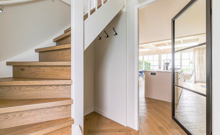 Stap binnen in de moderne en sfeervol ingerichte woonkamer van de Notariswoning Deluxe. Geniet van ultiem comfort op de hoekbank en drie stijlvolle fauteuils. De ruime eetkamer is voorzien van een gezellige eettafel met comfortabele stoelen, perfect voor lange, gezellige diners. Begin de dag oa. met een heerlijke kop koffie uit het bonen koffiezetapparaat, de keuken met zijn kookeiland is van alle gemakken voorzien met oa. inductiekookplaat, vaatwasser en een ingebouwde combimagnetron. Via de openslaande tuindeuren stapt u zo het terras op, compleet met tuinmeubilair, ideaal voor ontspannen buitenmomenten. De woning beschikt over een indrukwekkende glazen pui aan de achterkant, die een prachtig, panoramisch uitzicht biedt op het Veluwemeer. Het hele jaar door kunt u vanuit de woonkamer genieten van dit adembenemende landschap.
