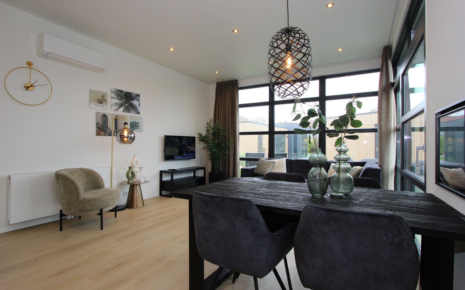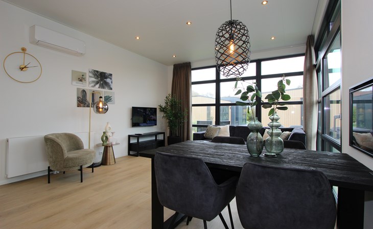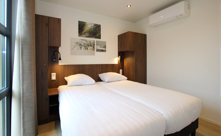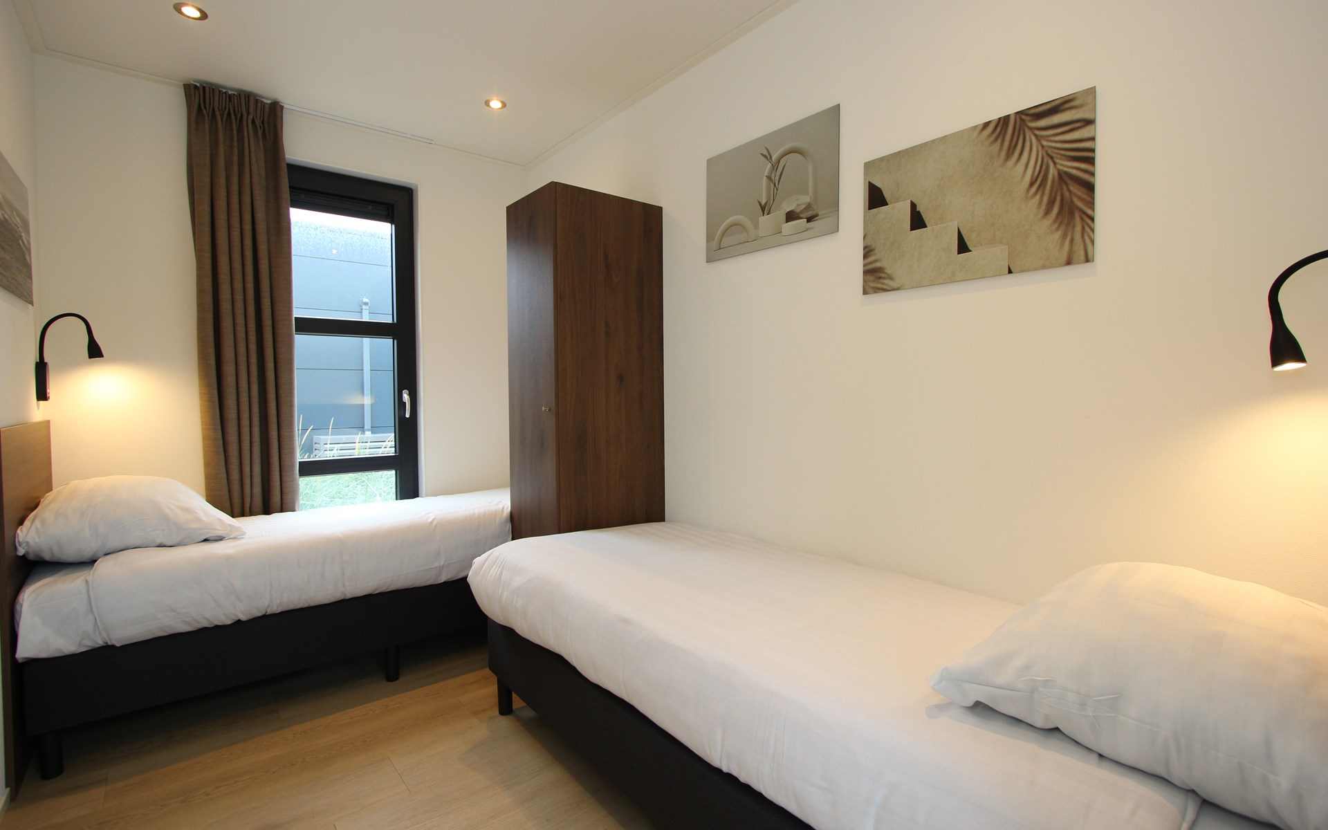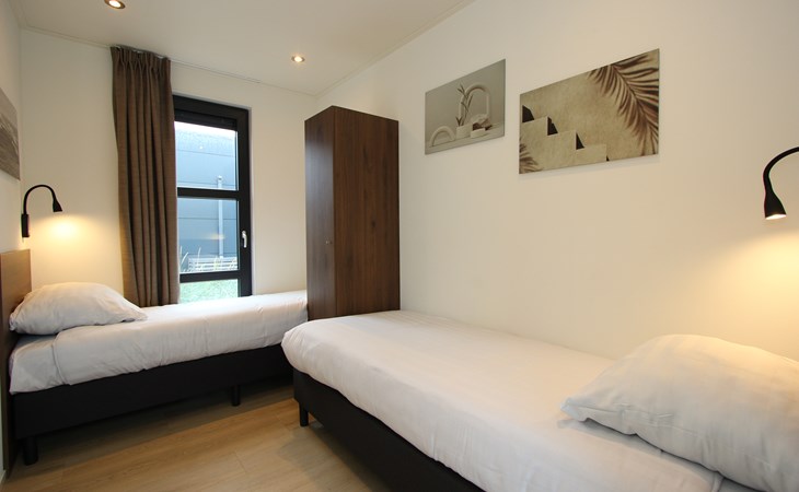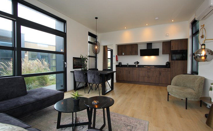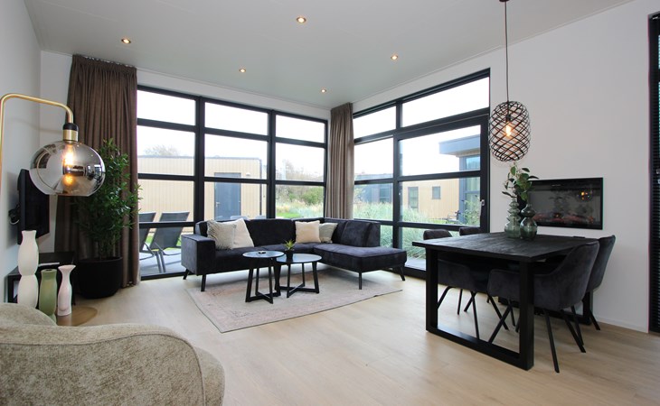 Cube Exclusif 4 is een 4-persoons vakantiewoning gelegen in een prachtige buitenomgeving van duinen, strand en de zee. De grote raampartijen in de woonkamer geven je echt het gevoel één te zijn met de natuur. De woonkamer is ingericht met een loungehoek met een tafel, bank en fauteuils. Daarachter bevindt zich de eettafel met stoelen en moderne open keuken. De keuken is van alle gemakken voorzien, denk aan een vaatwasser, inbouwkoelkast met vriezer, gasstel en rvs spoelbak. Via de hal achter de keuken kom je bij de twee slaapkamers en in de hal is een apart toilet. Beide slaapkamers hebben voldoende kastruimte en een slaapkamer heeft een tweepersoonsbed en de andere slaapkamer twee eenpersoonsbedden. Beide slaapkamers hebben een deur naar dezelfde badkamer. De badkamer bestaat uit een wastafel met fontein en ruime douchecabine. De auto kun je parkeren op de algemene parkeerplaats aan het begin van het vakantiepark. Je kunt verbinding maken met de gratis Wi-Fi.