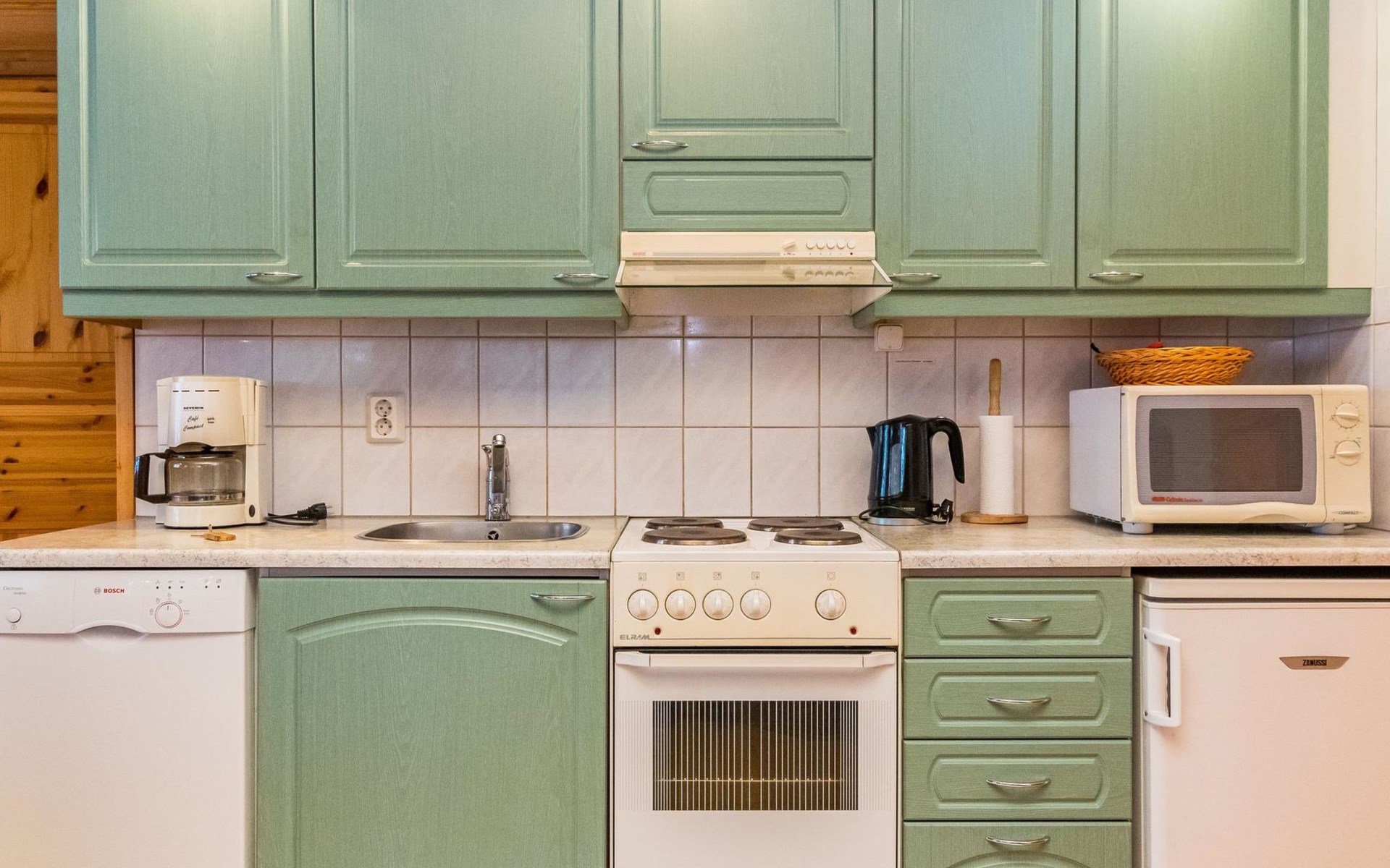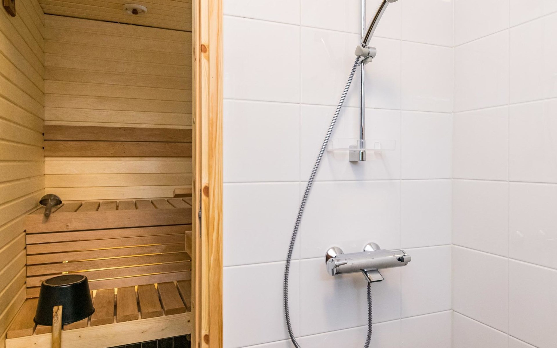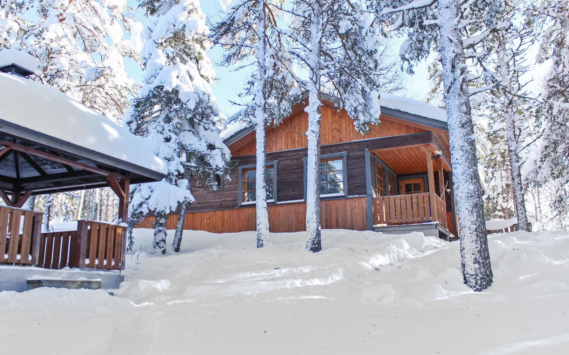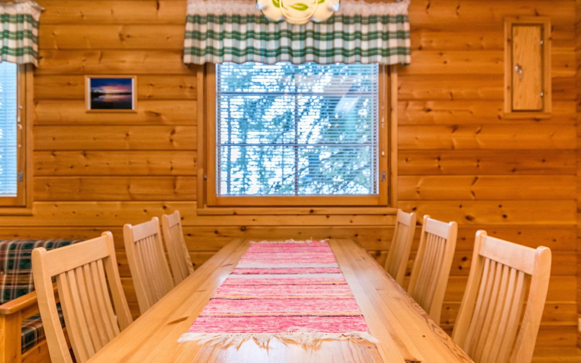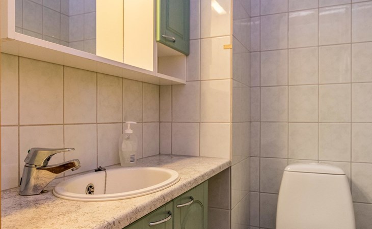 Log cottage, built in 1997 (extension and renovation made in 2005, sauna and washroom renovated 2020), bedroom 1: double bed, bedroom 2: 2 beds, 1 bunk bed (loft): 2 beds. Combined kitchen and living room, electric sauna.