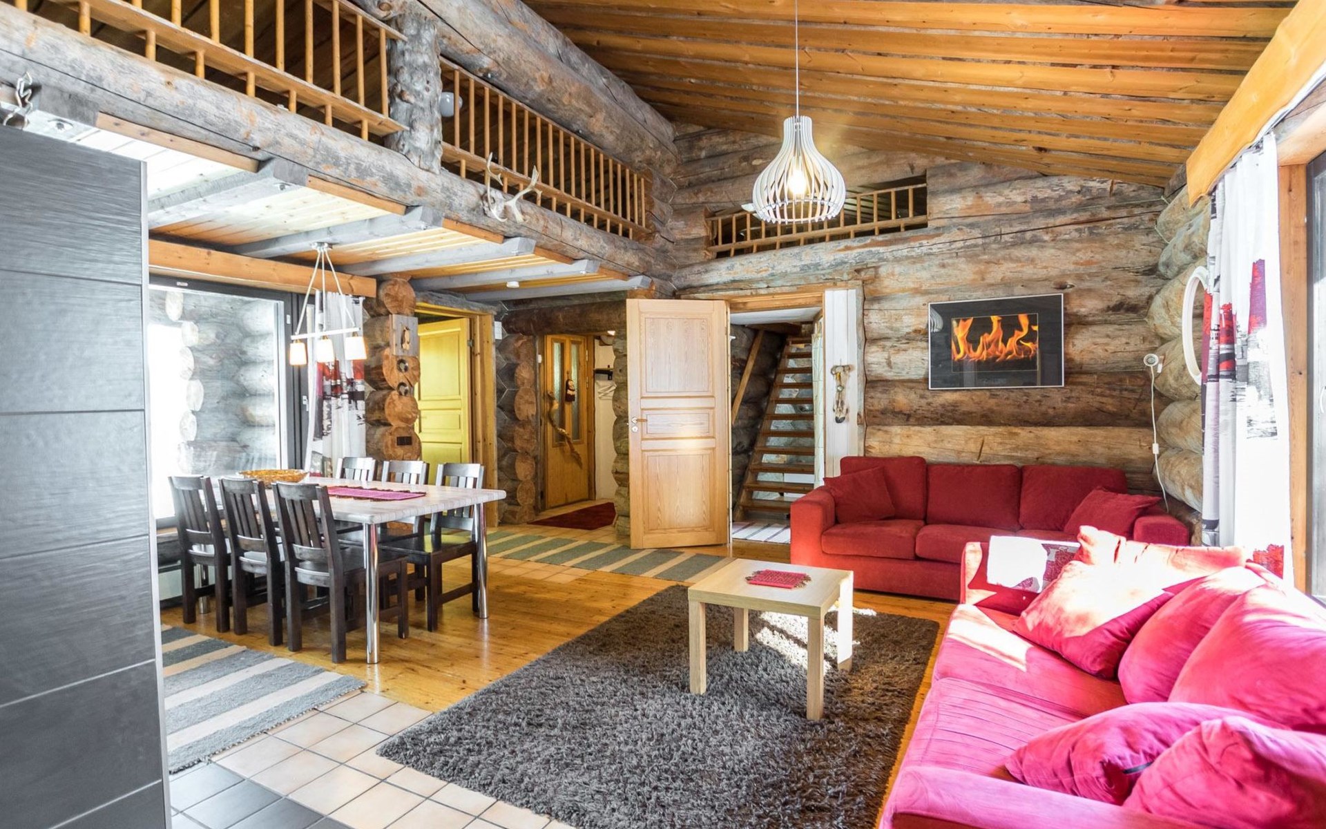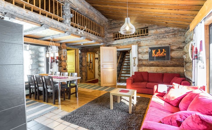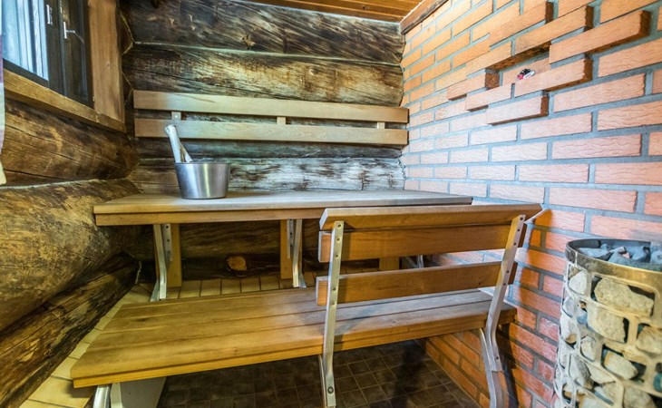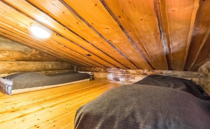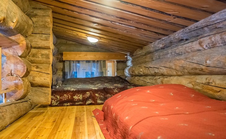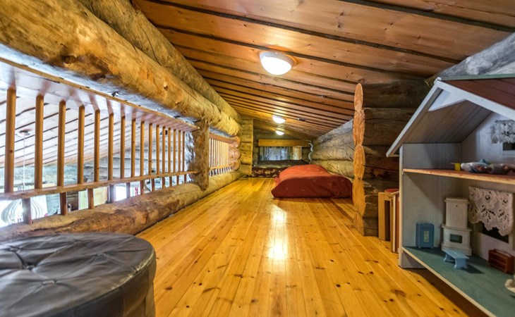 Log cottage, built in 1988. 2 bedrooms: one with double bed, another with 2 beds. Loft: 1 bed + 6 mattresses, combined kitchen/living room, electric sauna. Downstairs 96 m², loft 35 m².