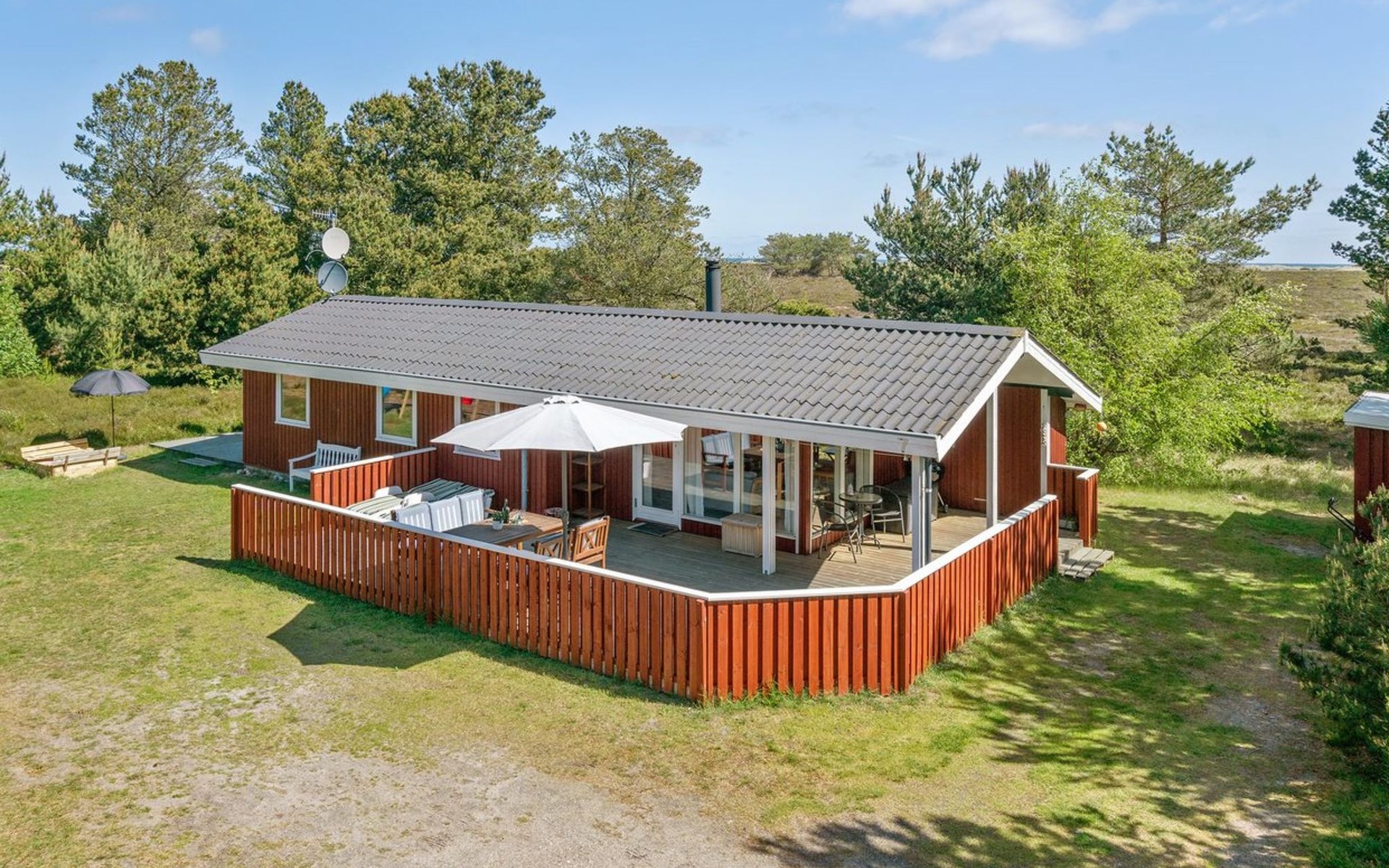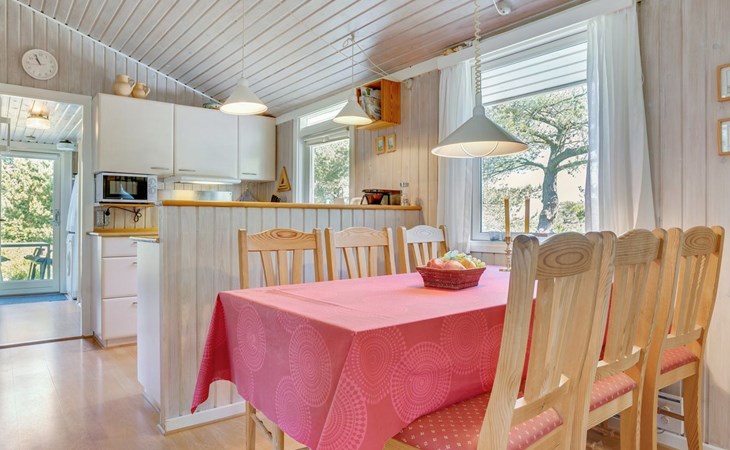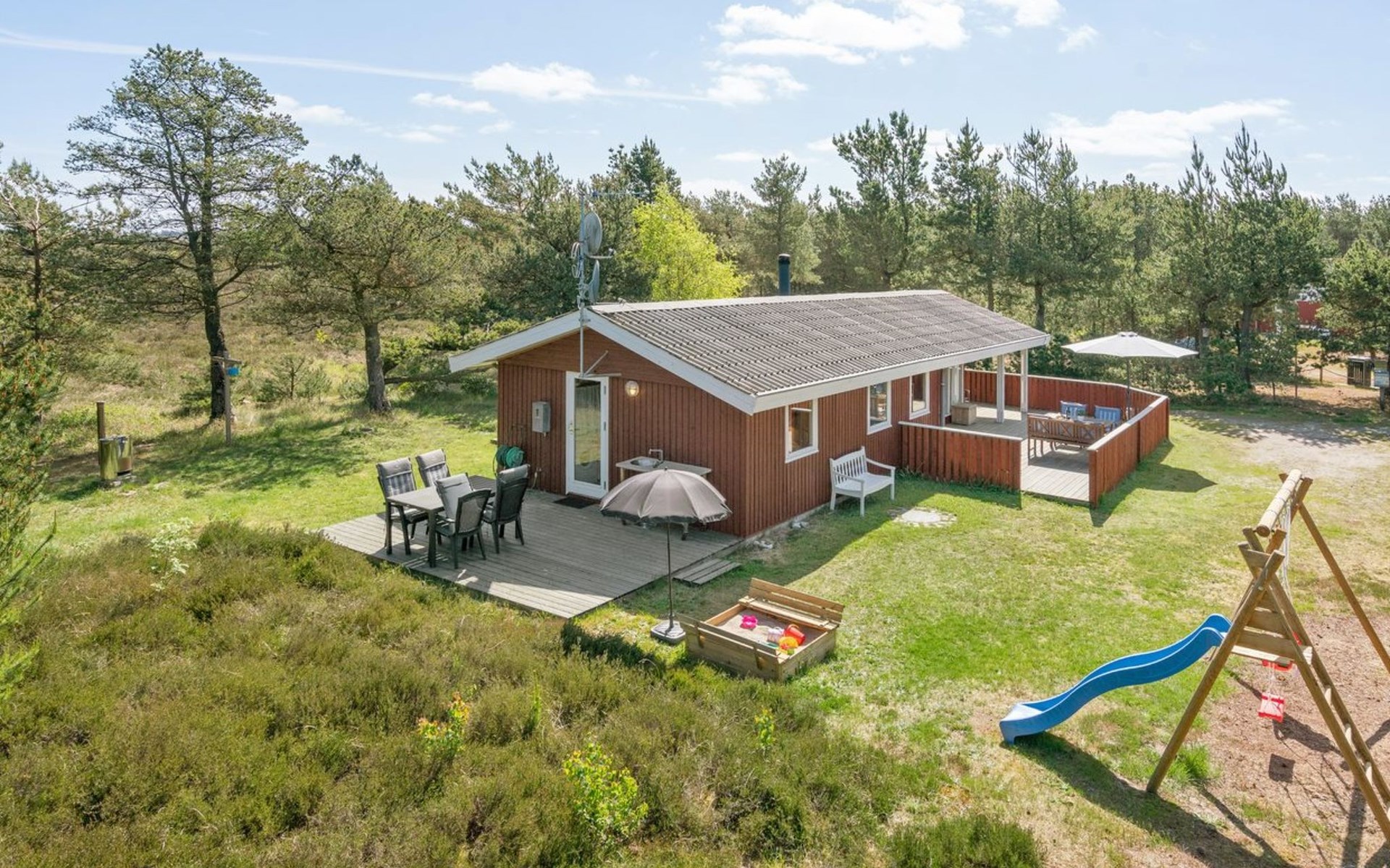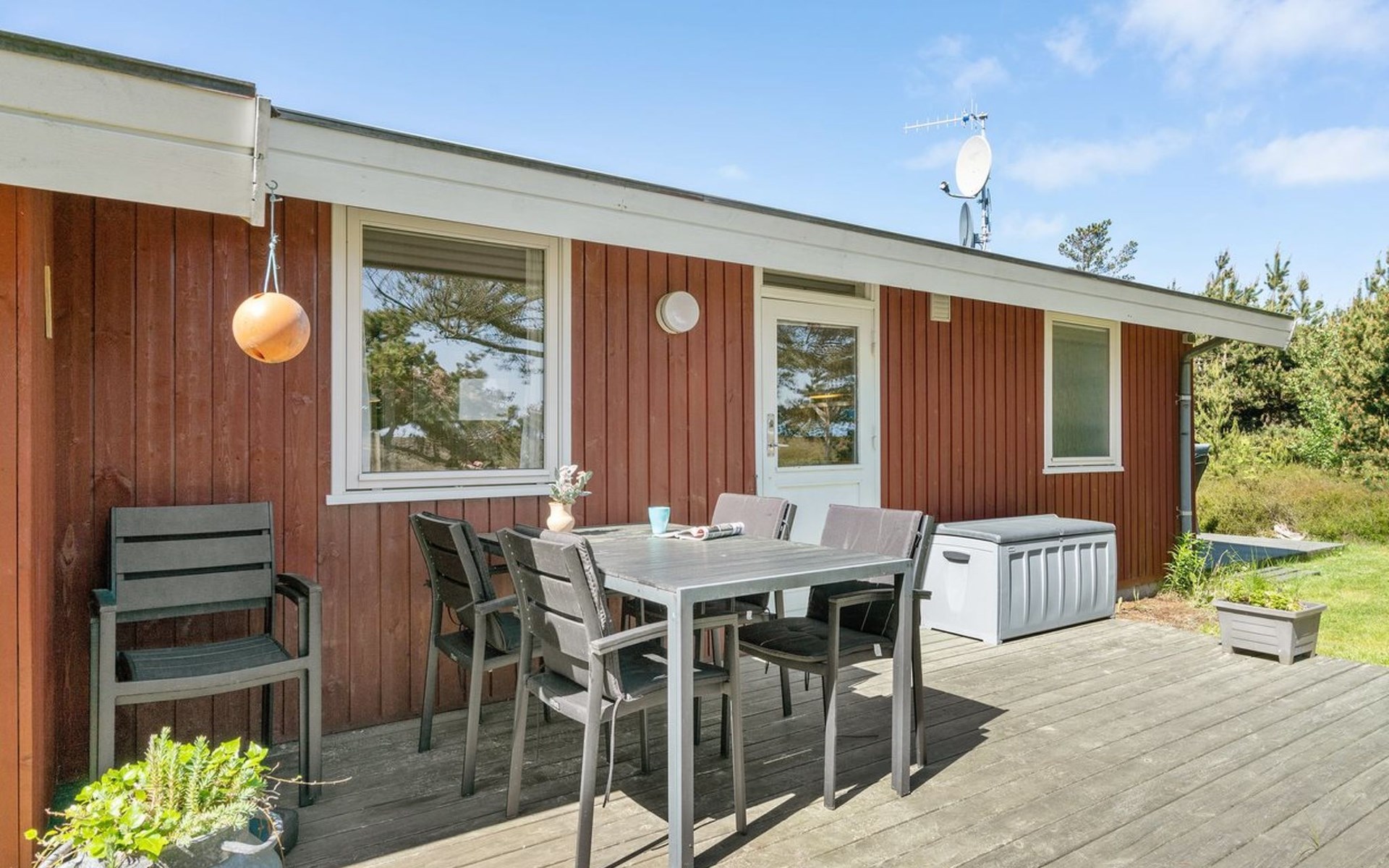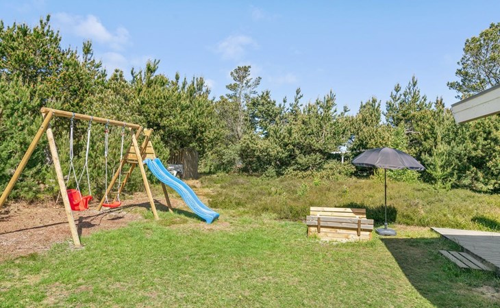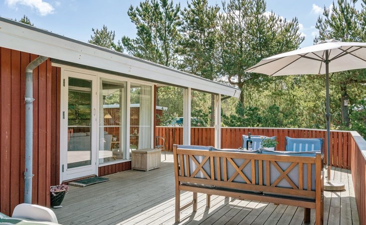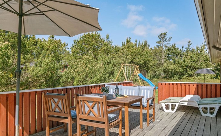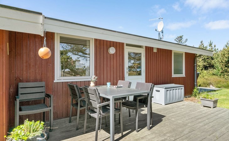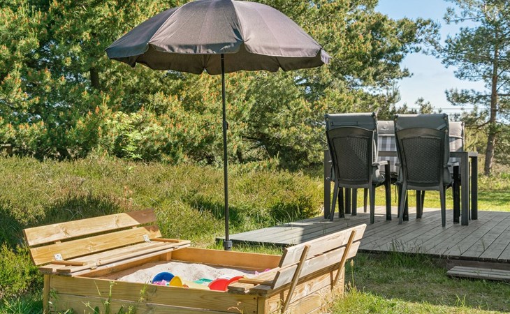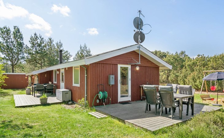 Eengezinswoning, bouwjaar 1974. 350 m van zee. Voor alleengebruik: wild terrein 1.400 m2. Terras (60 m2), kinderspeelplaats (schommel). In het huis: wasmachine. Parkeerplaats bij het huis. Levensmiddelenwinkel 1 km. Golfterrein 3.5 km. De eigenaar accepteert geen jeugdgroepen.